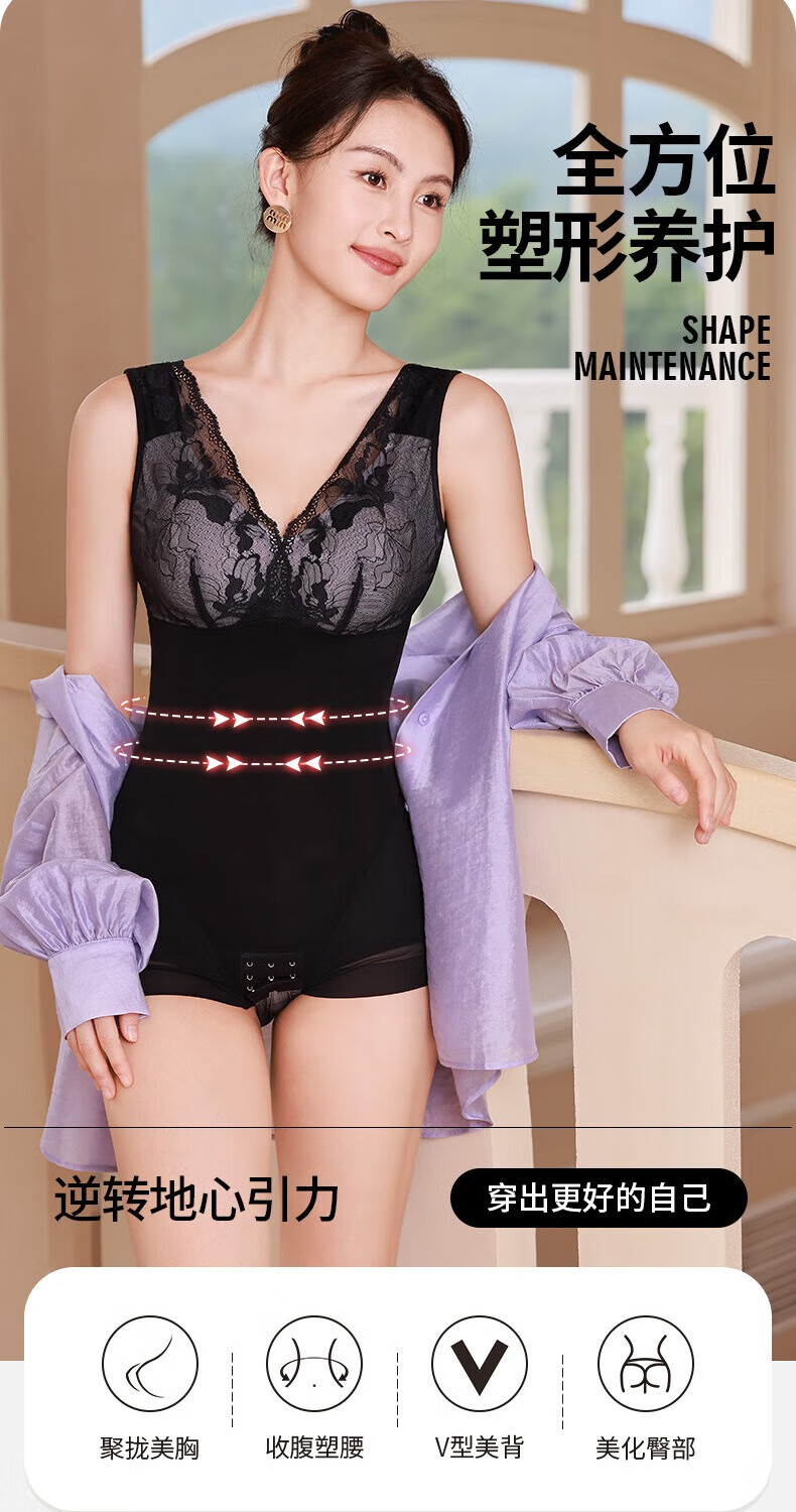 美人计包胸三角包臀塑形衣内衣收腹塑身衣女 高贵黑 L (建议105-125斤)