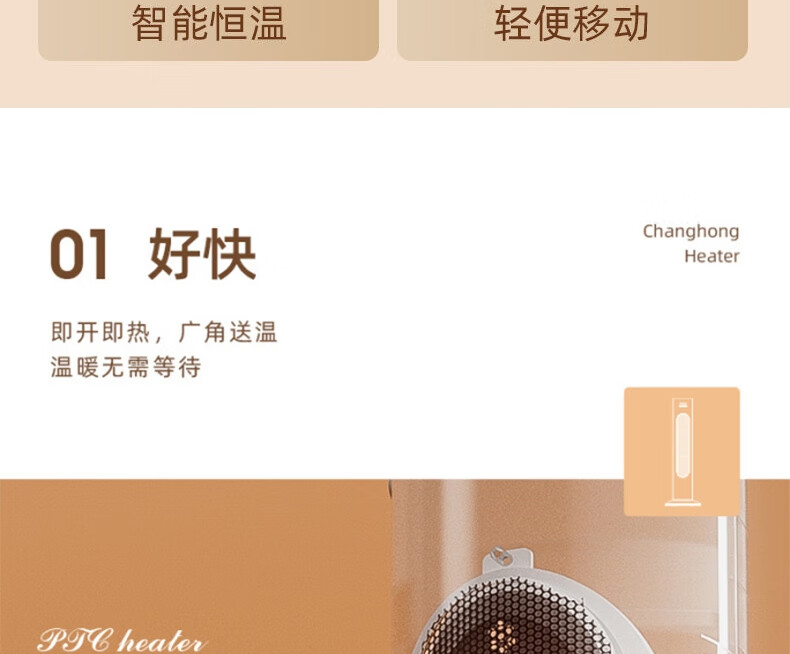 长虹(CHANGHONG)取暖器暖风机电暖气电暖器家用热风机小太阳塔式立式广角办公室卧室 机械标准款【即开即热】 1