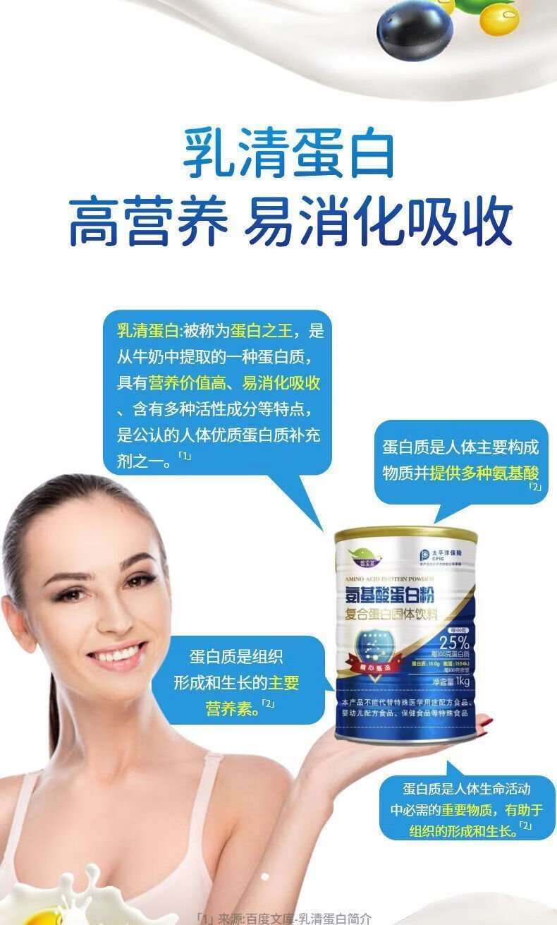 正品氨基酸蛋白粉乳清蛋白质粉成人中老年营养品高钙补钙1000g/罐 三罐装 1000g*3罐 +送钙片一盒