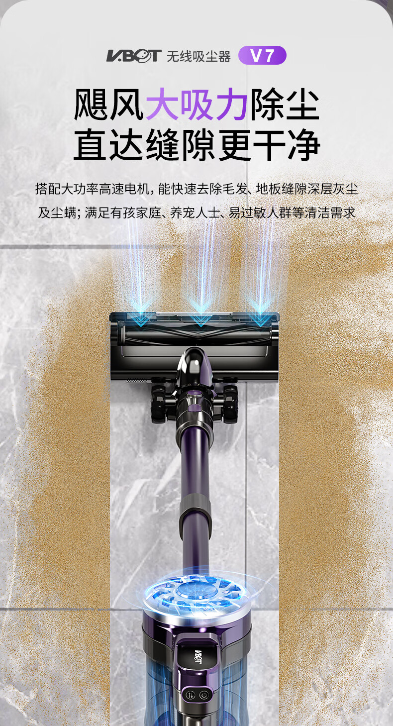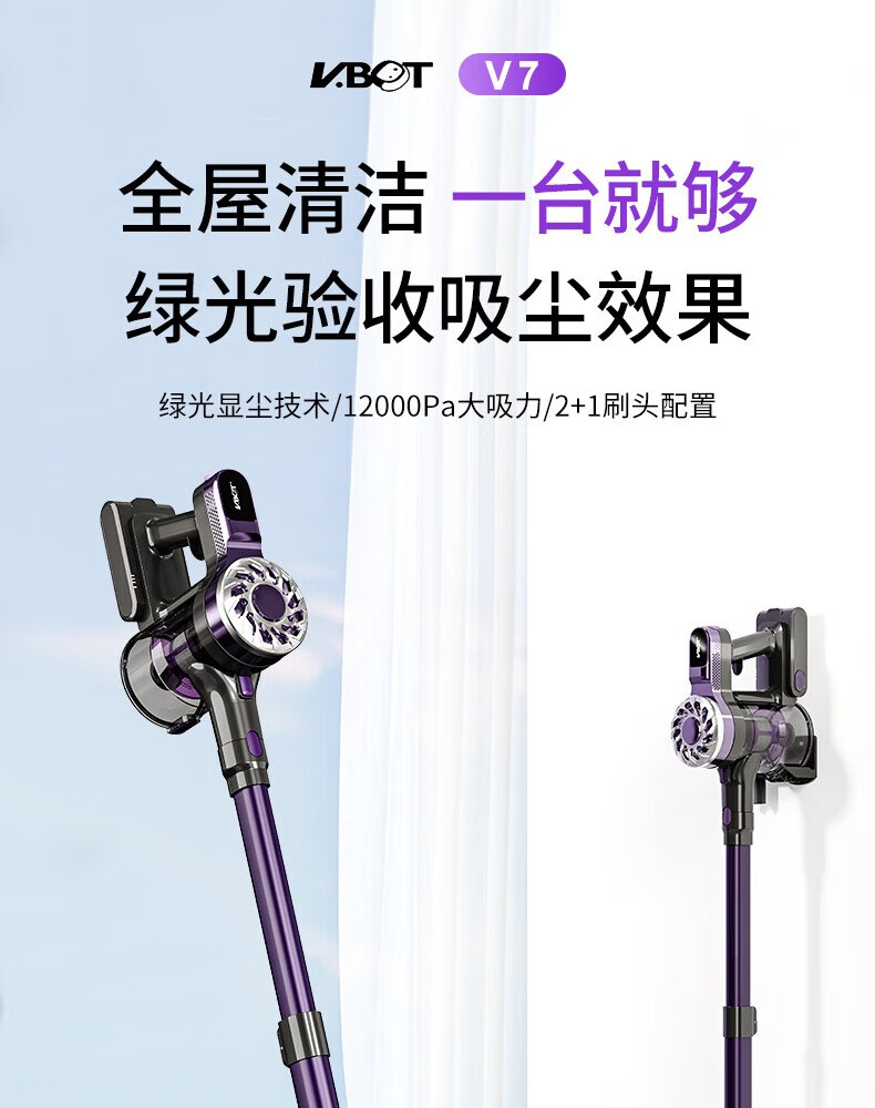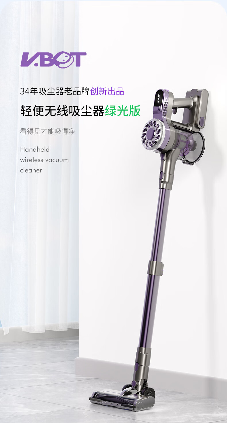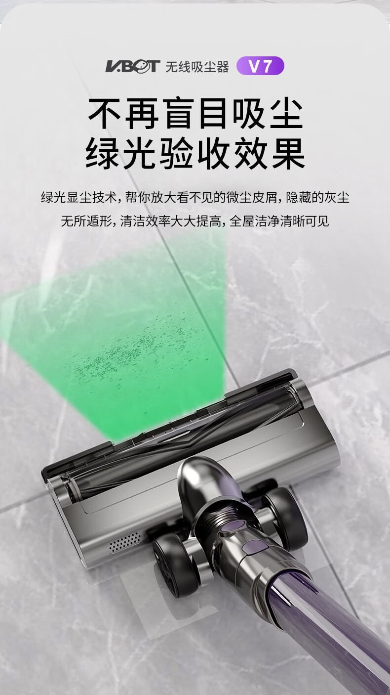 卫.博士(V.BOT)家用手持无线吸尘器绿光显尘超强大吸力大功率多重过滤清洁V7 贵族紫