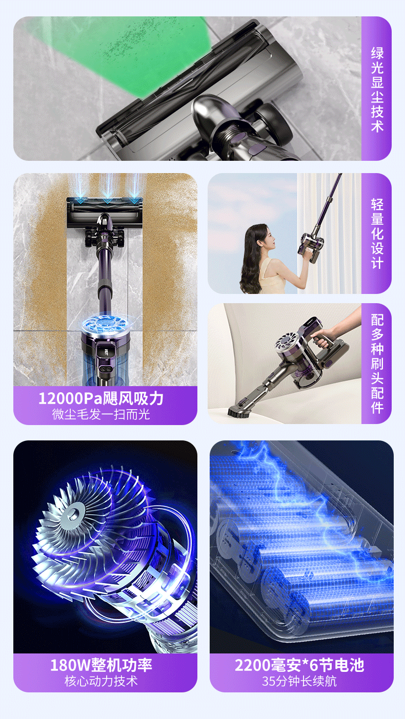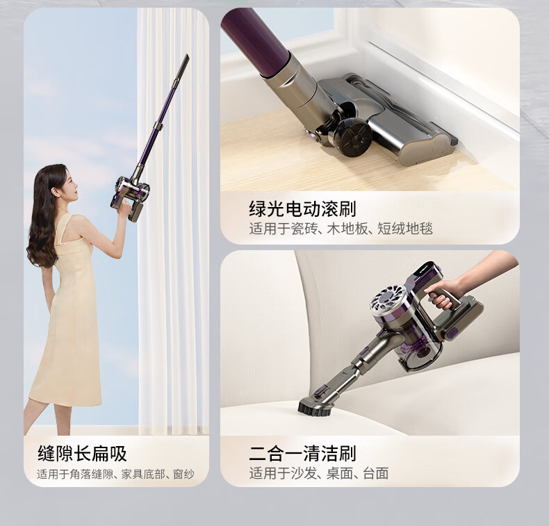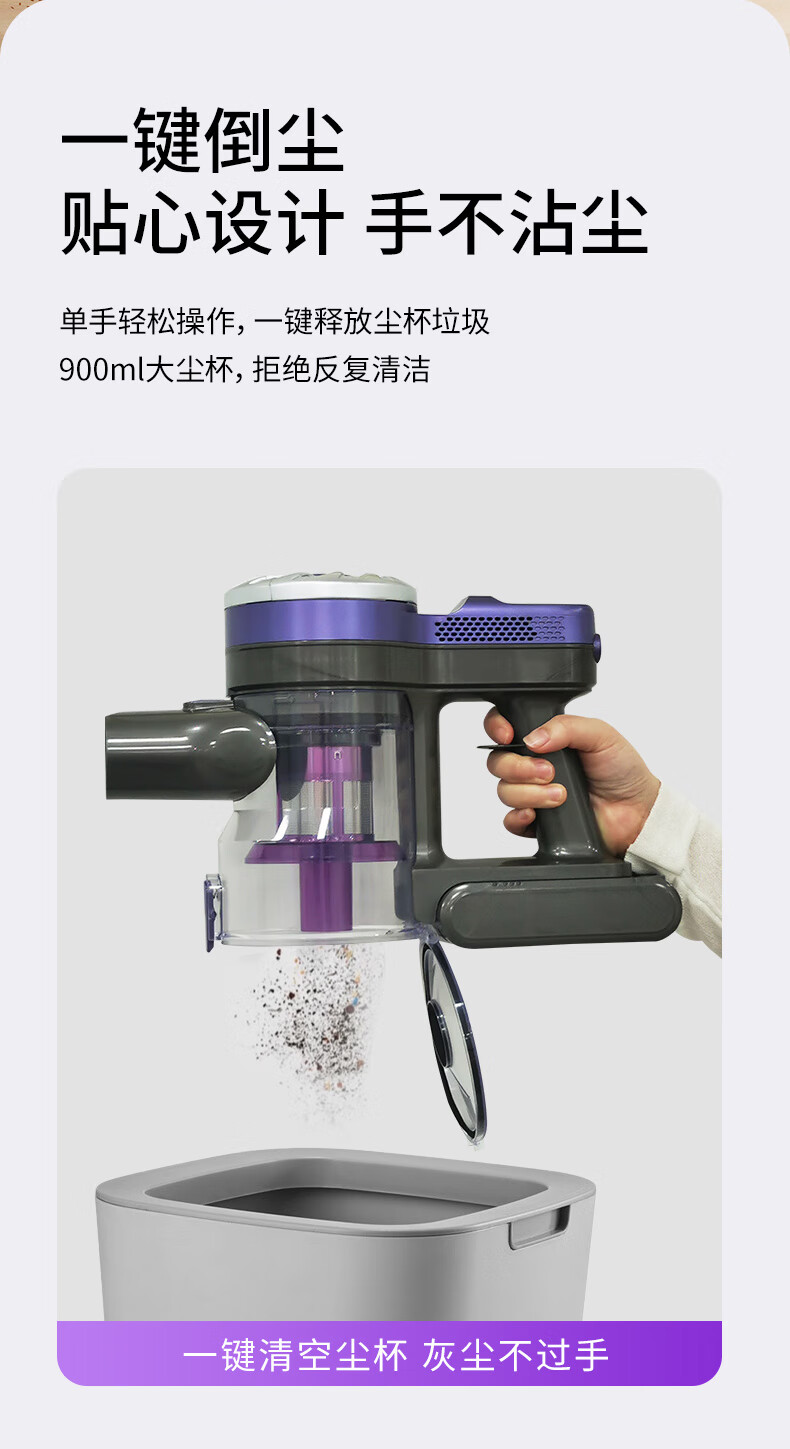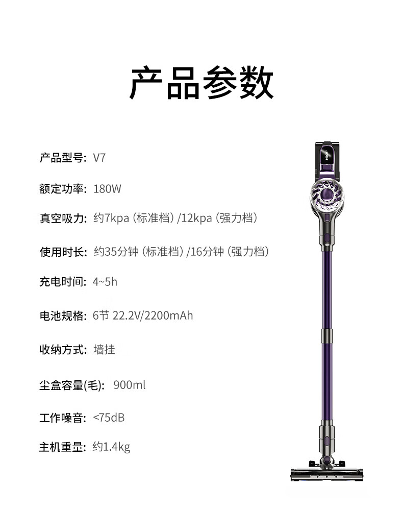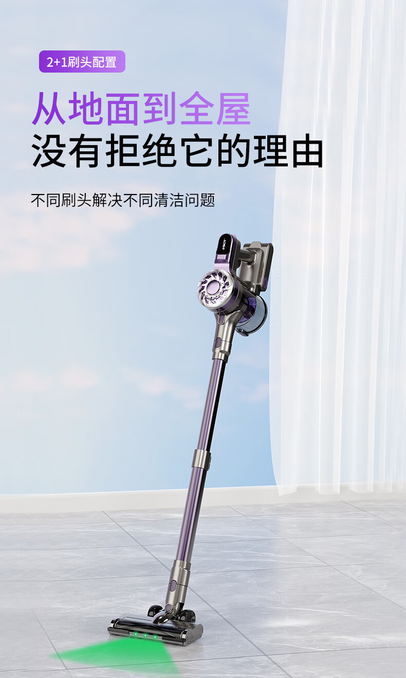 卫.博士(V.BOT)家用手持无线吸尘器绿光显尘超强大吸力大功率多重过滤清洁V7 贵族紫