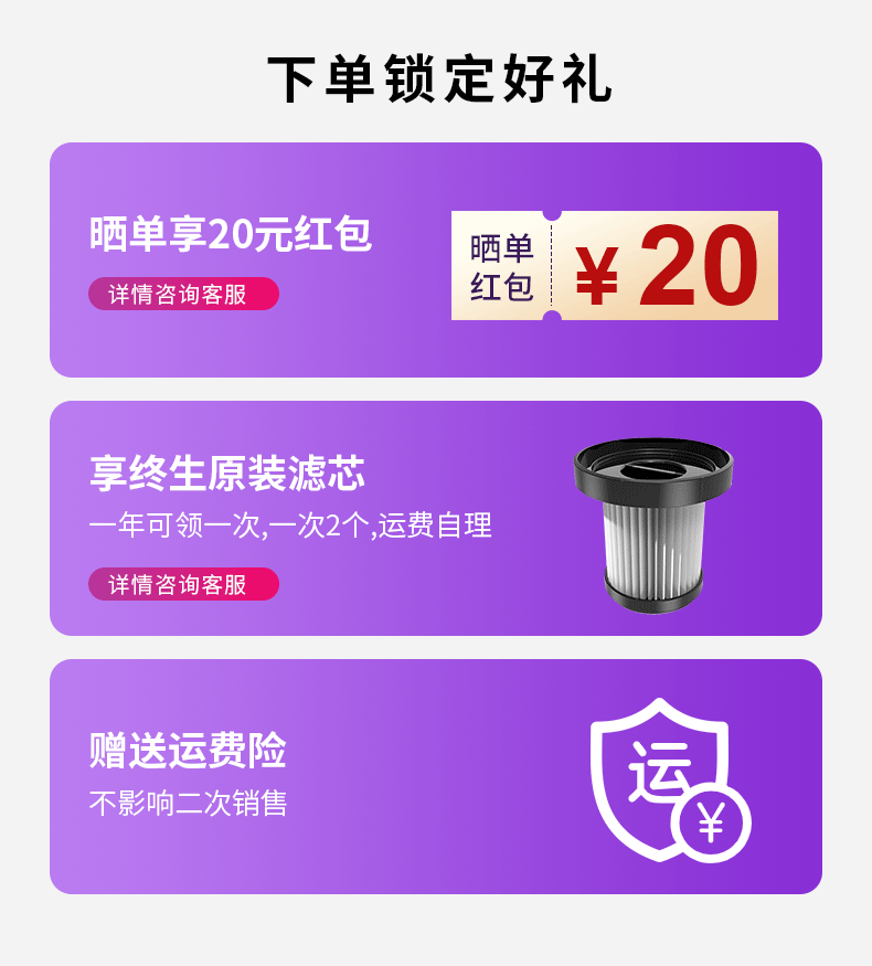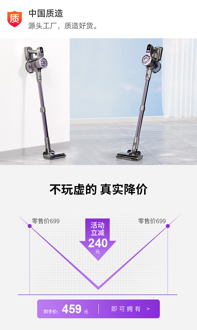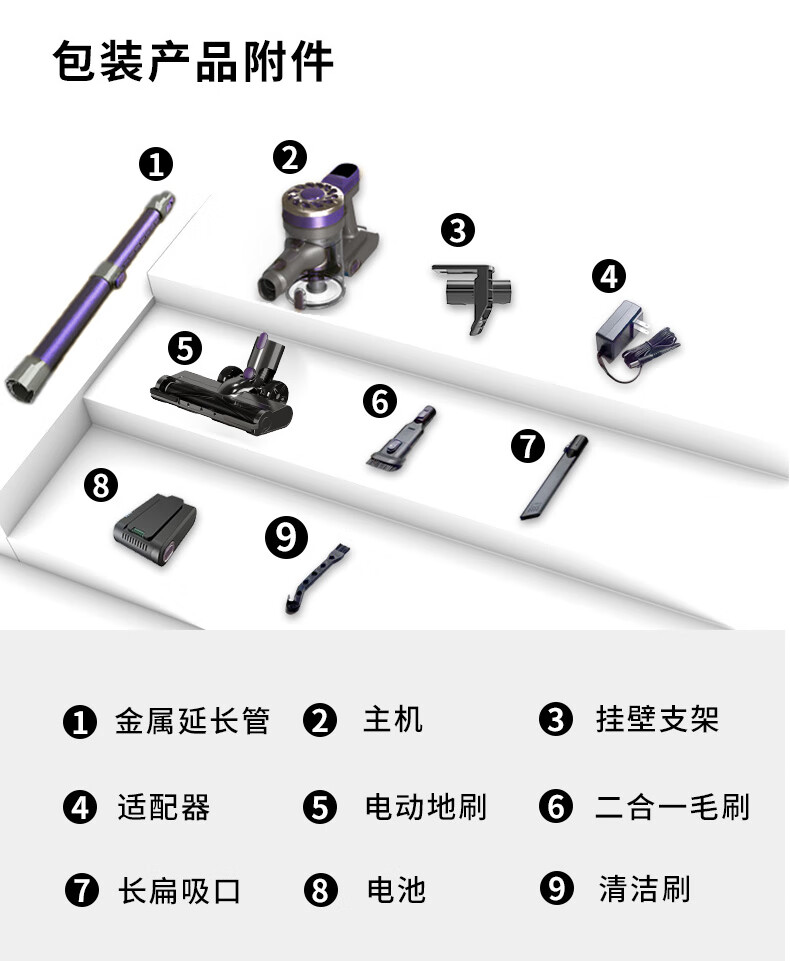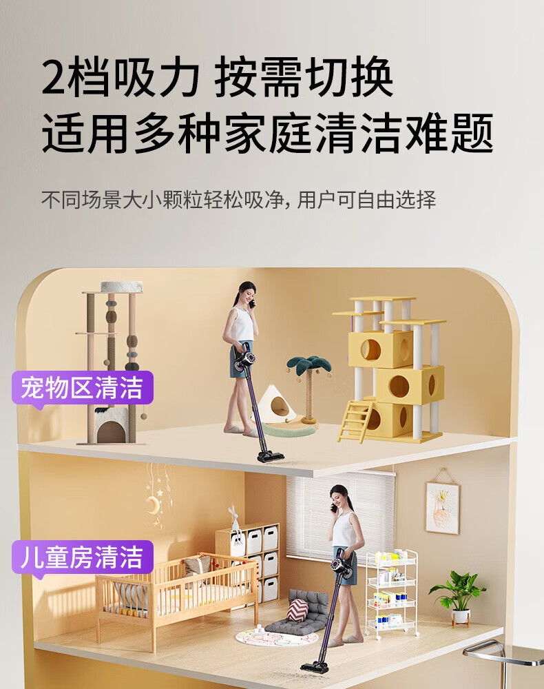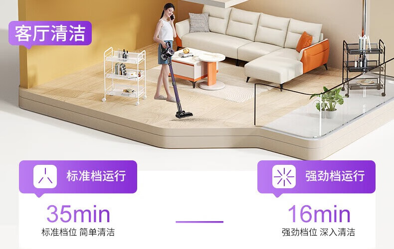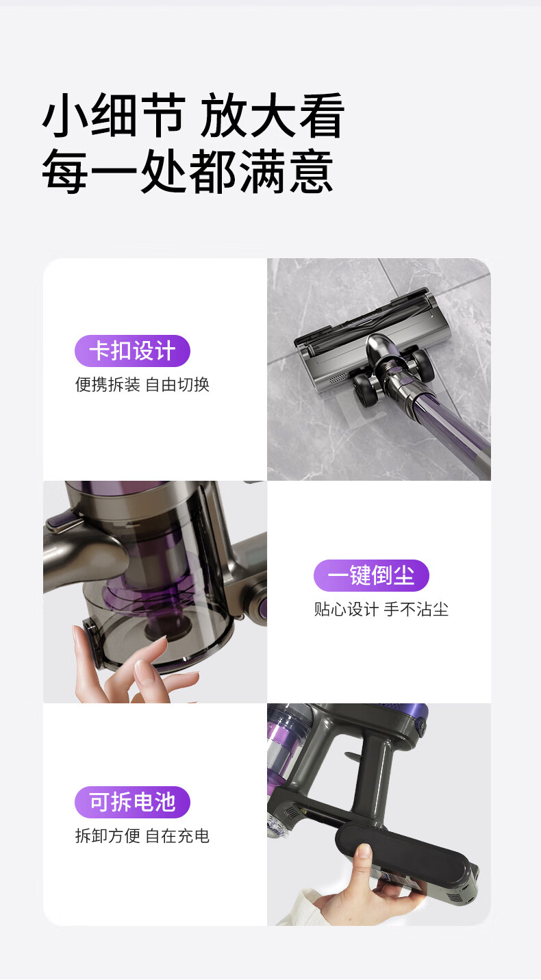 卫.博士(V.BOT)家用手持无线吸尘器绿光显尘超强大吸力大功率多重过滤清洁V7 贵族紫