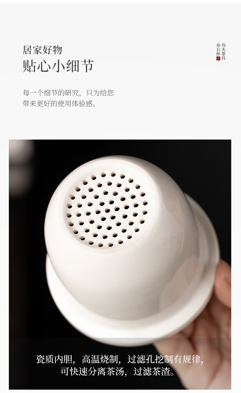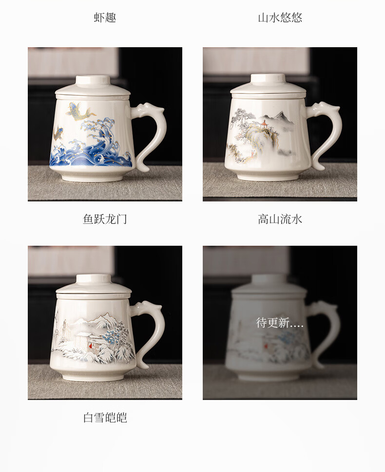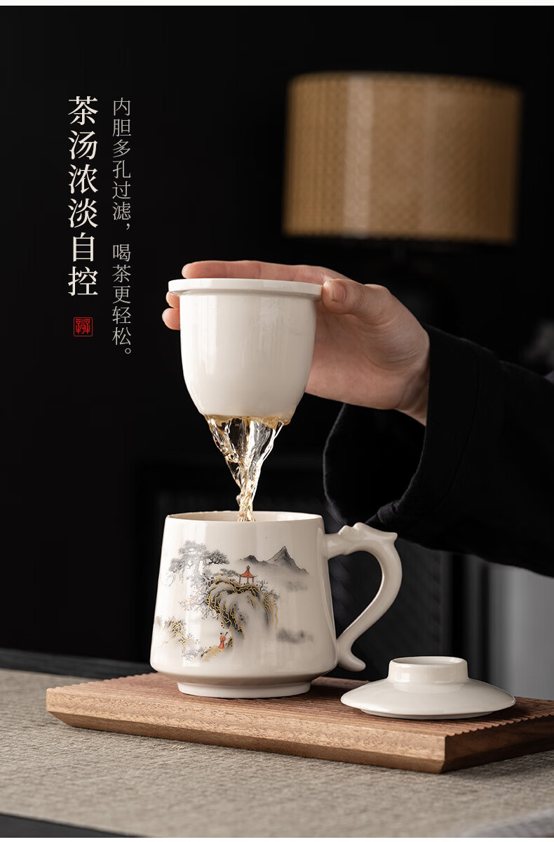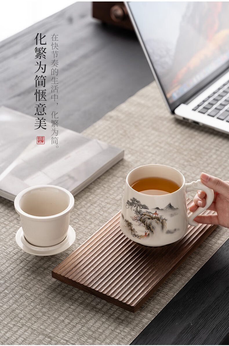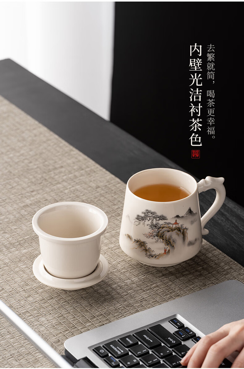 韵化【精选百货】茶杯茶水分离陶瓷个人专用马克水杯高档办公杯公司活 草木灰【鱼跃】龙把办公杯三件套