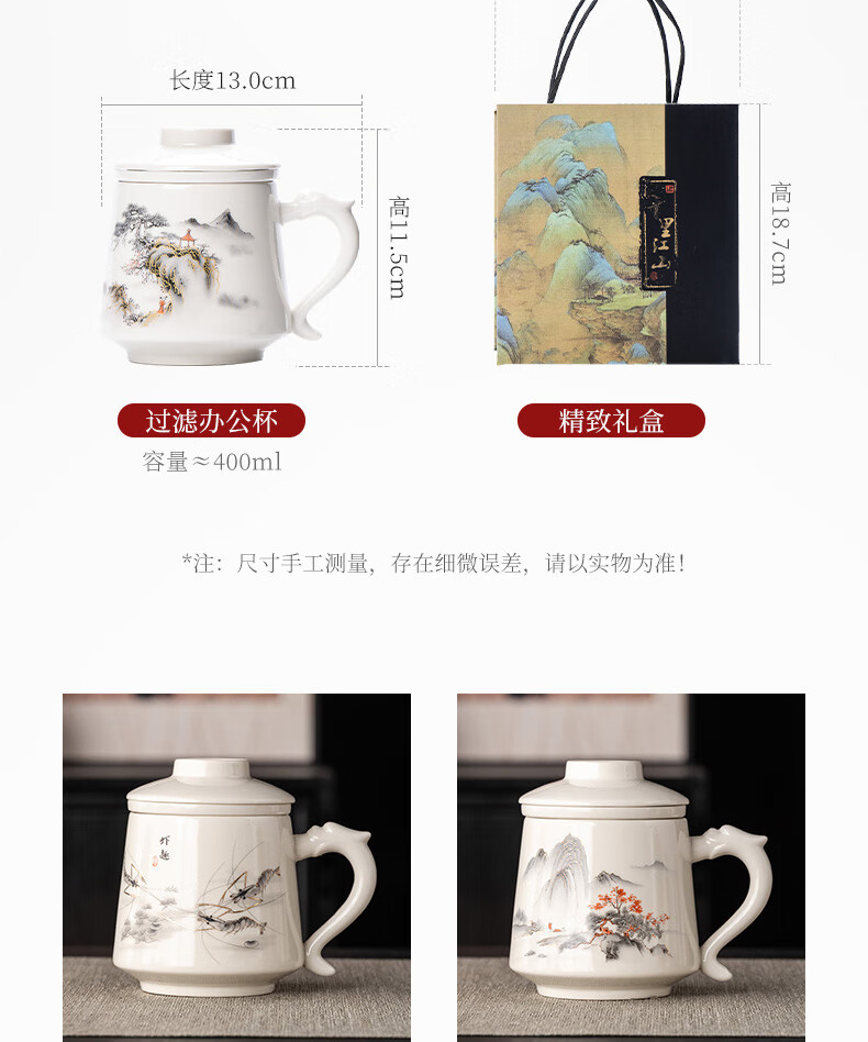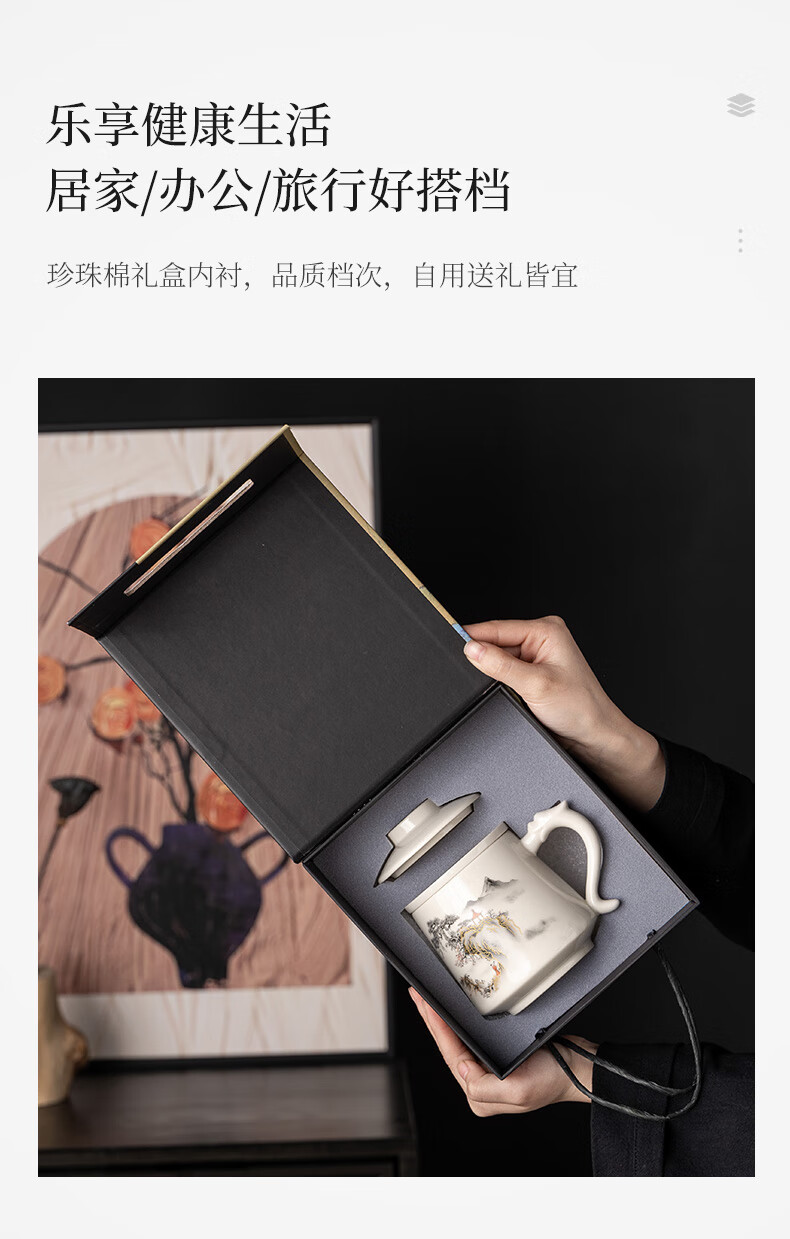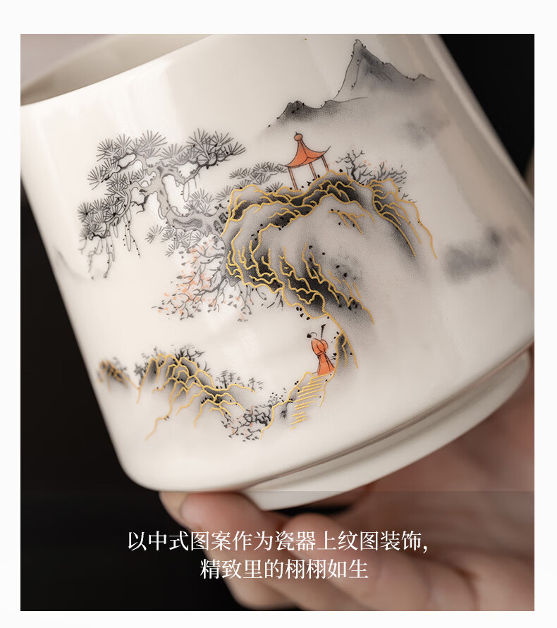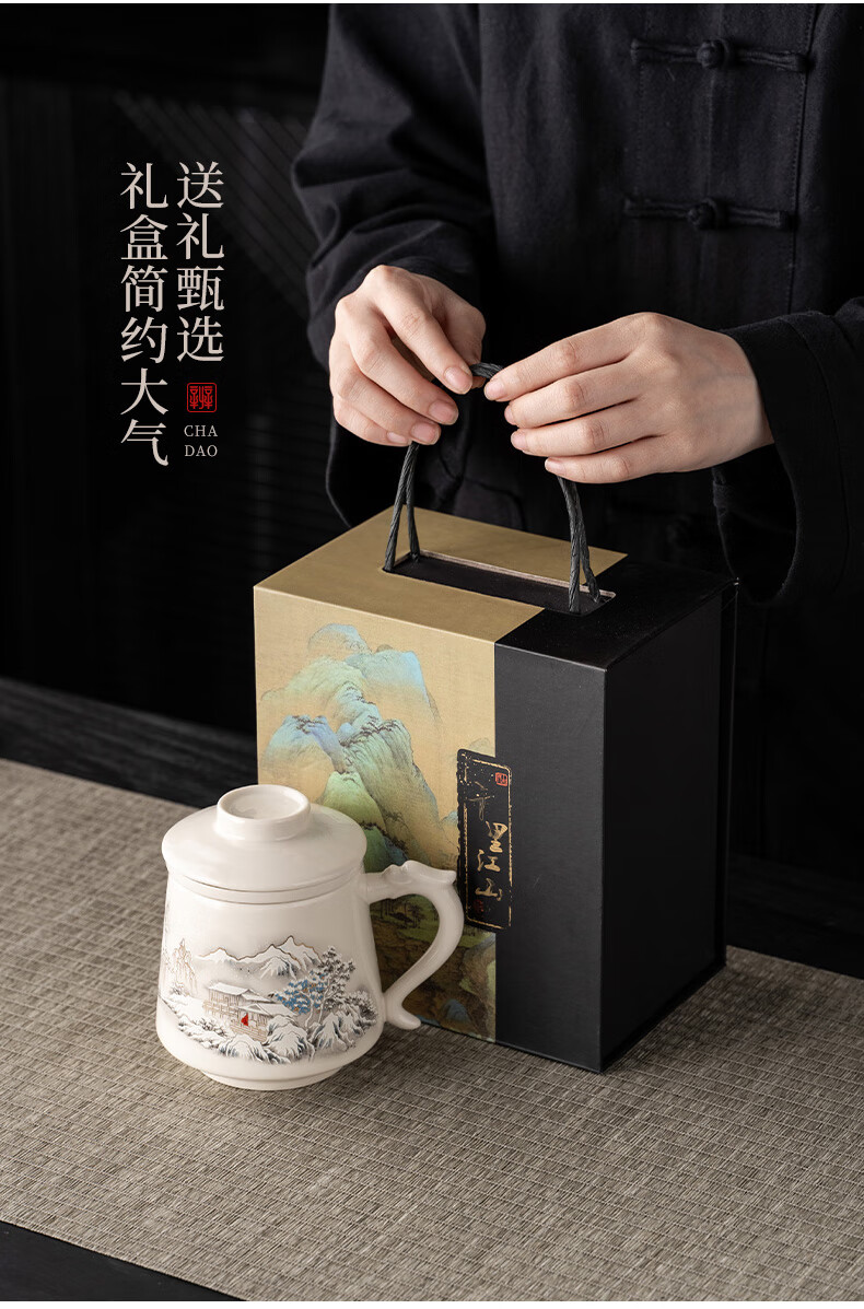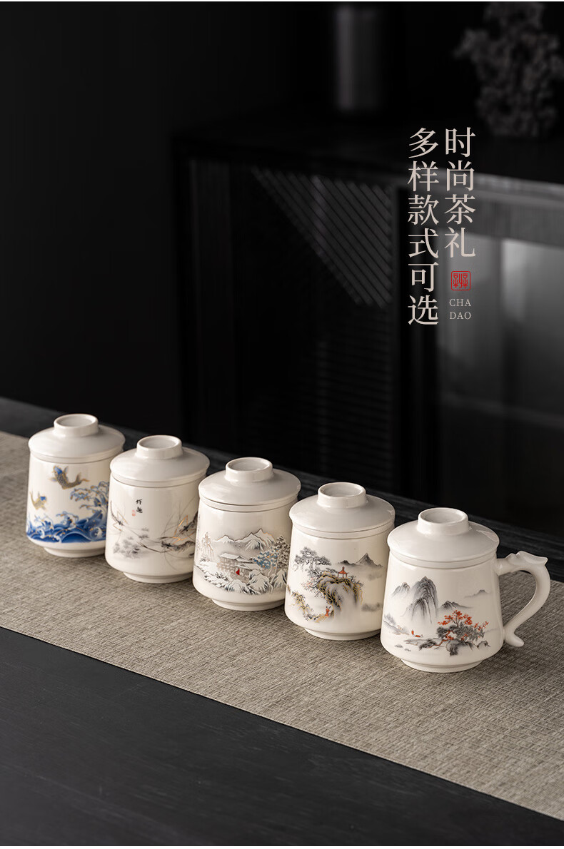 韵化【精选百货】茶杯茶水分离陶瓷个人专用马克水杯高档办公杯公司活 草木灰【鱼跃】龙把办公杯三件套