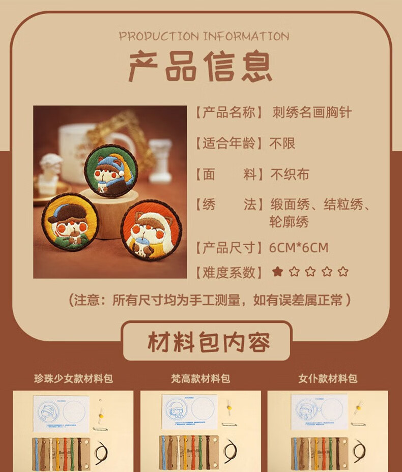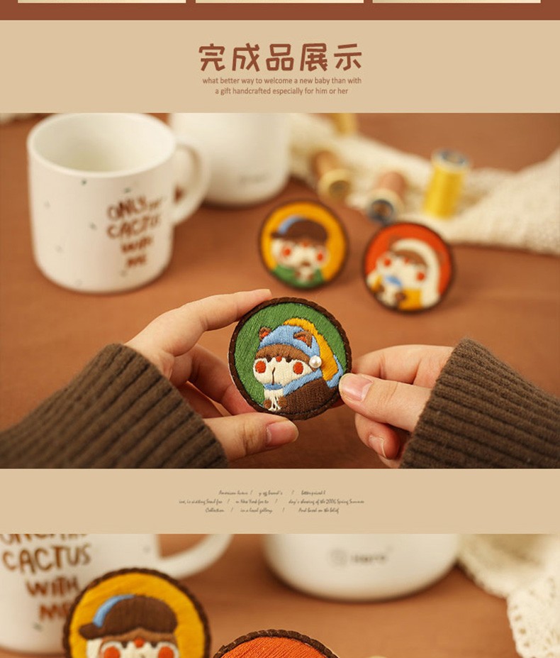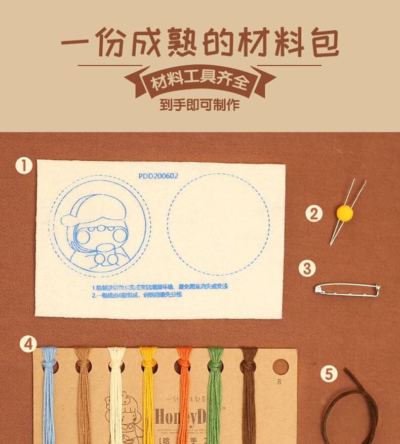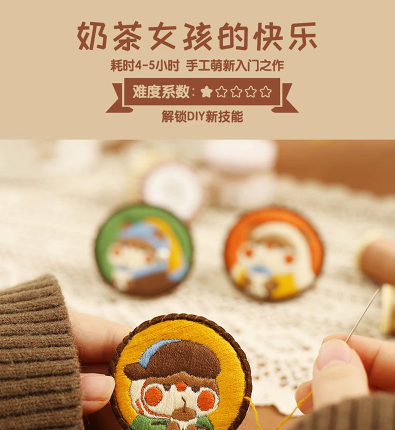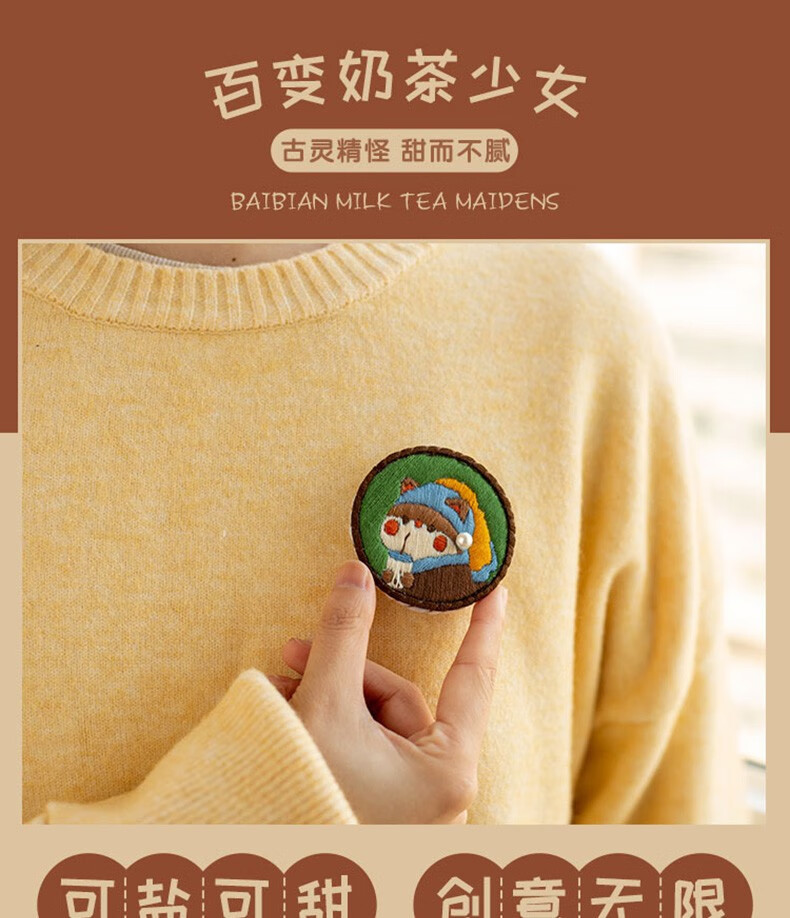 哈尼 手工刺绣diy材料包布艺初学者情侣可爱送女友礼物手作 戴珍珠耳环的少女胸针