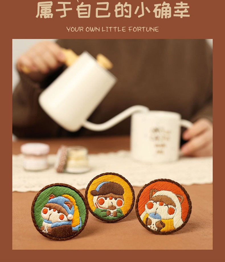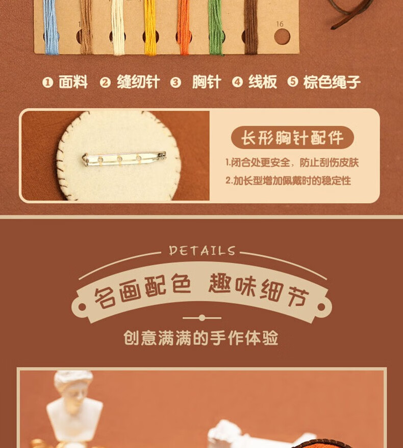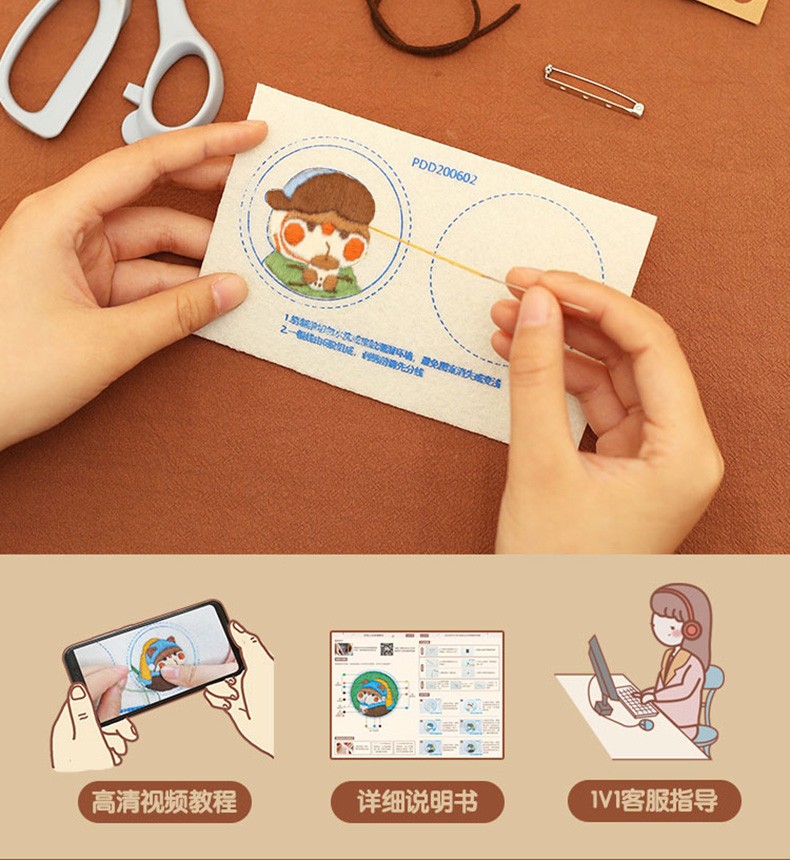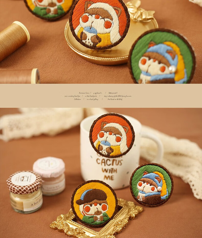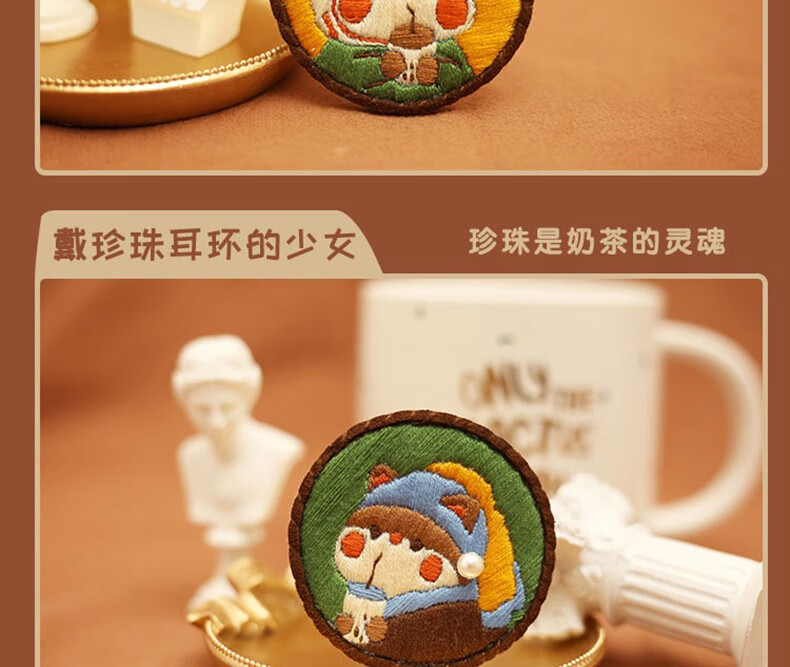 哈尼 手工刺绣diy材料包布艺初学者情侣可爱送女友礼物手作 戴珍珠耳环的少女胸针