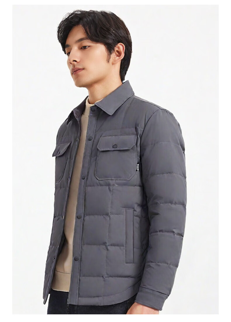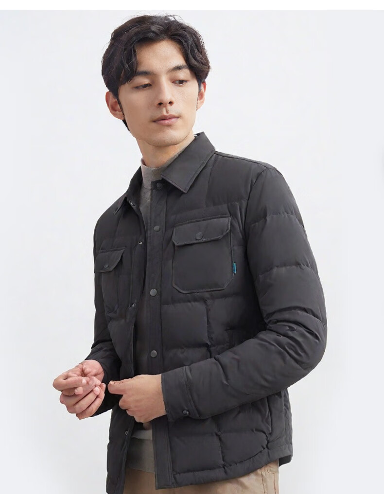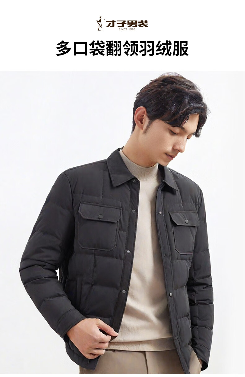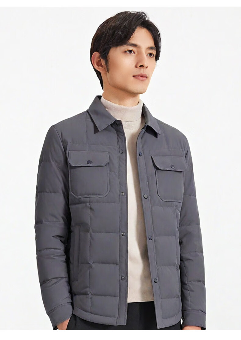 才子(TRIES)羽绒服男时尚翻领多口袋修身休闲简约易穿搭85%鸭绒保暖防水 灰色 L (170/88A)