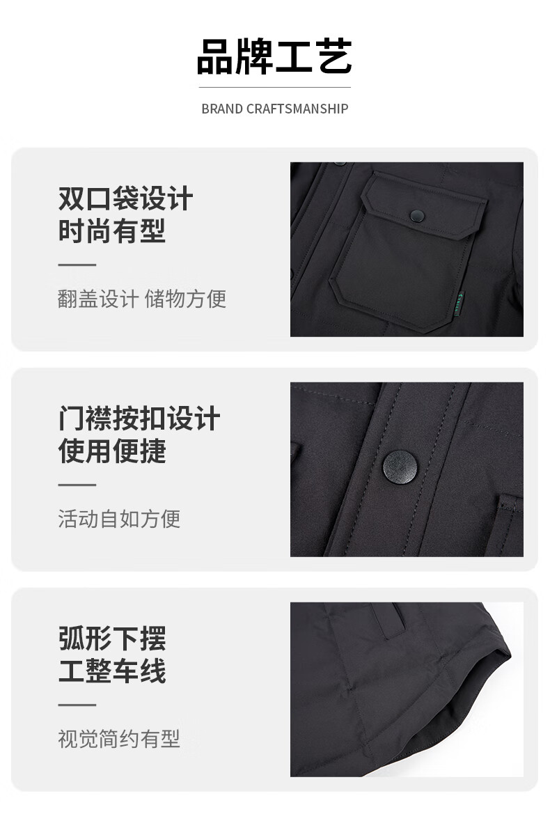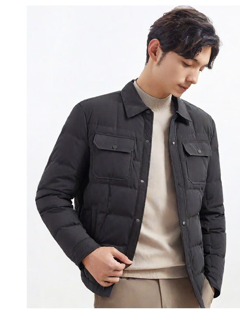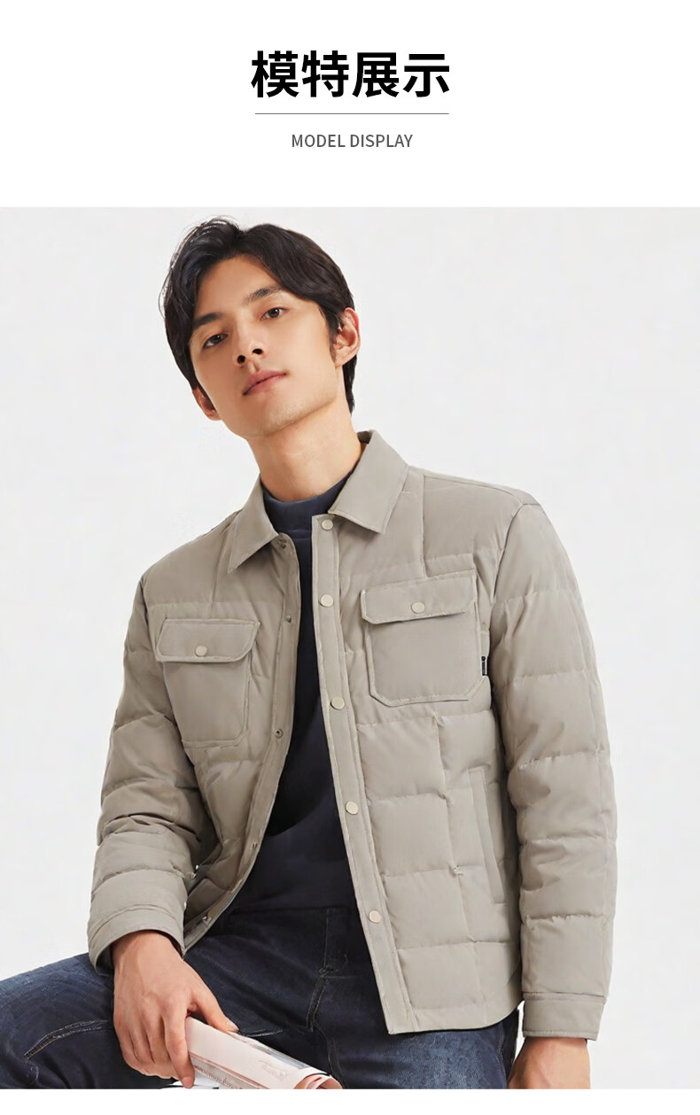才子(TRIES)羽绒服男时尚翻领多口袋修身休闲简约易穿搭85%鸭绒保暖防水 灰色 L (170/88A)