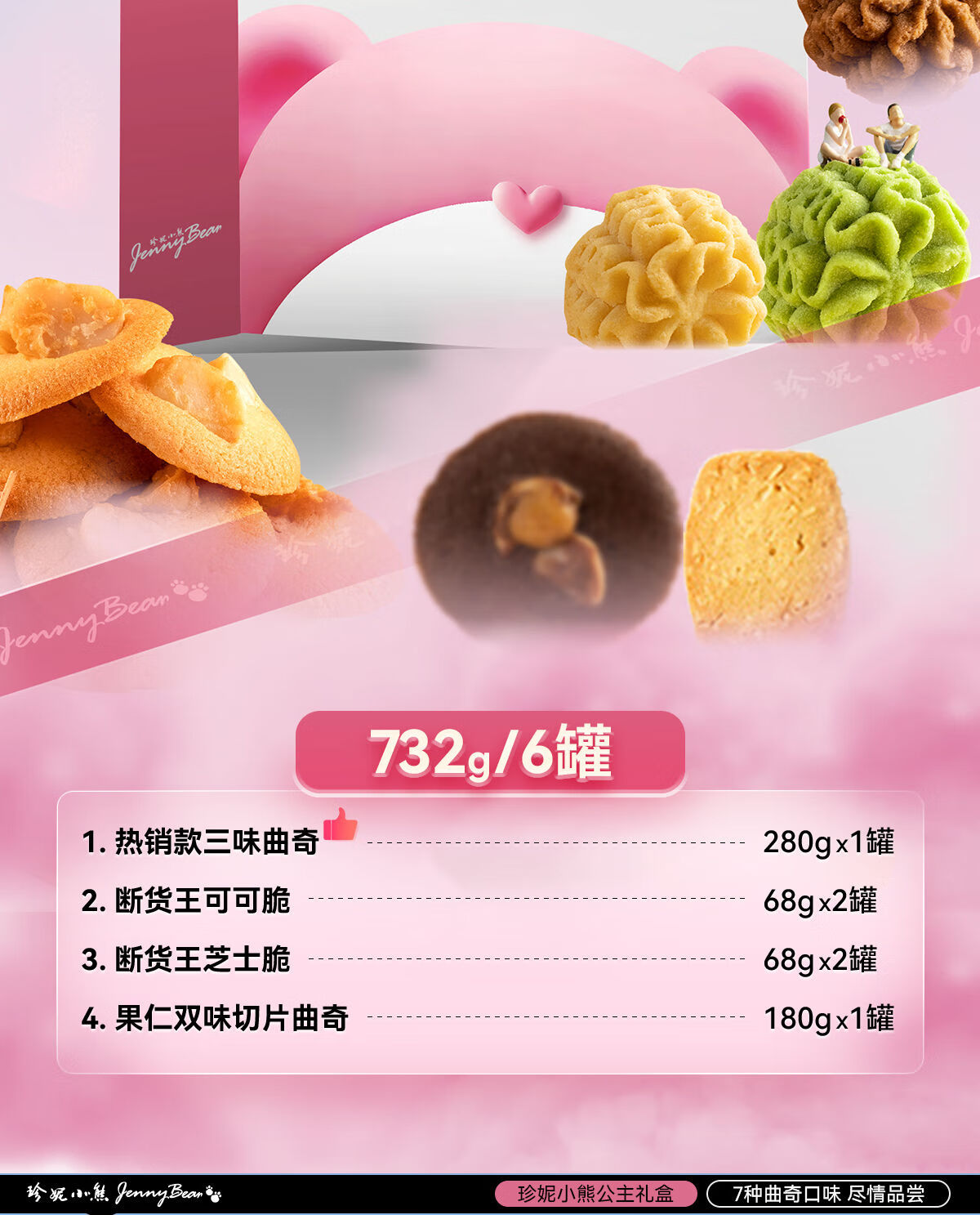 珍妮小熊(Jenny Bear)曲奇饼干零食礼盒 公主臻选曲奇饼干礼盒新年节日礼盒装 珍妮悦享礼盒416g