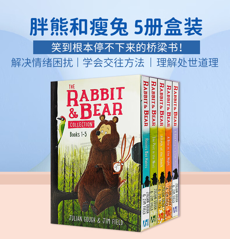 英文原版 胖熊与瘦兔5册盒装 Rabbit and Bear 兔子和熊 胖熊和瘦兔 儿童英语绘本故事书 Julian Gough 友谊主题桥梁书 胖熊与瘦兔5册盒装