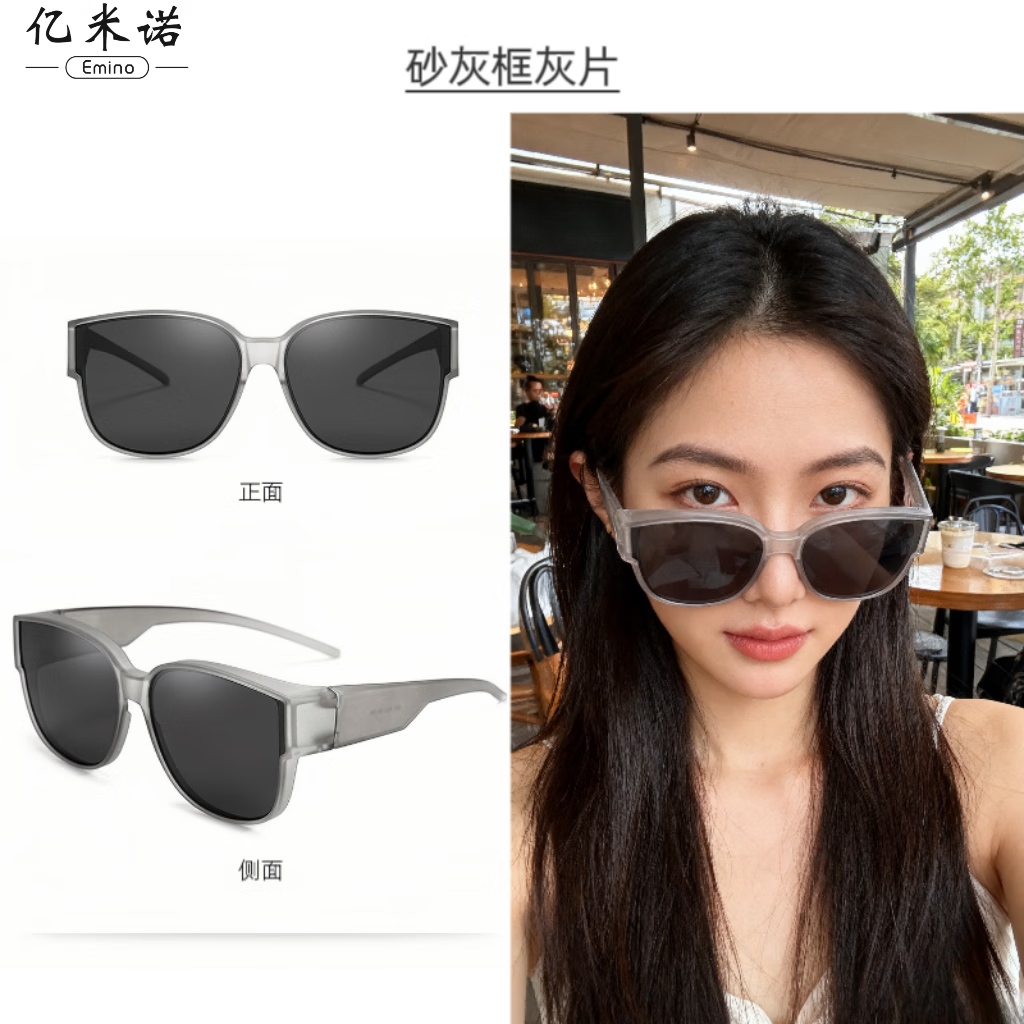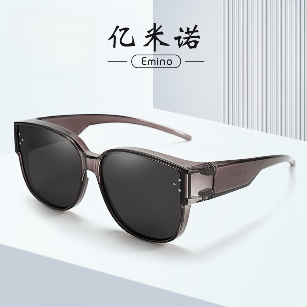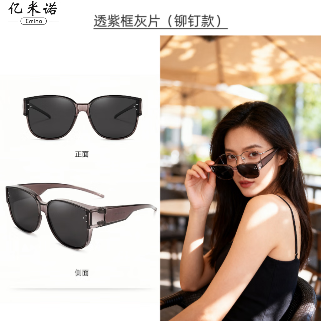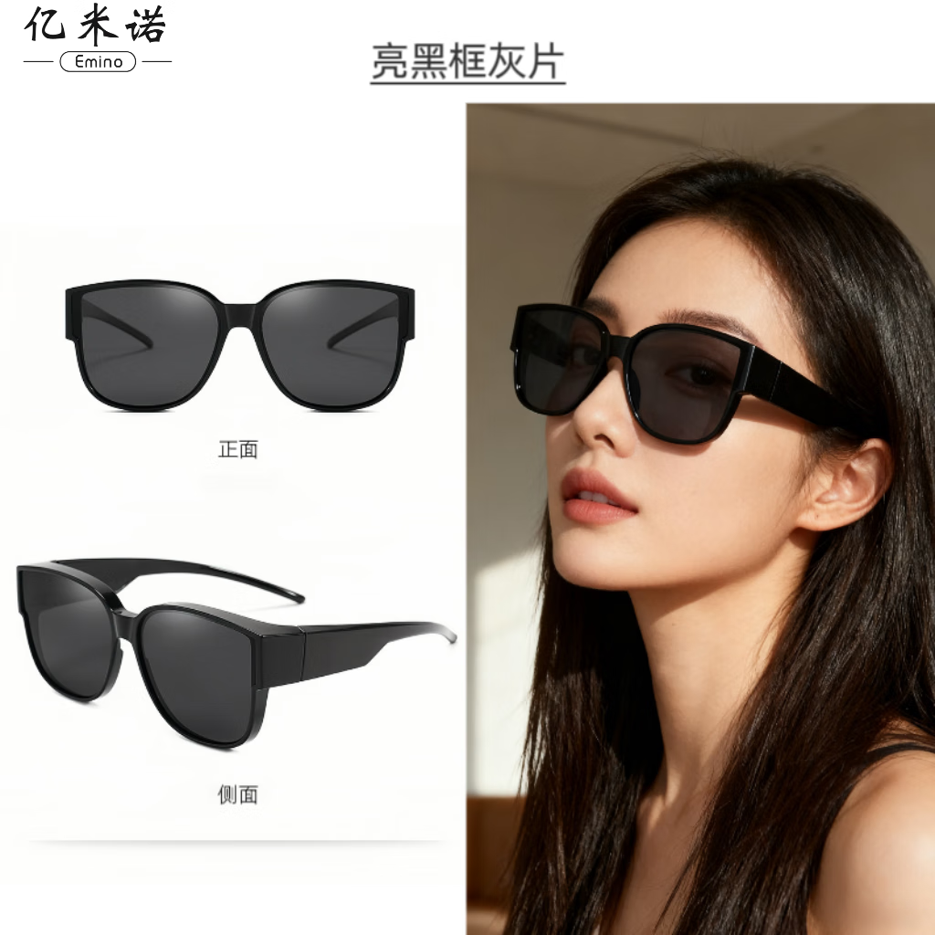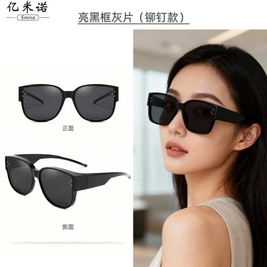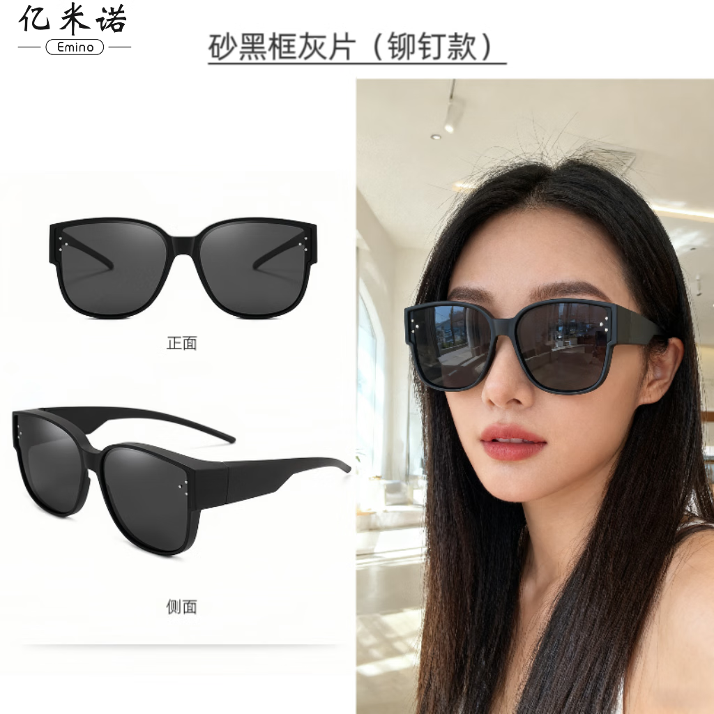 亿米诺 EMINO墨镜可套近视镜太阳眼镜男款遮阳偏光防晒眼镜男士开车专用套镜女 亮黑框-灰片(铆钉款)