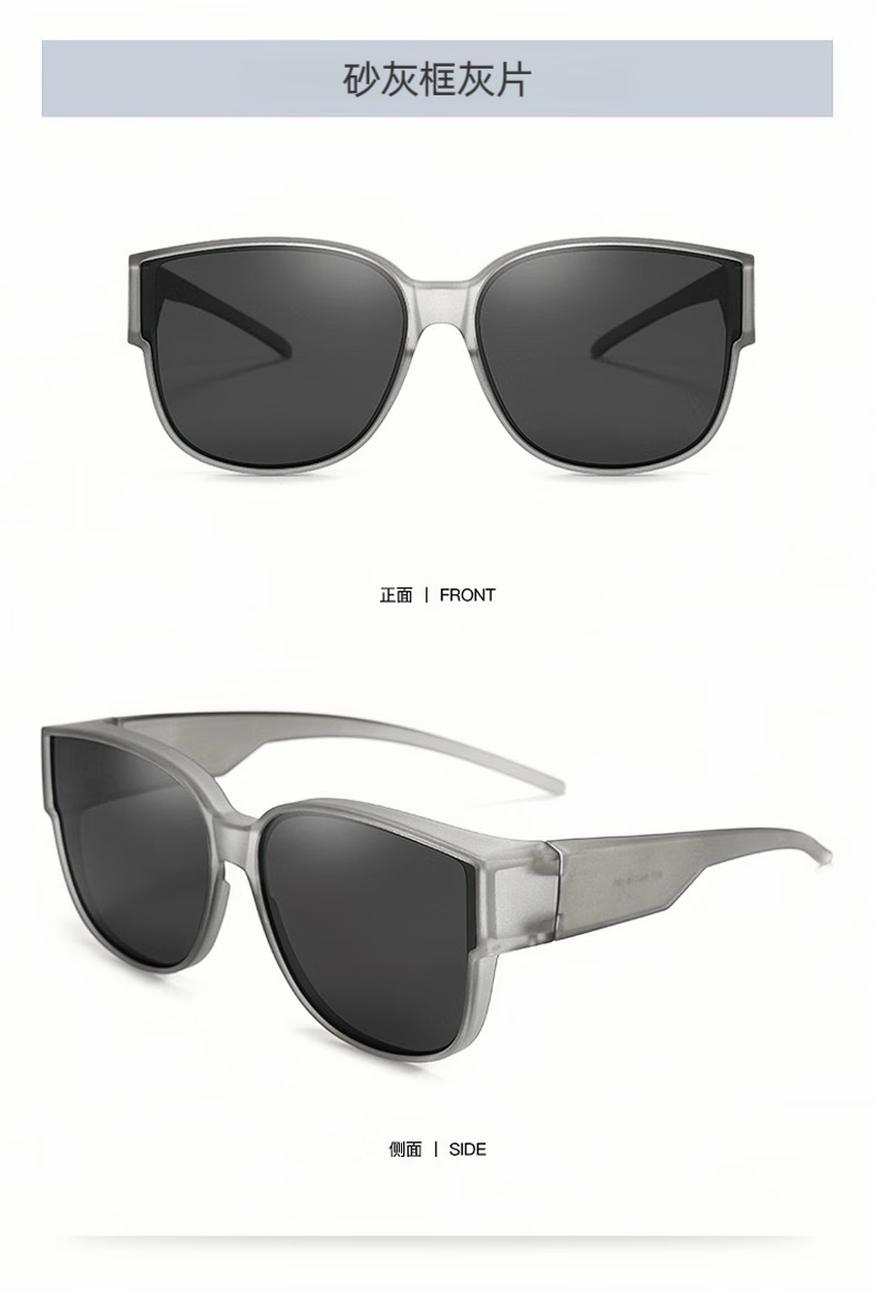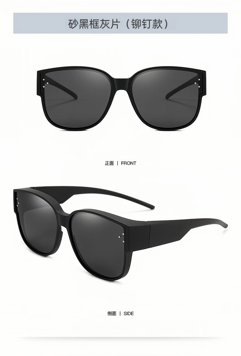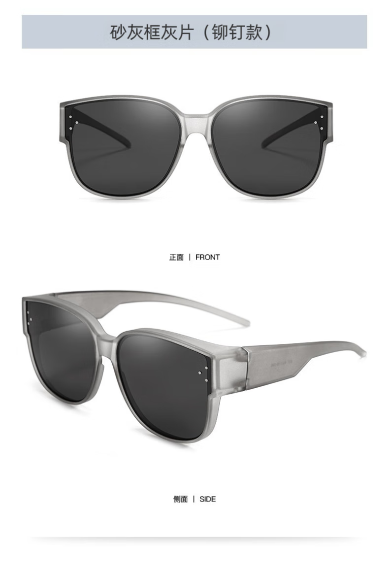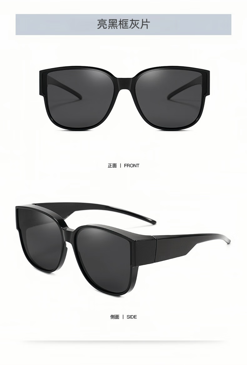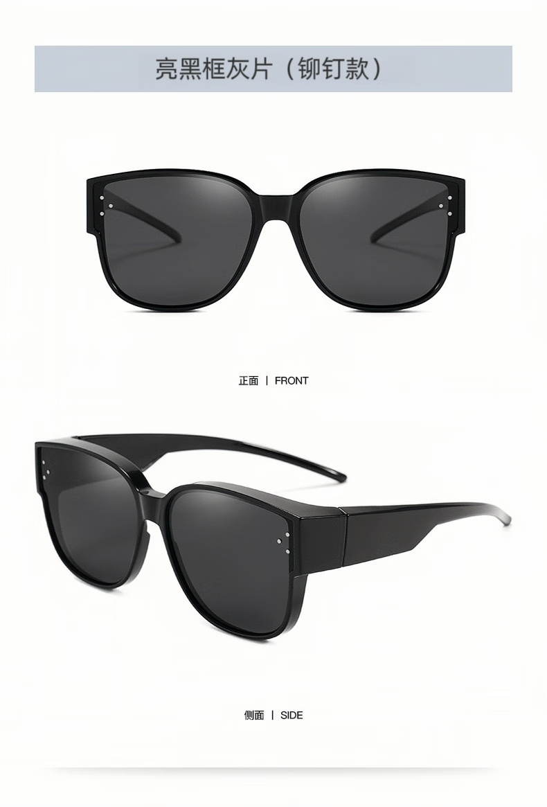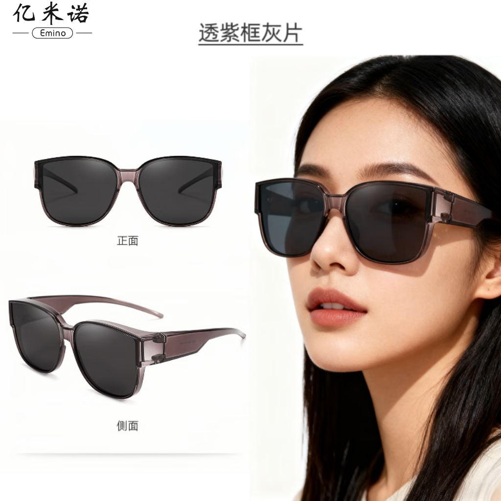 亿米诺 EMINO墨镜可套近视镜太阳眼镜男款遮阳偏光防晒眼镜男士开车专用套镜女 亮黑框-灰片(铆钉款)