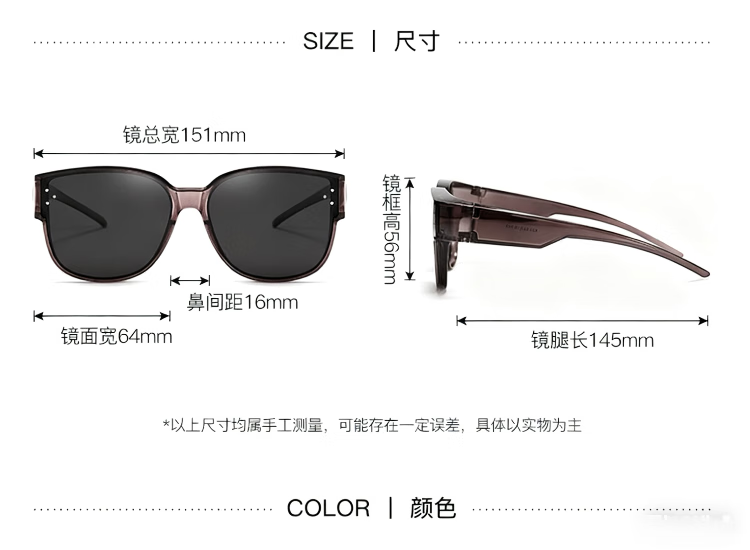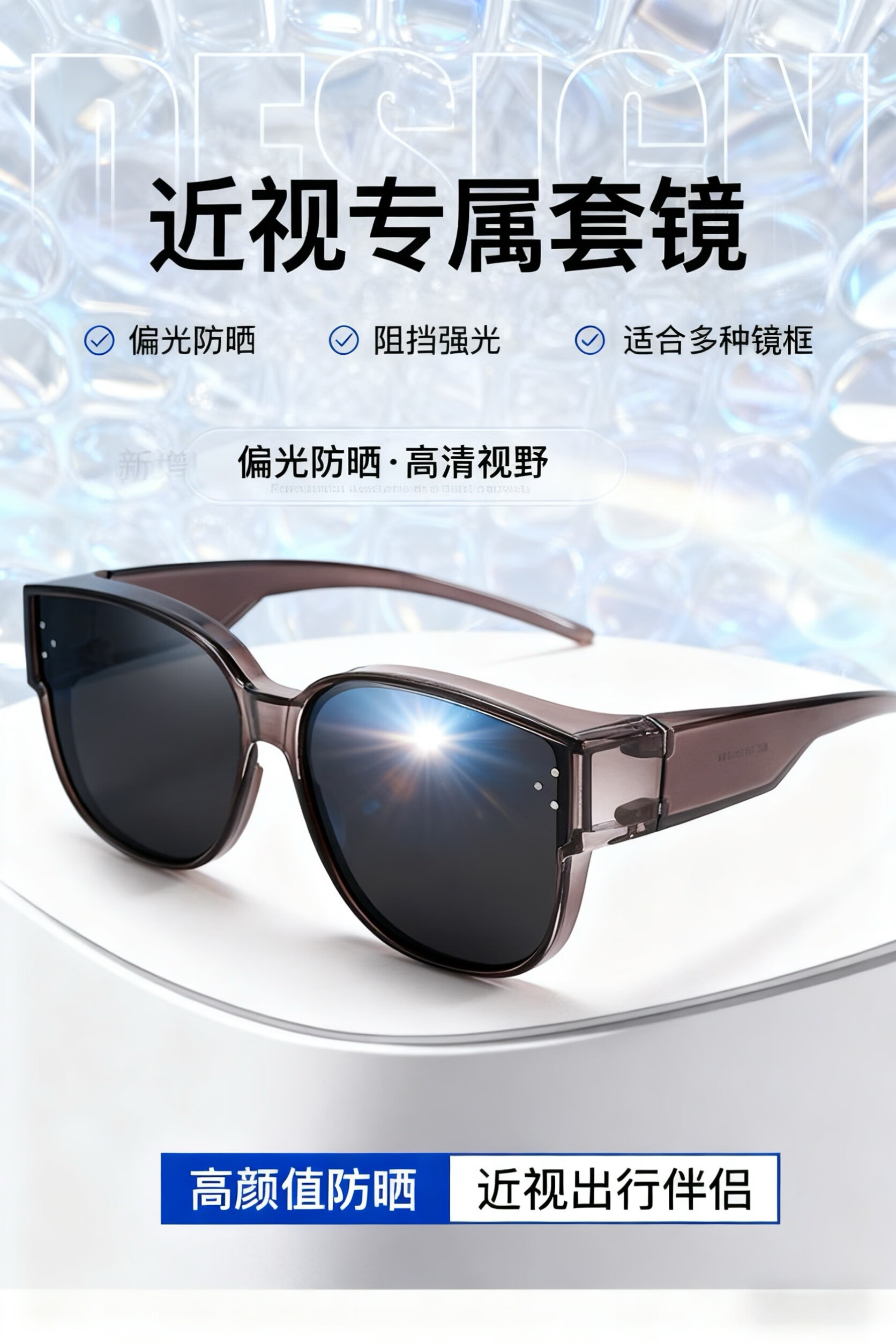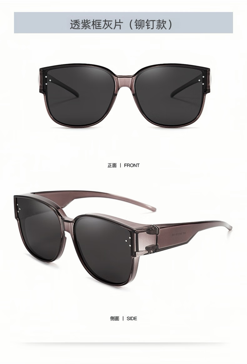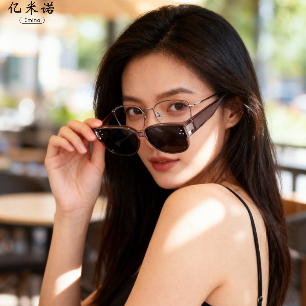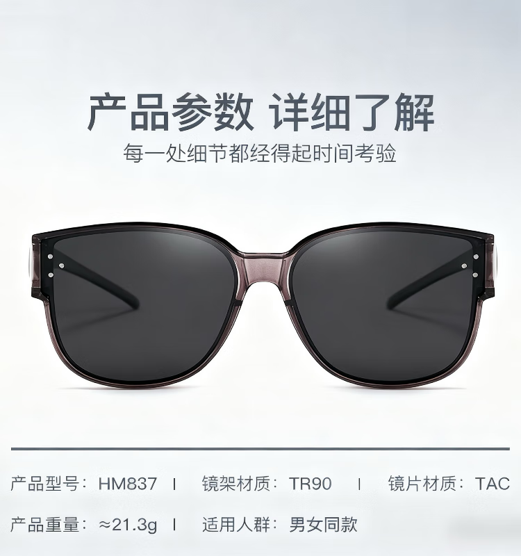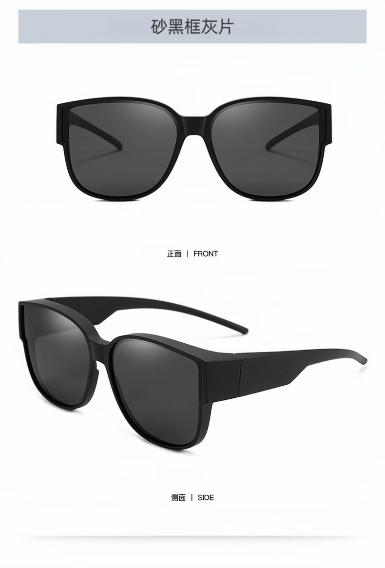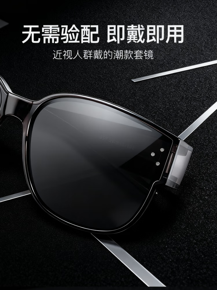 亿米诺 EMINO墨镜可套近视镜太阳眼镜男款遮阳偏光防晒眼镜男士开车专用套镜女 亮黑框-灰片(铆钉款)