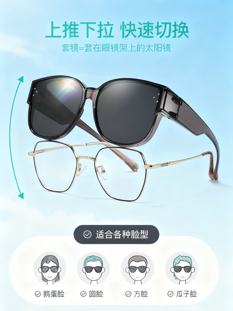 偏光夜视镜夹片男女日夜两用开车近视眼镜晚上专用驾驶墨镜防远光 渐变日夜两用