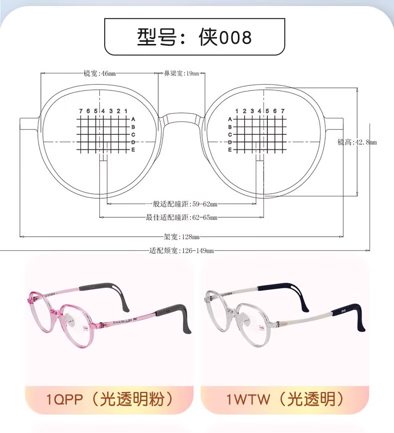 李白儿童眼镜框侠007系列近视镜架青少年配离焦镜片防控 侠008系列【46-19颜色请备注】