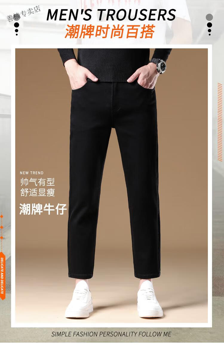 Lee dprre秋冬款黑色八分牛仔裤男士小个子九分裤秋季直筒修身小脚男款裤子 2453-9黑色【春秋款】 28 腰围2尺1