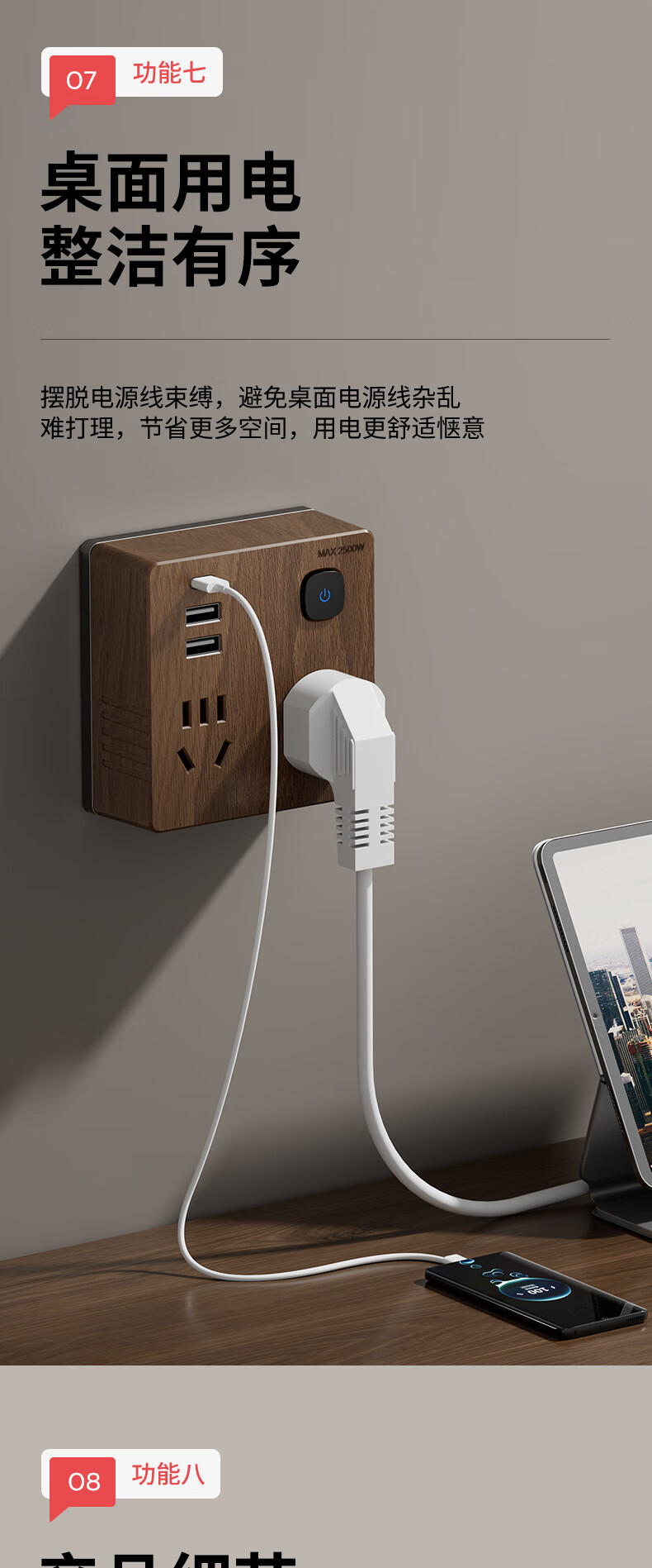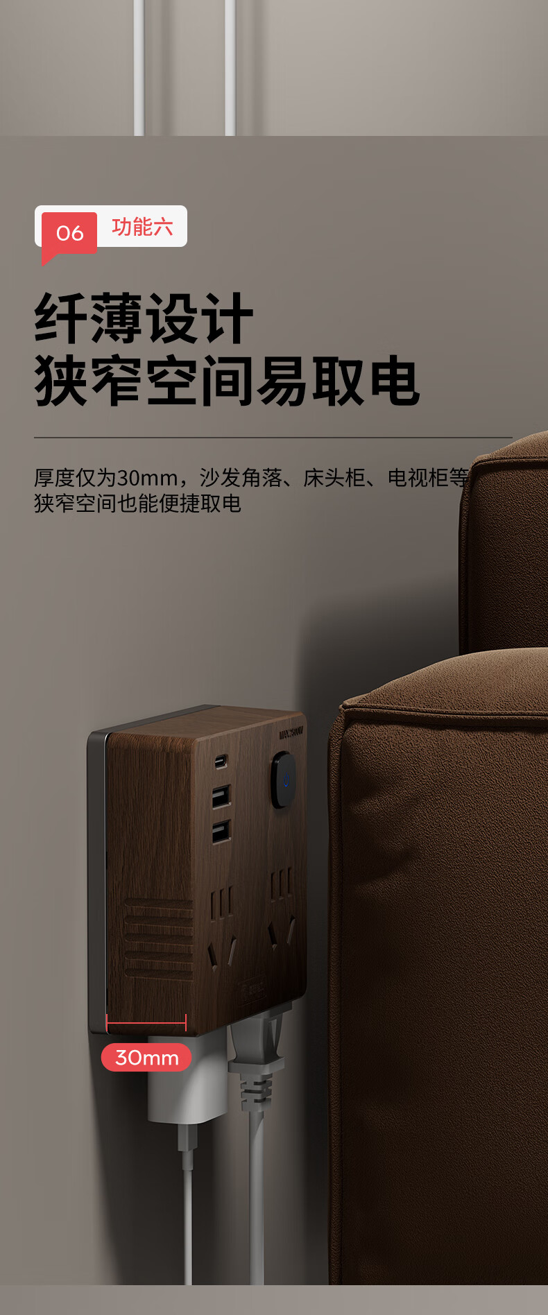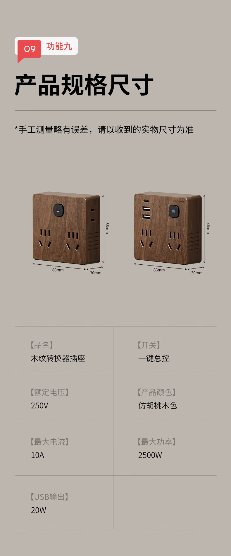 国际电工86型扩展插座一转多功能墙壁转换插头床头书桌直插式拓展插座 胡桃木色丨一转四插座(14孔)