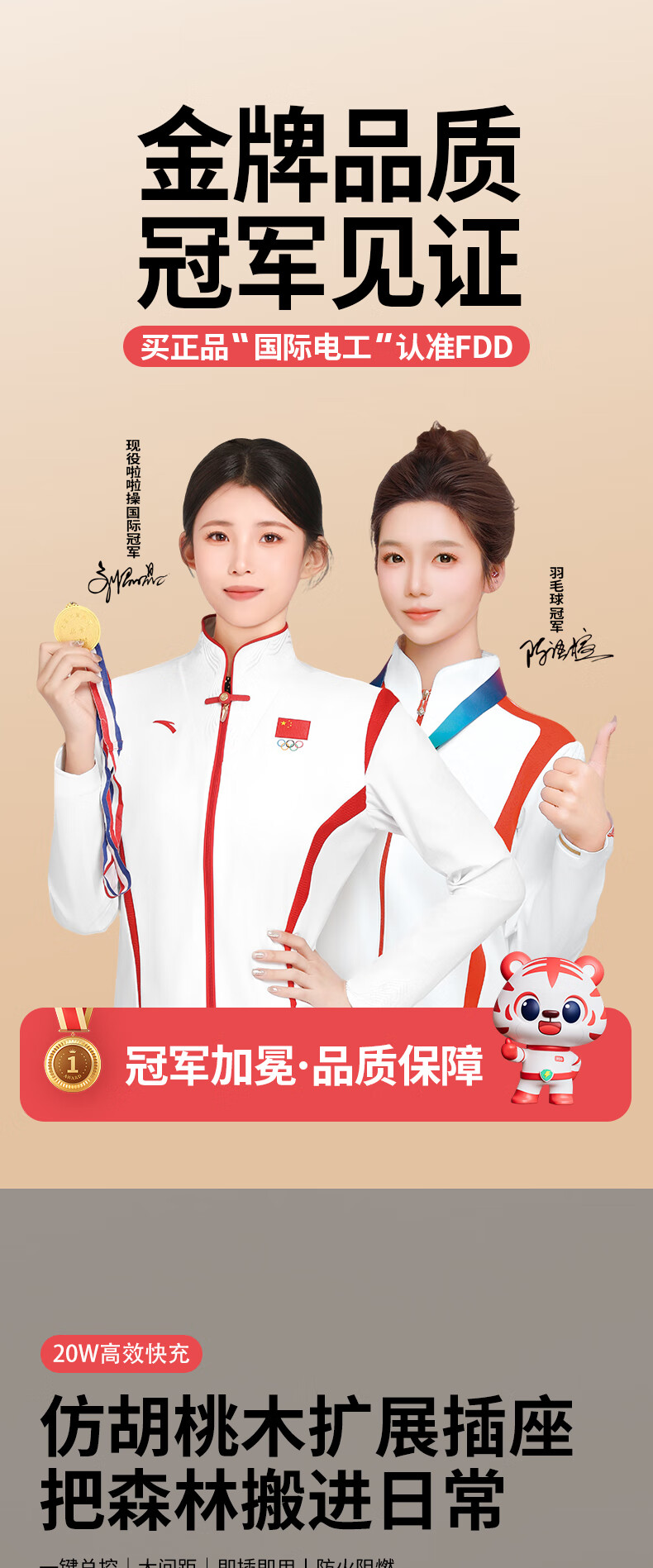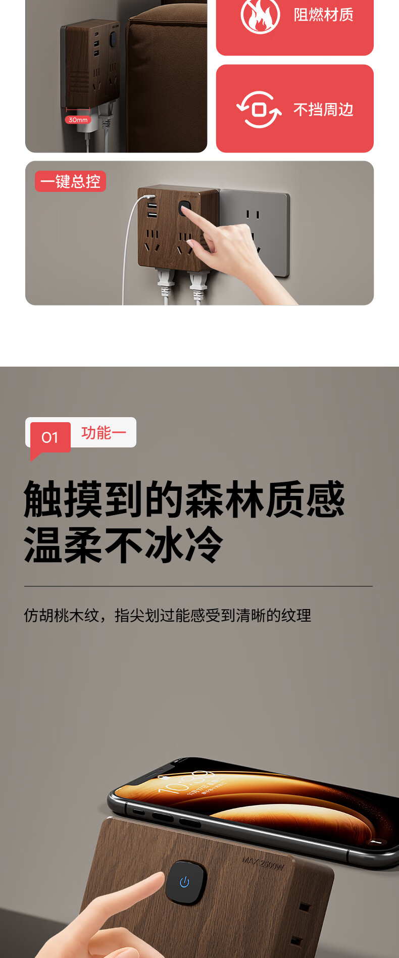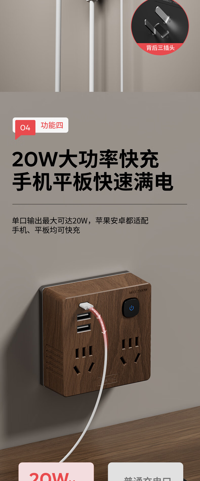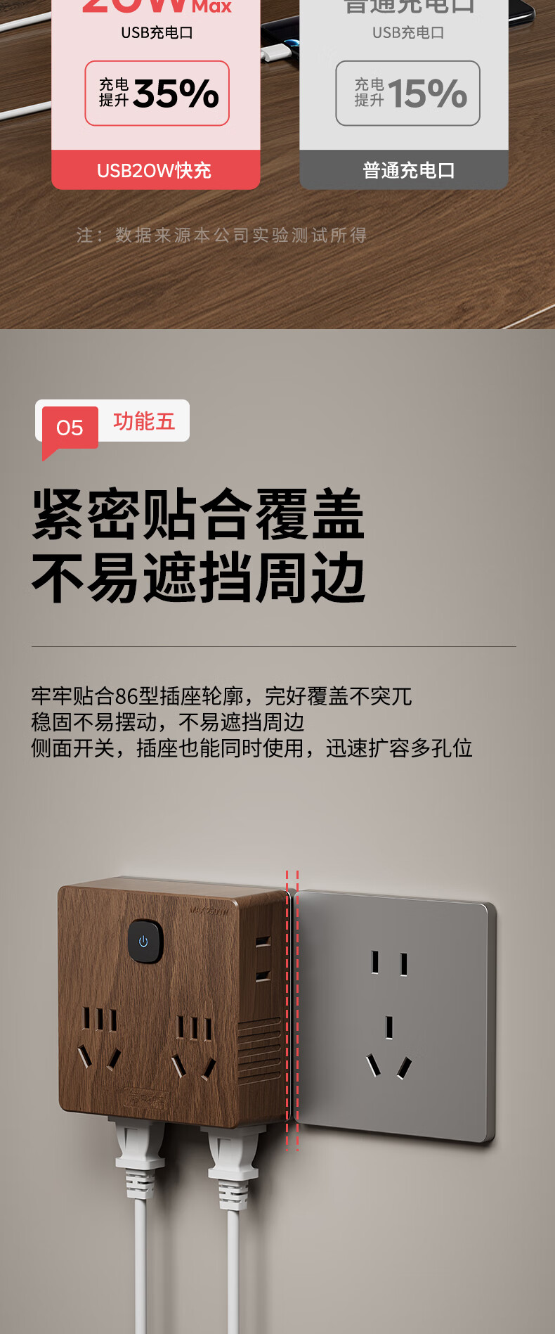 国际电工86型扩展插座一转多功能墙壁转换插头床头书桌直插式拓展插座 胡桃木色丨一转四插座(14孔)