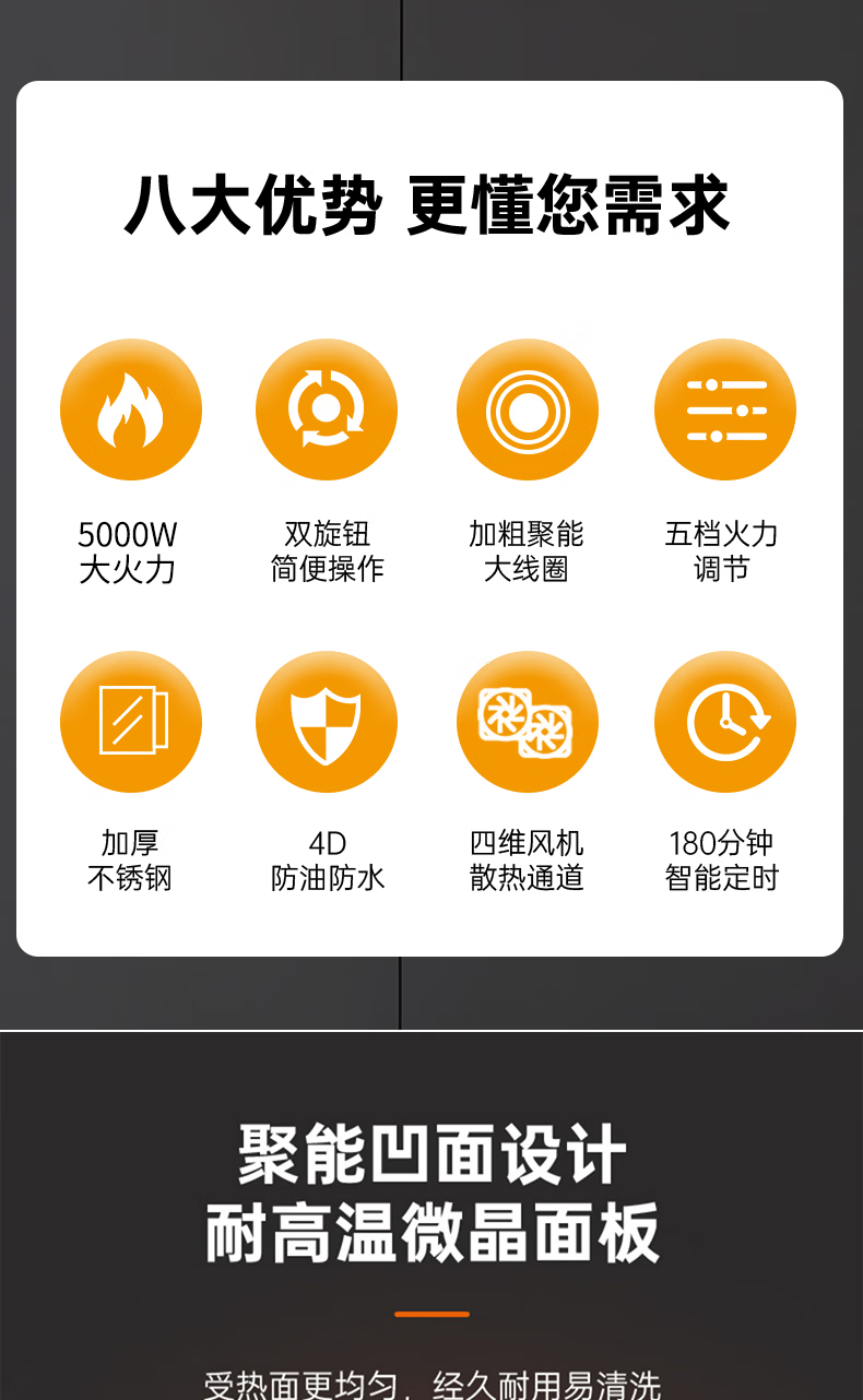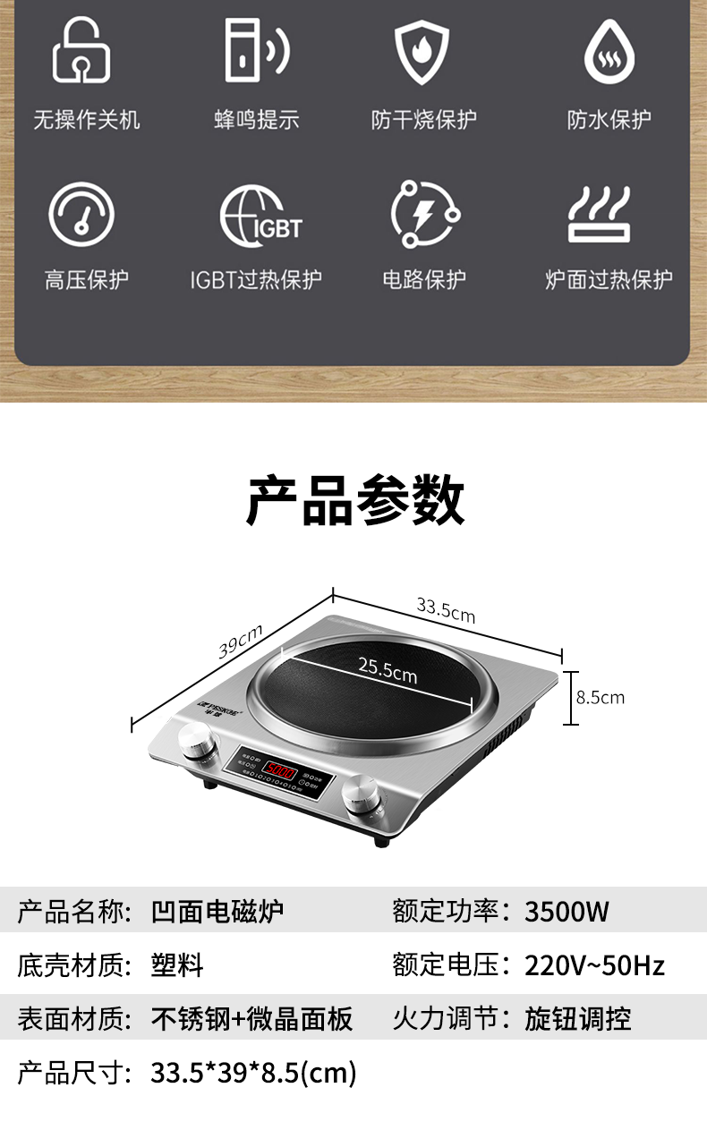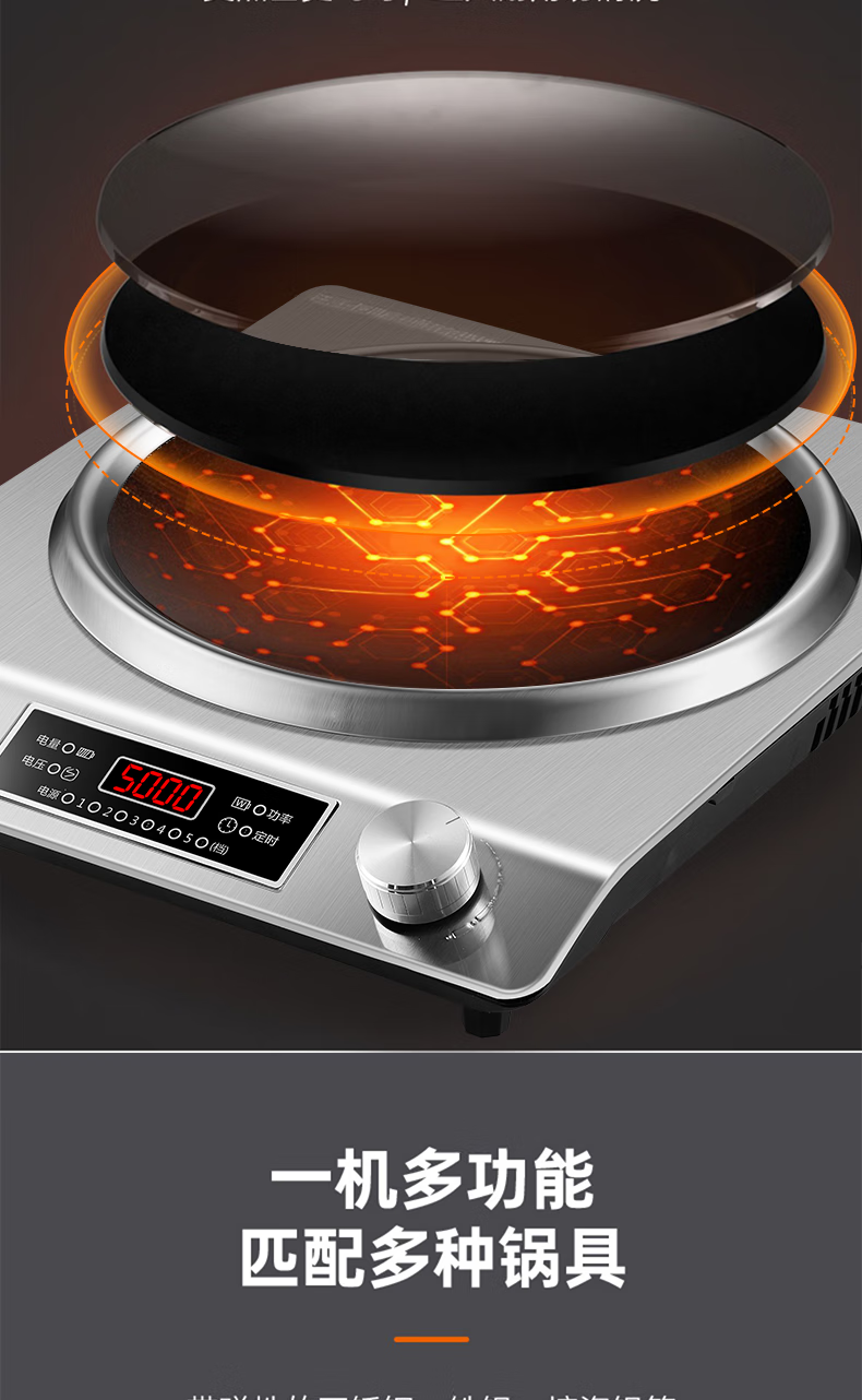 凹面电磁炉家用3500w大功率带锅一体套装多功能炒菜专用炉灶 5000W单机