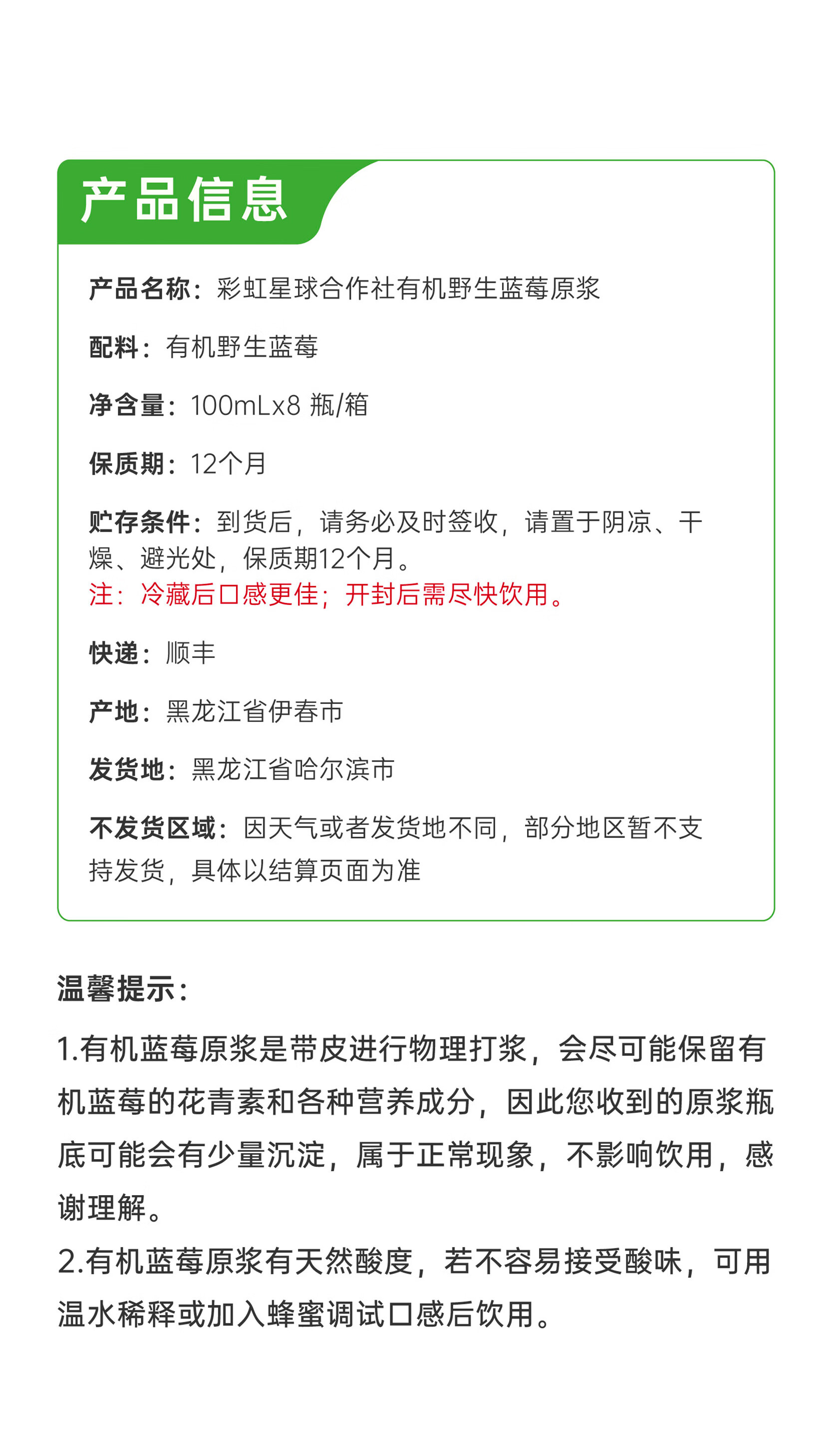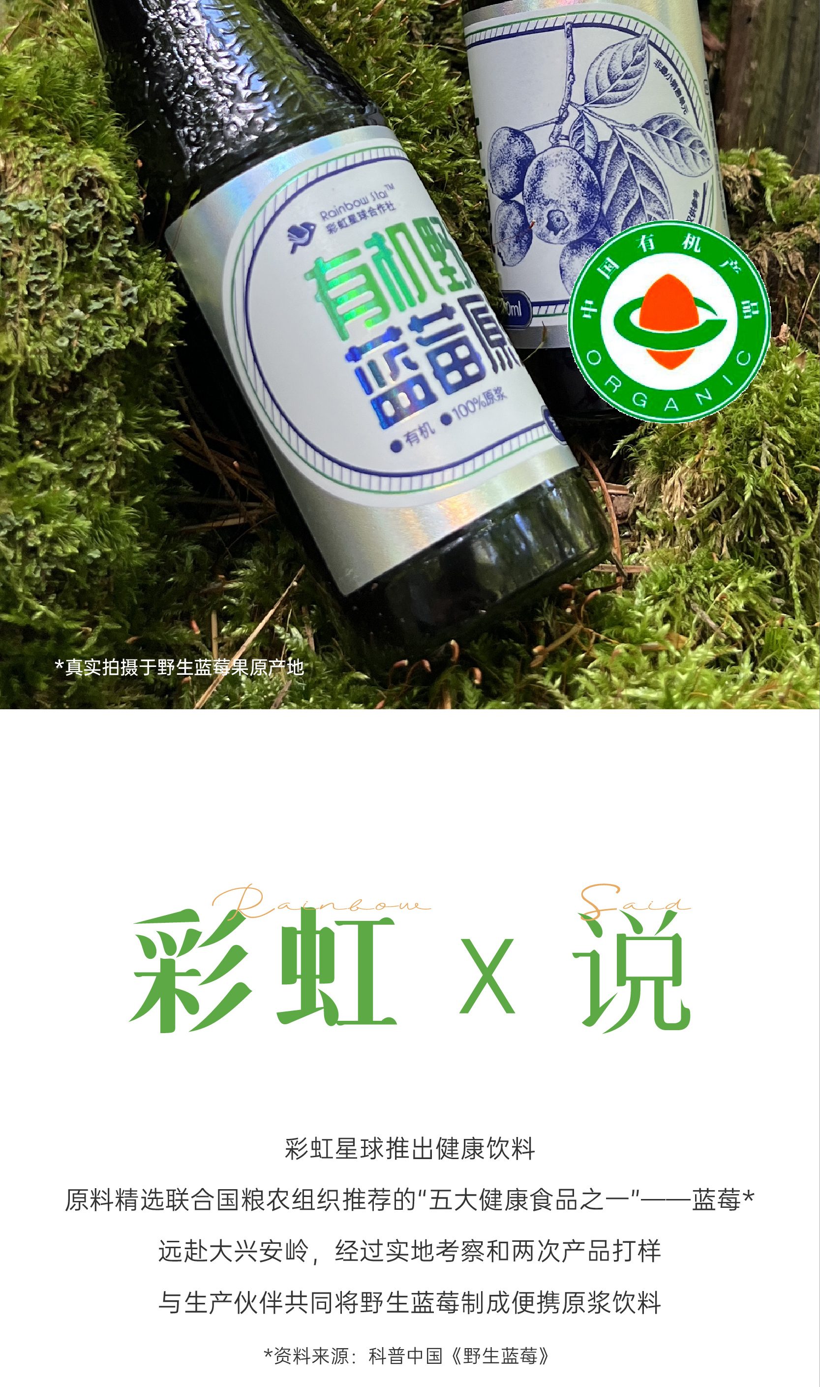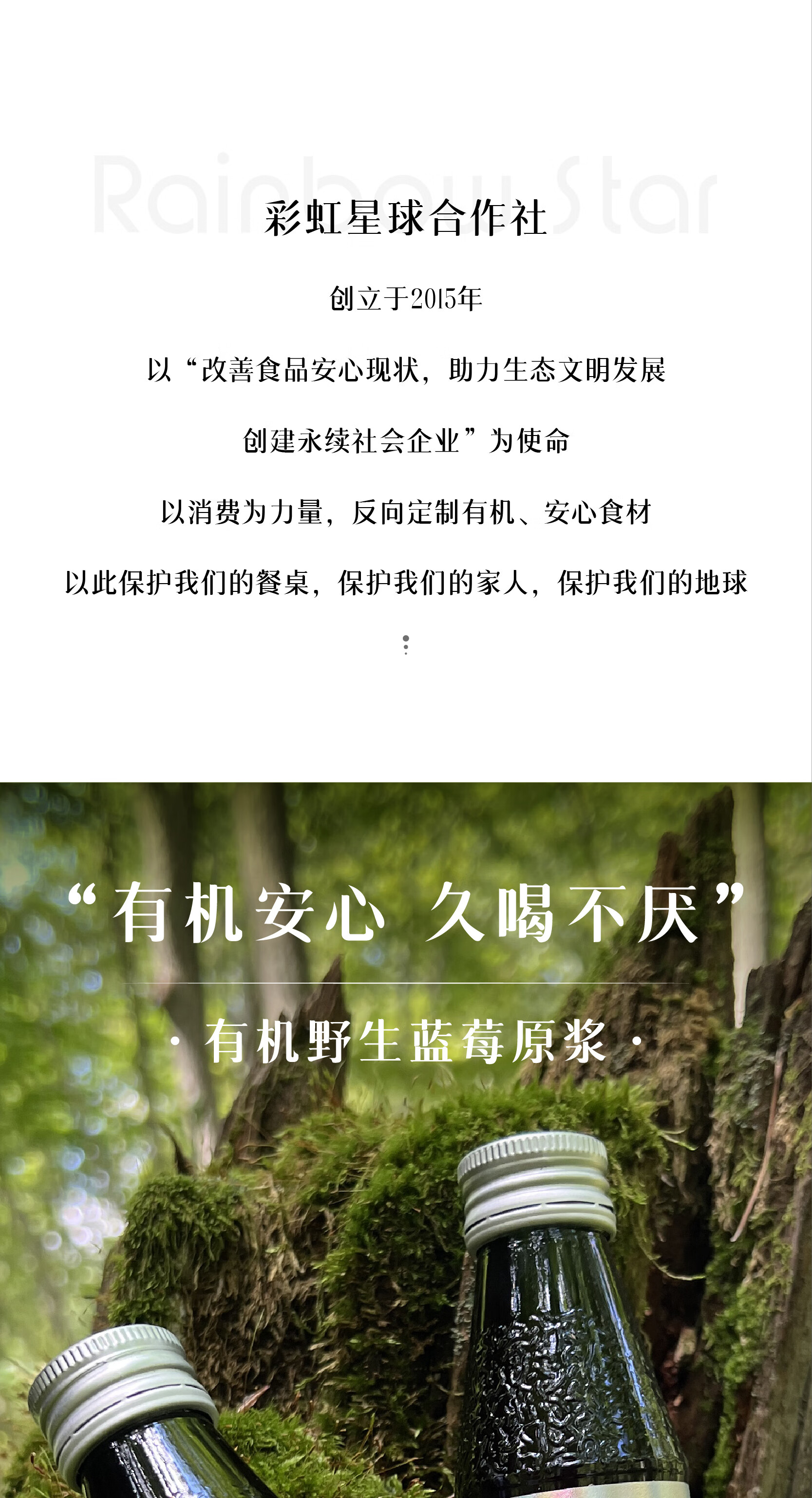 彩虹星球合作社有机丨有机野生蓝莓原浆小兴安岭蓝莓饮料箱装瓶蓝莓果汁 2箱装【100ml/瓶*16瓶】
