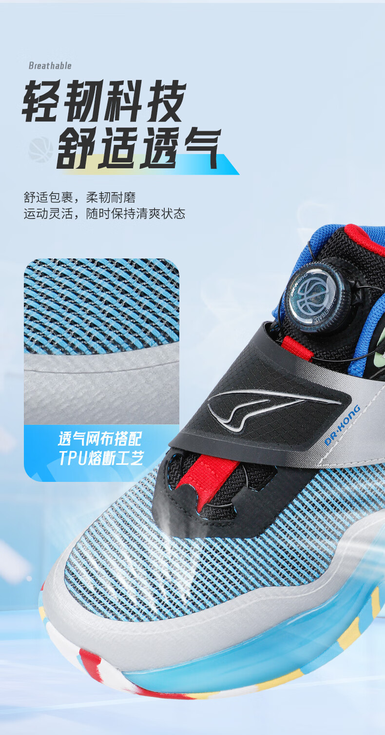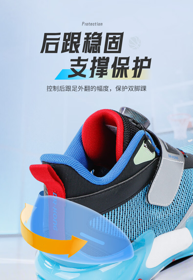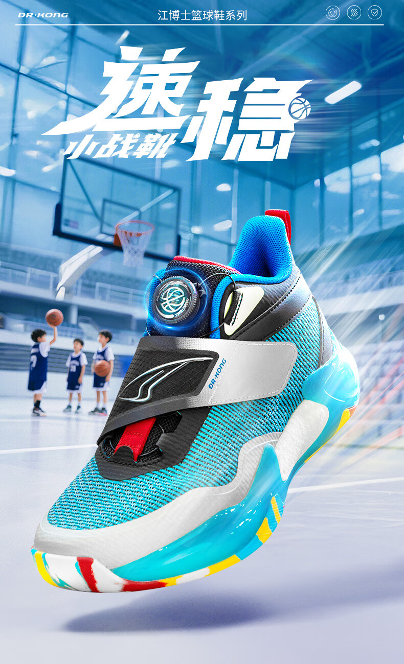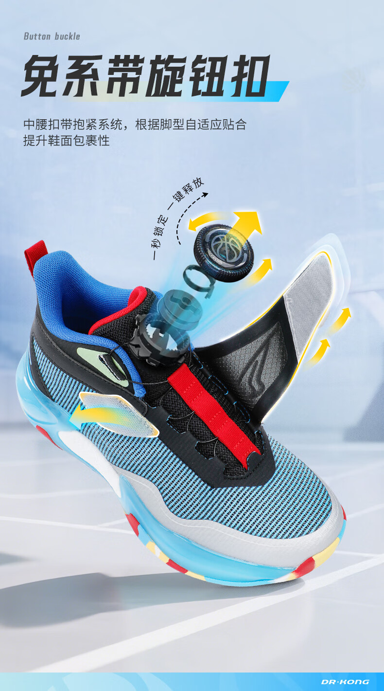 江博士秋季男中大童潮流篮球鞋 免系旋钮扣儿童运动鞋 蓝/黑/银 35 脚长约21.6-22.1