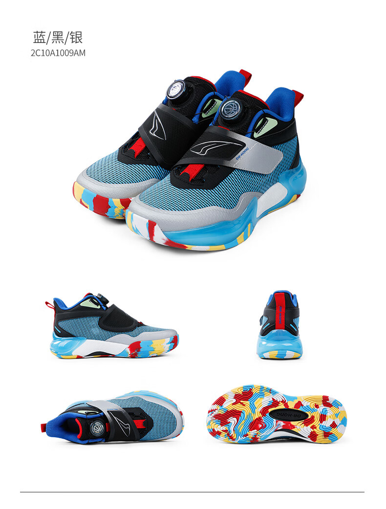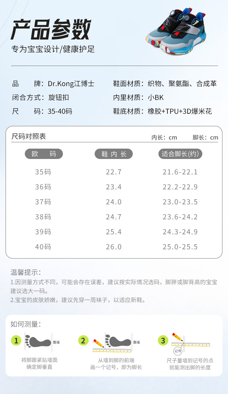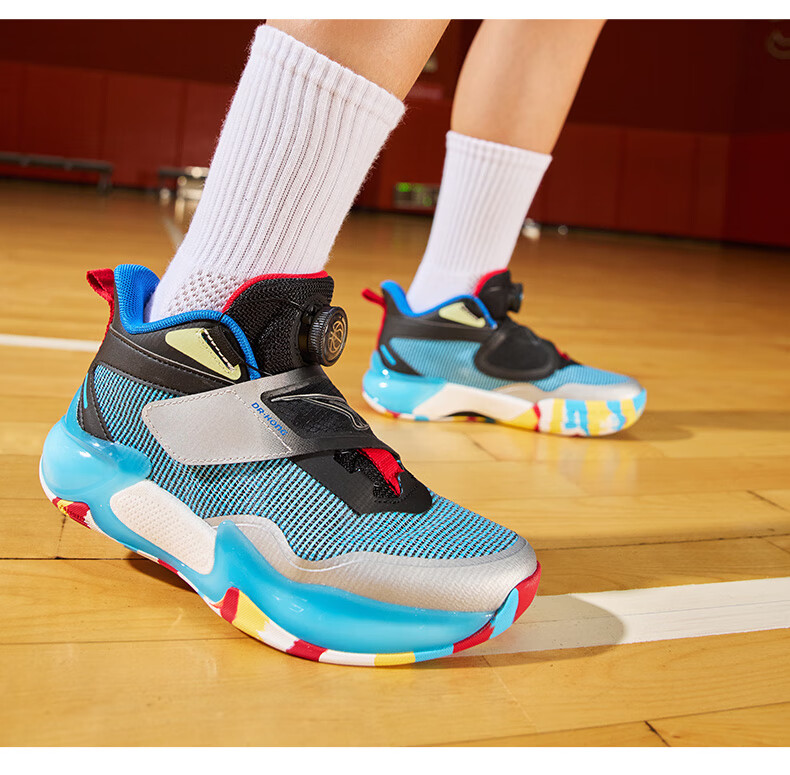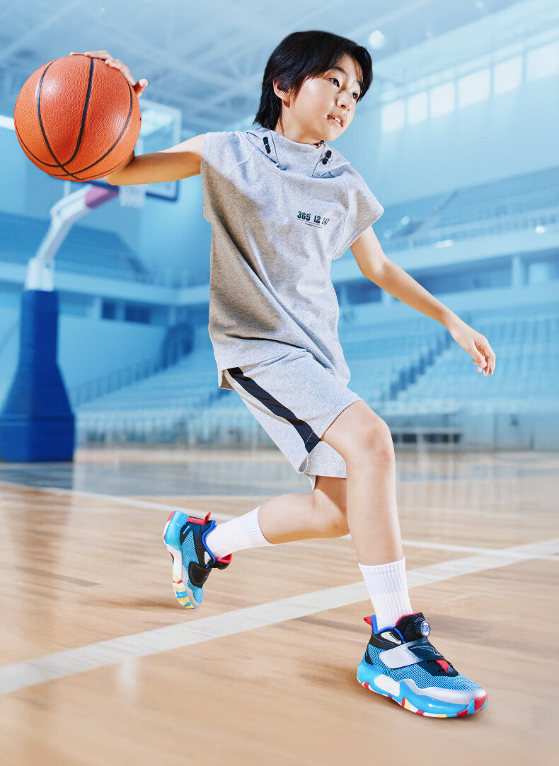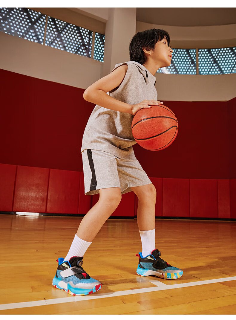 江博士秋季男中大童潮流篮球鞋 免系旋钮扣儿童运动鞋 蓝/黑/银 35 脚长约21.6-22.1