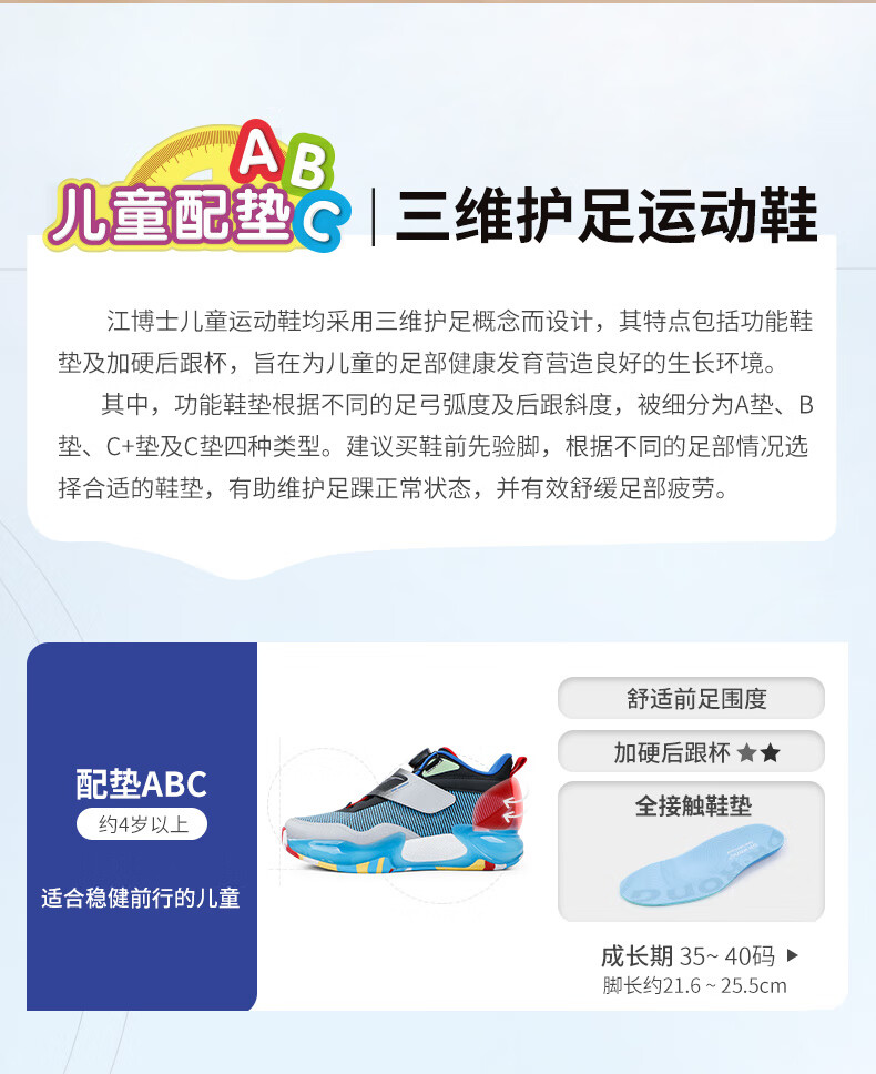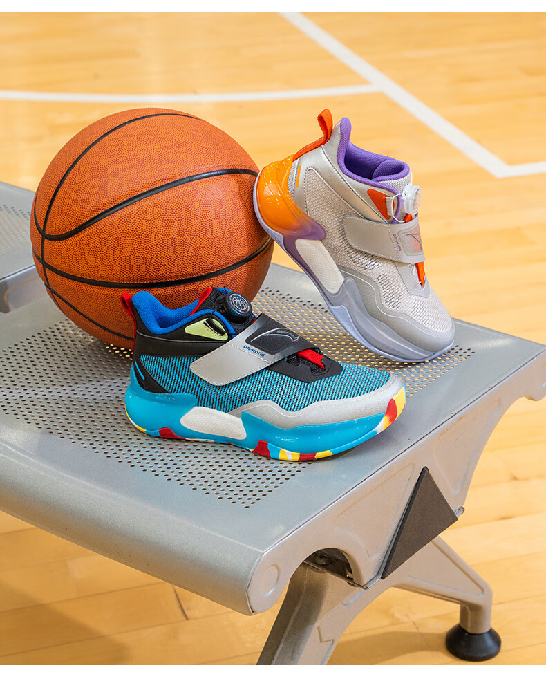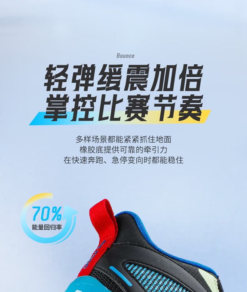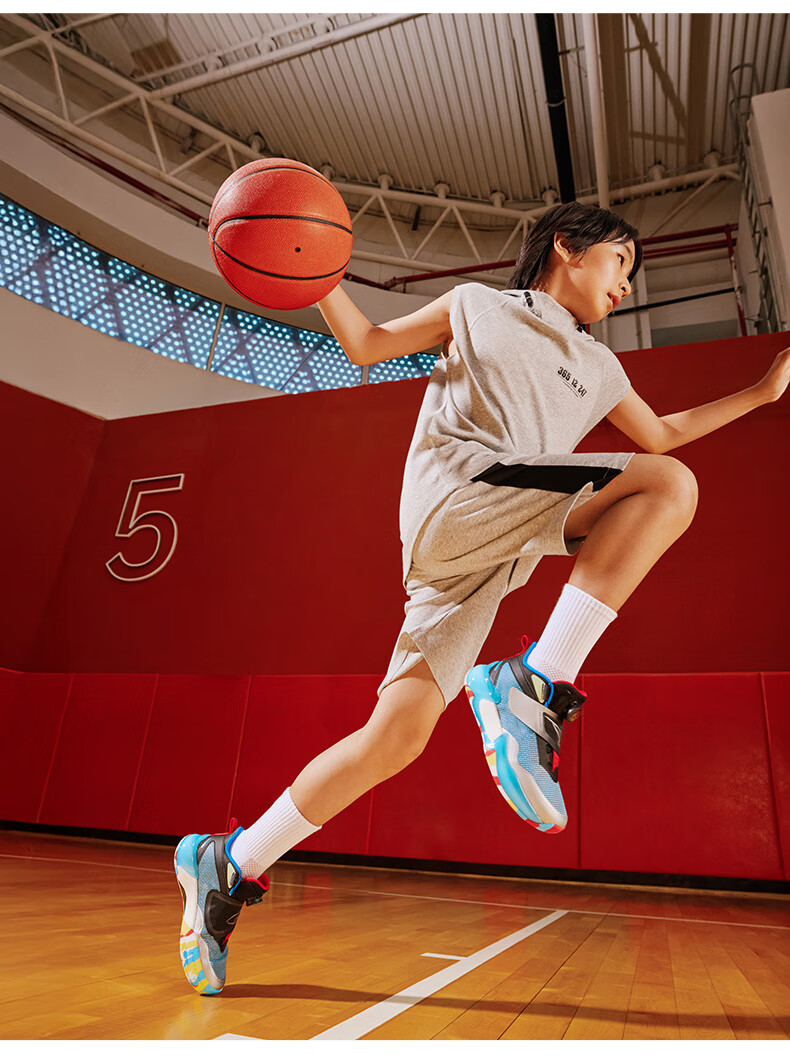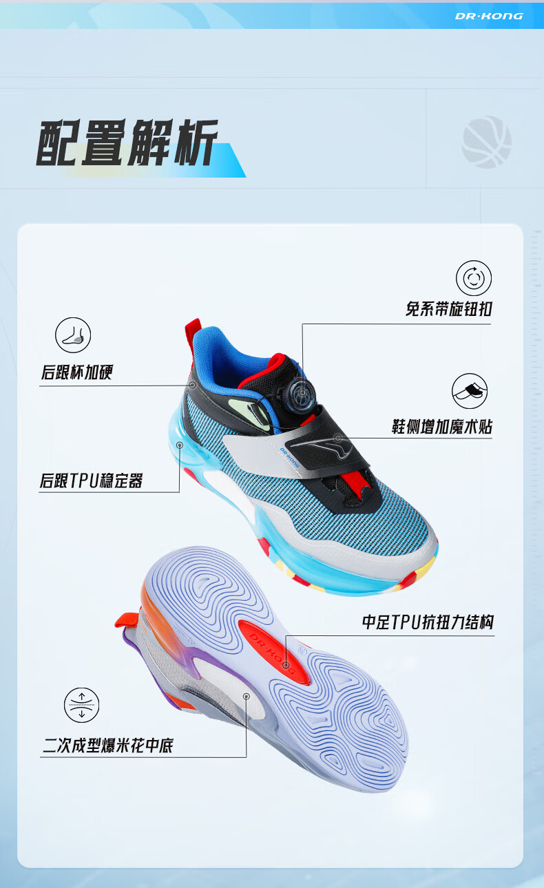 江博士秋季男中大童潮流篮球鞋 免系旋钮扣儿童运动鞋 蓝/黑/银 35 脚长约21.6-22.1