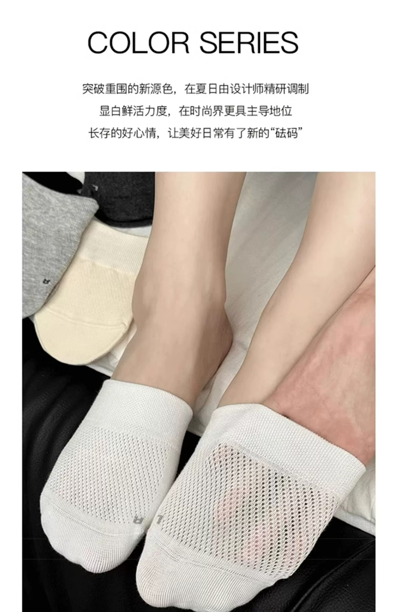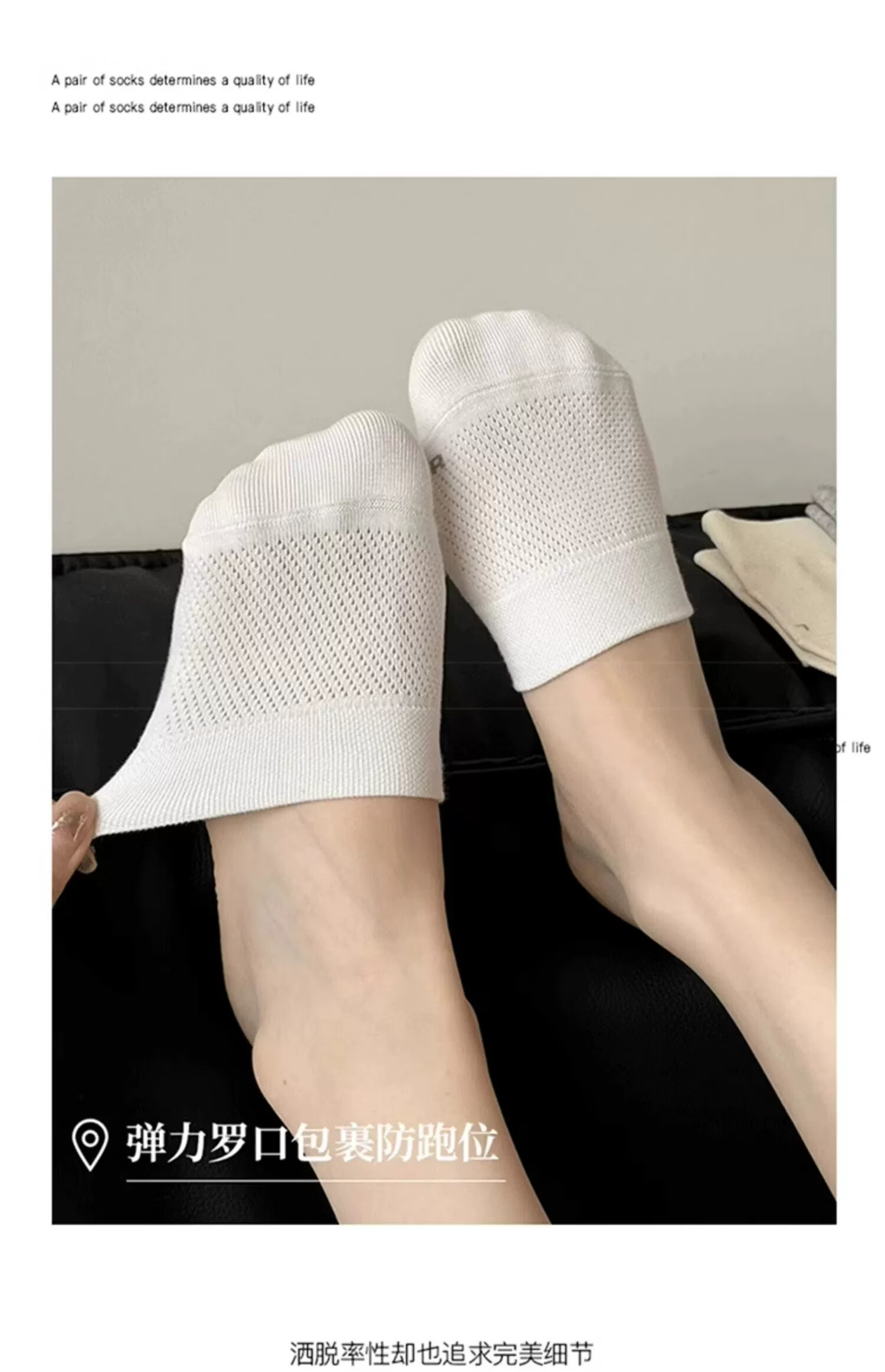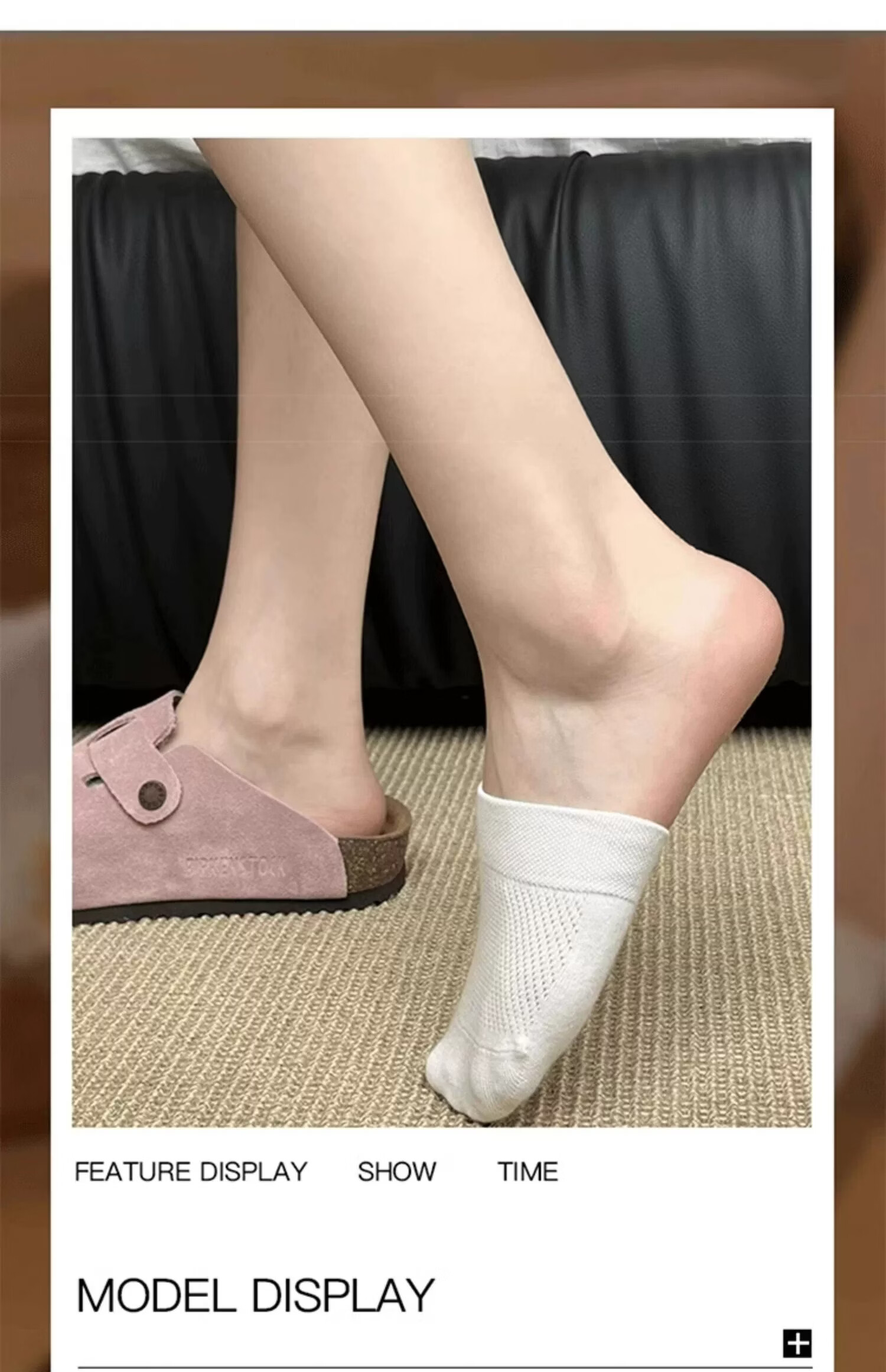 朋意半拖袜子女夏季薄款半掌袜隐形防滑船袜网眼袜半截拖鞋袜前脚掌袜 防滑半掌袜-糯米白-10双 均码