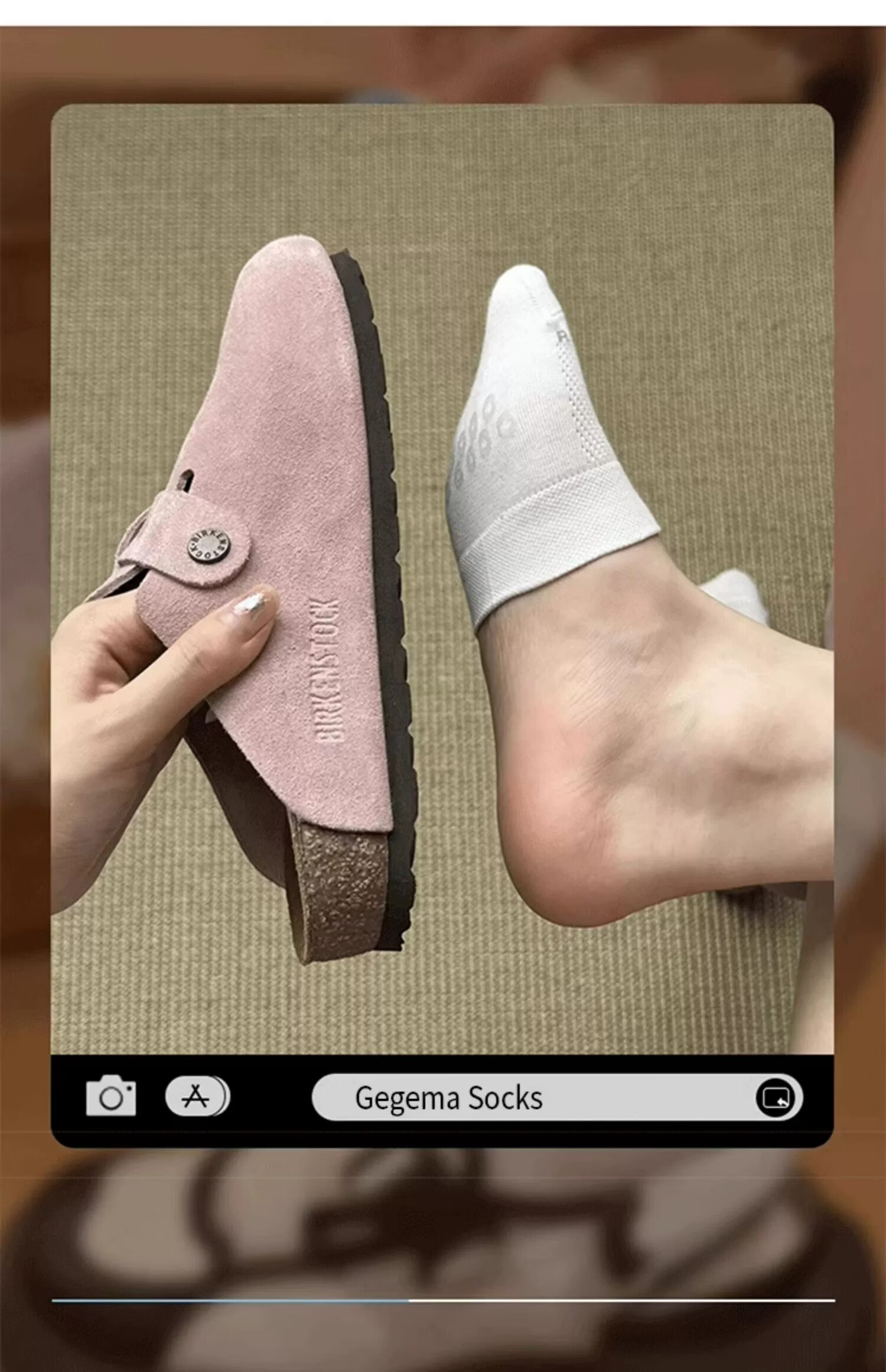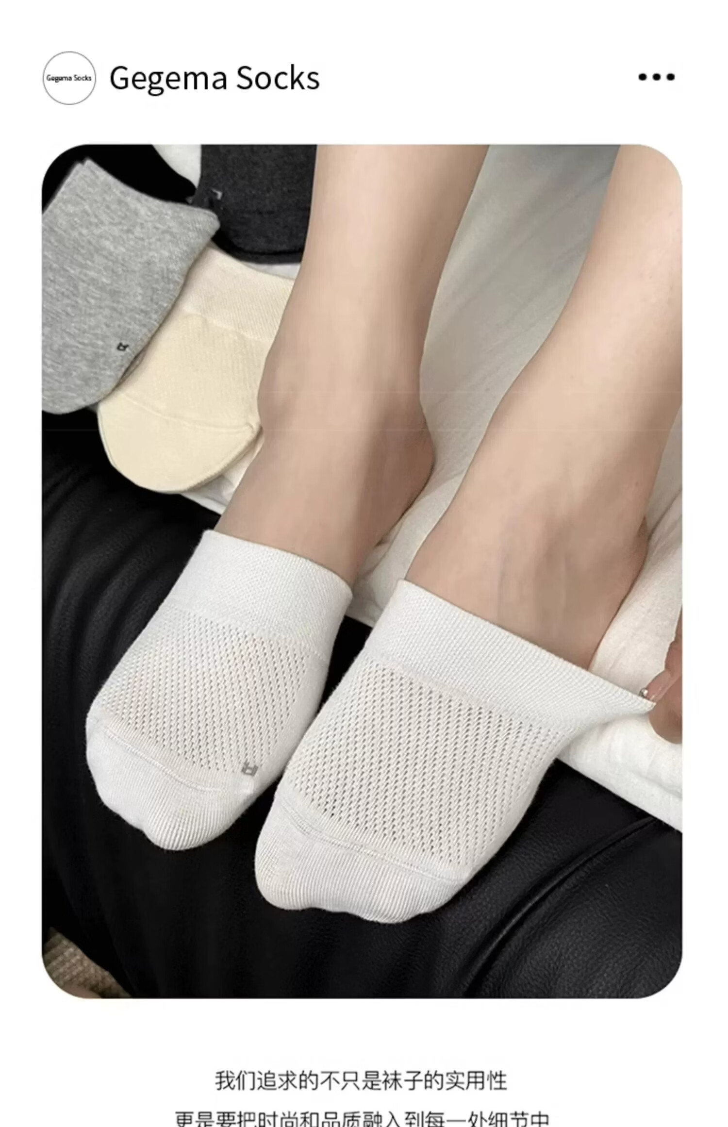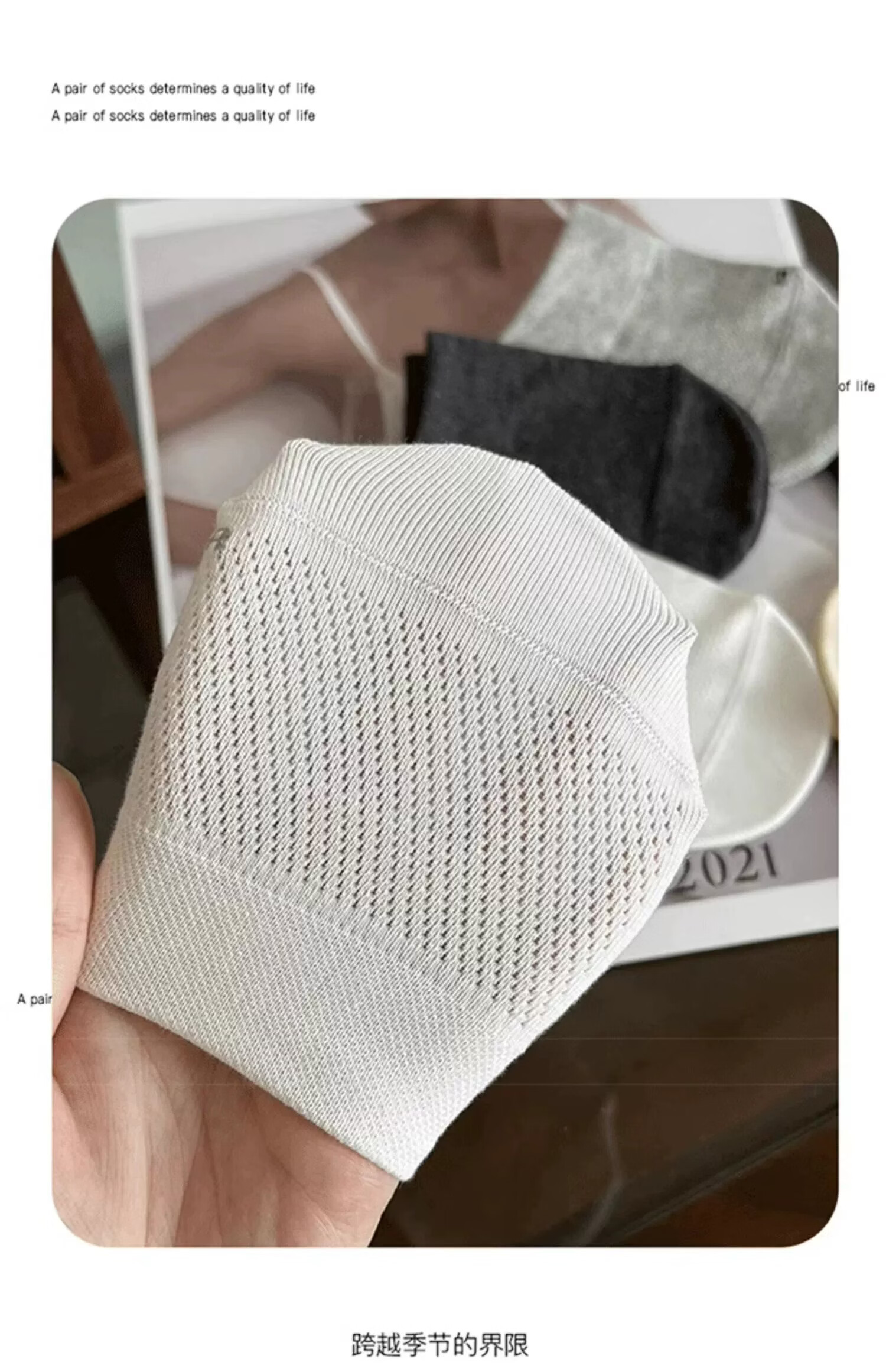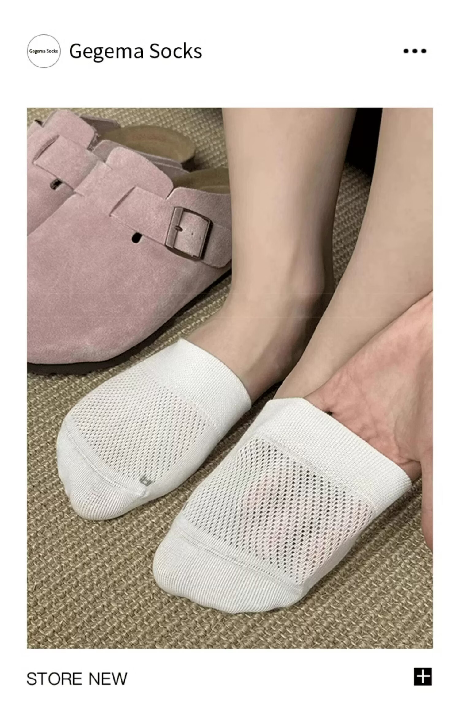 朋意半拖袜子女夏季薄款半掌袜隐形防滑船袜网眼袜半截拖鞋袜前脚掌袜 防滑半掌袜-糯米白-10双 均码