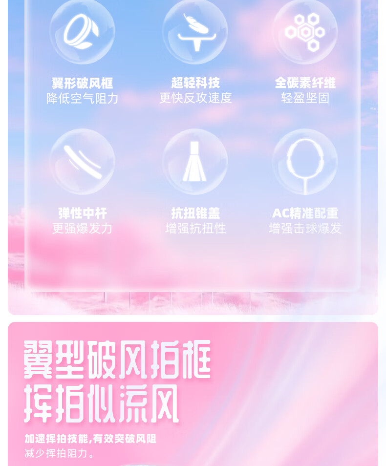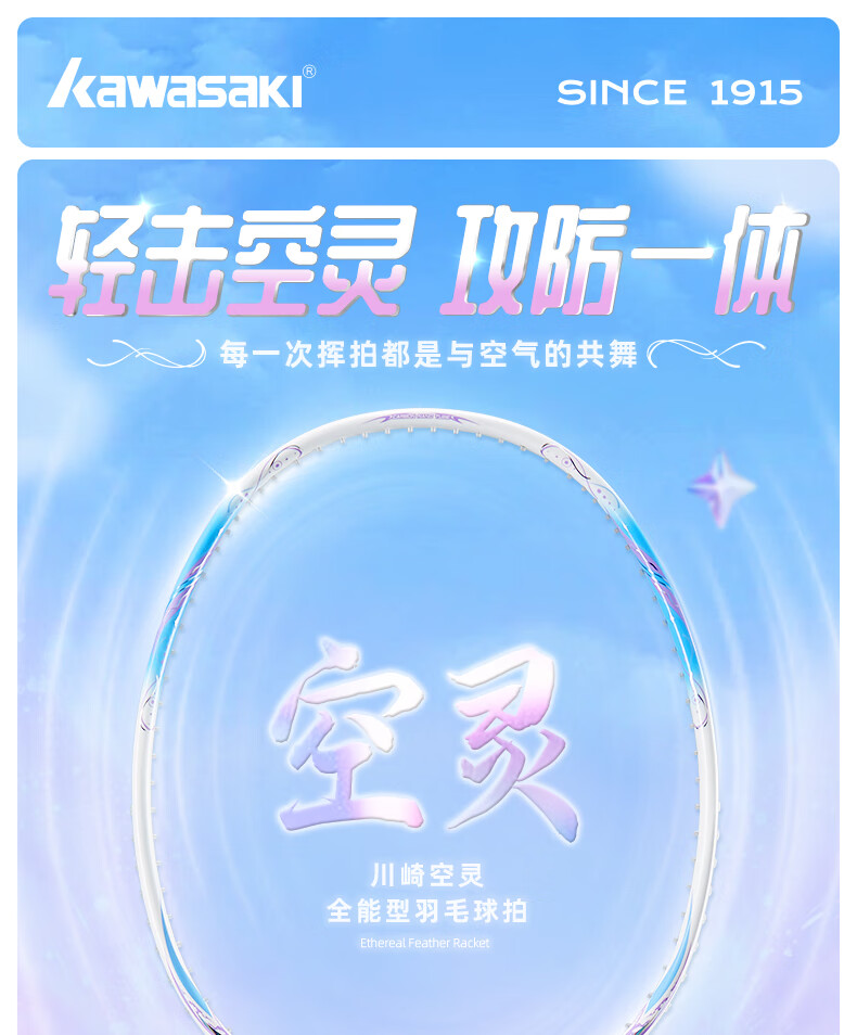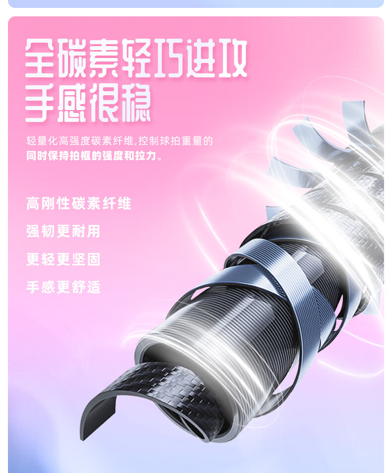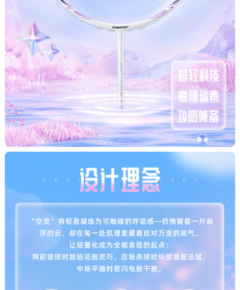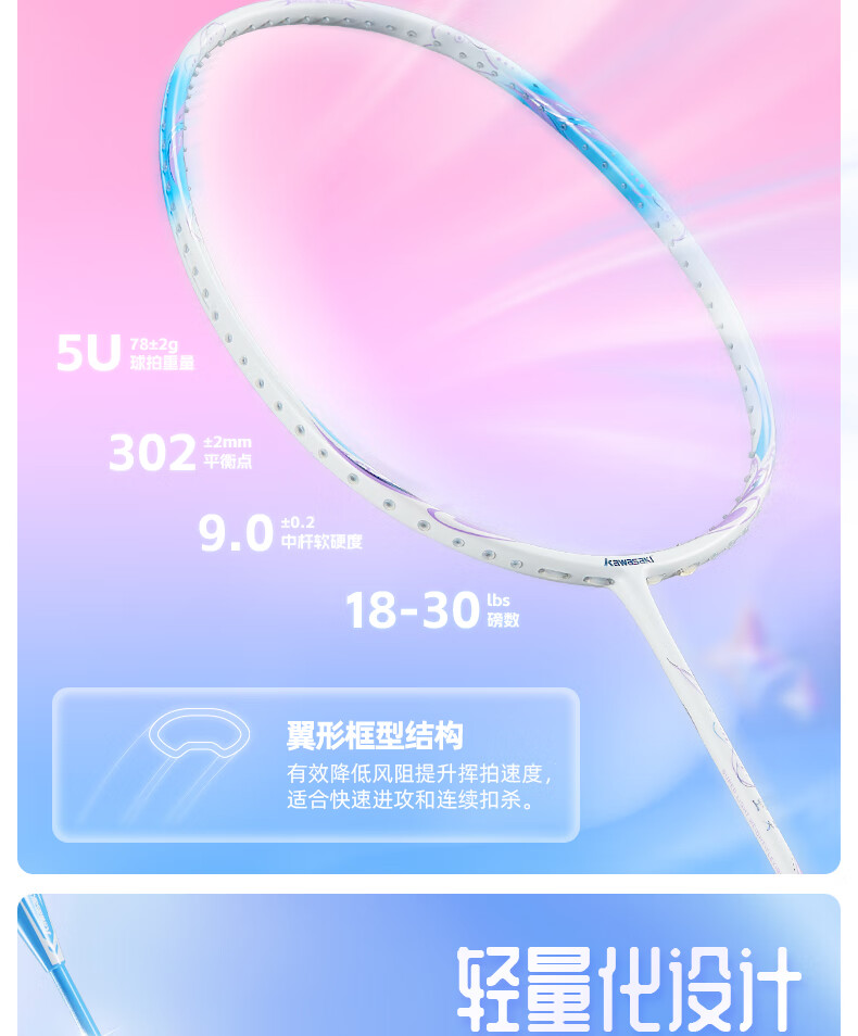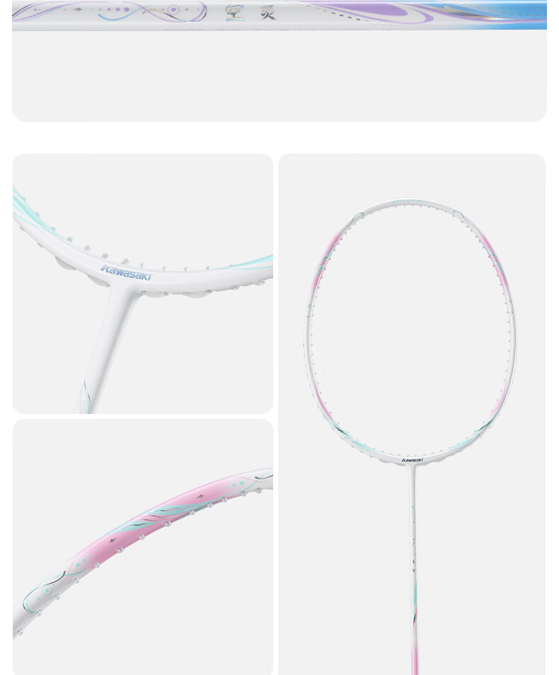 川崎(KAWASAKI)羽毛球拍空灵Pro超轻全碳素5U学生训练耐打高磅进攻型比赛单拍 空灵PRO 云霞粉【荧光黄线】5U 30磅(一级球员)全套赠品