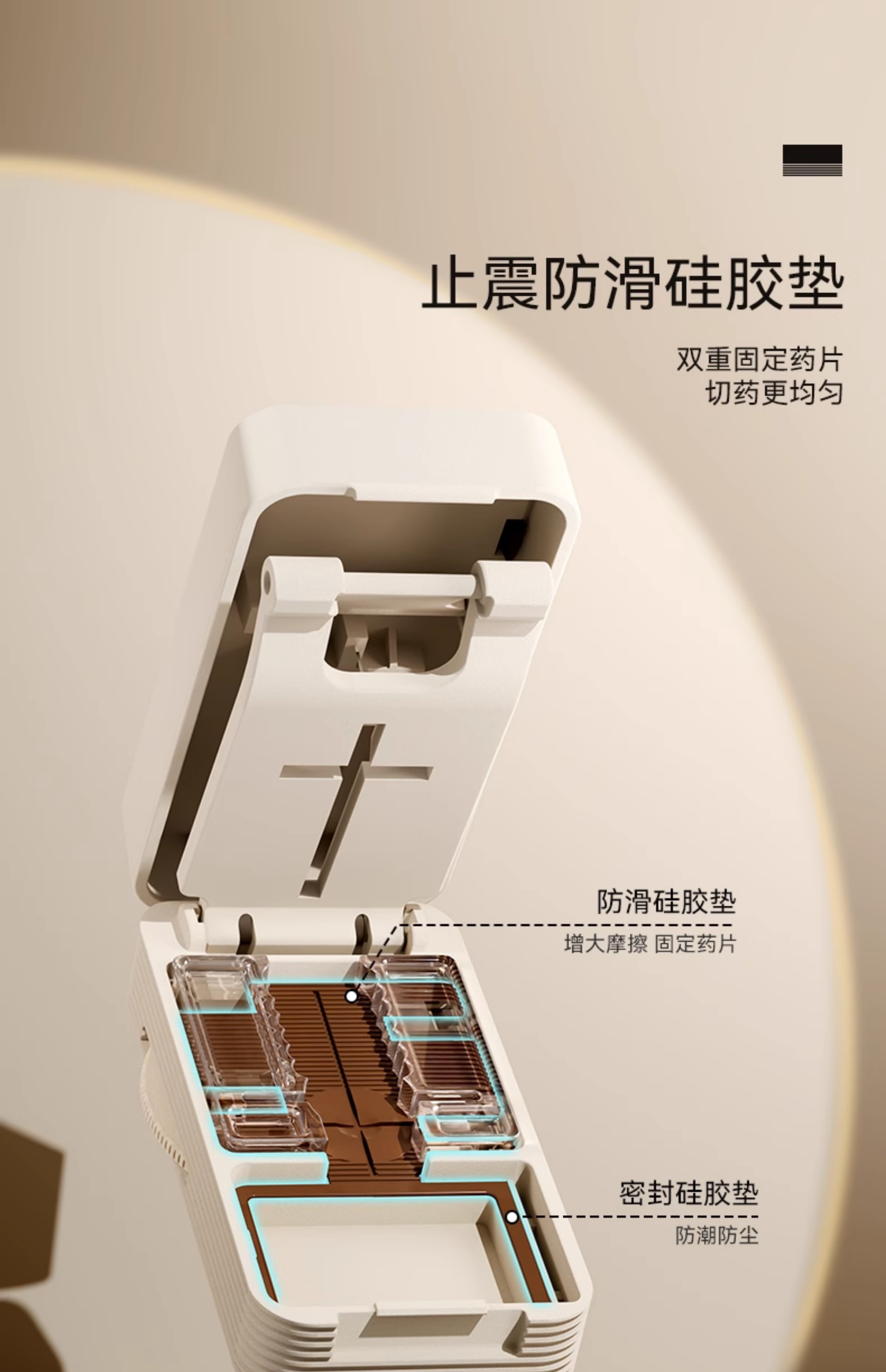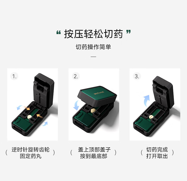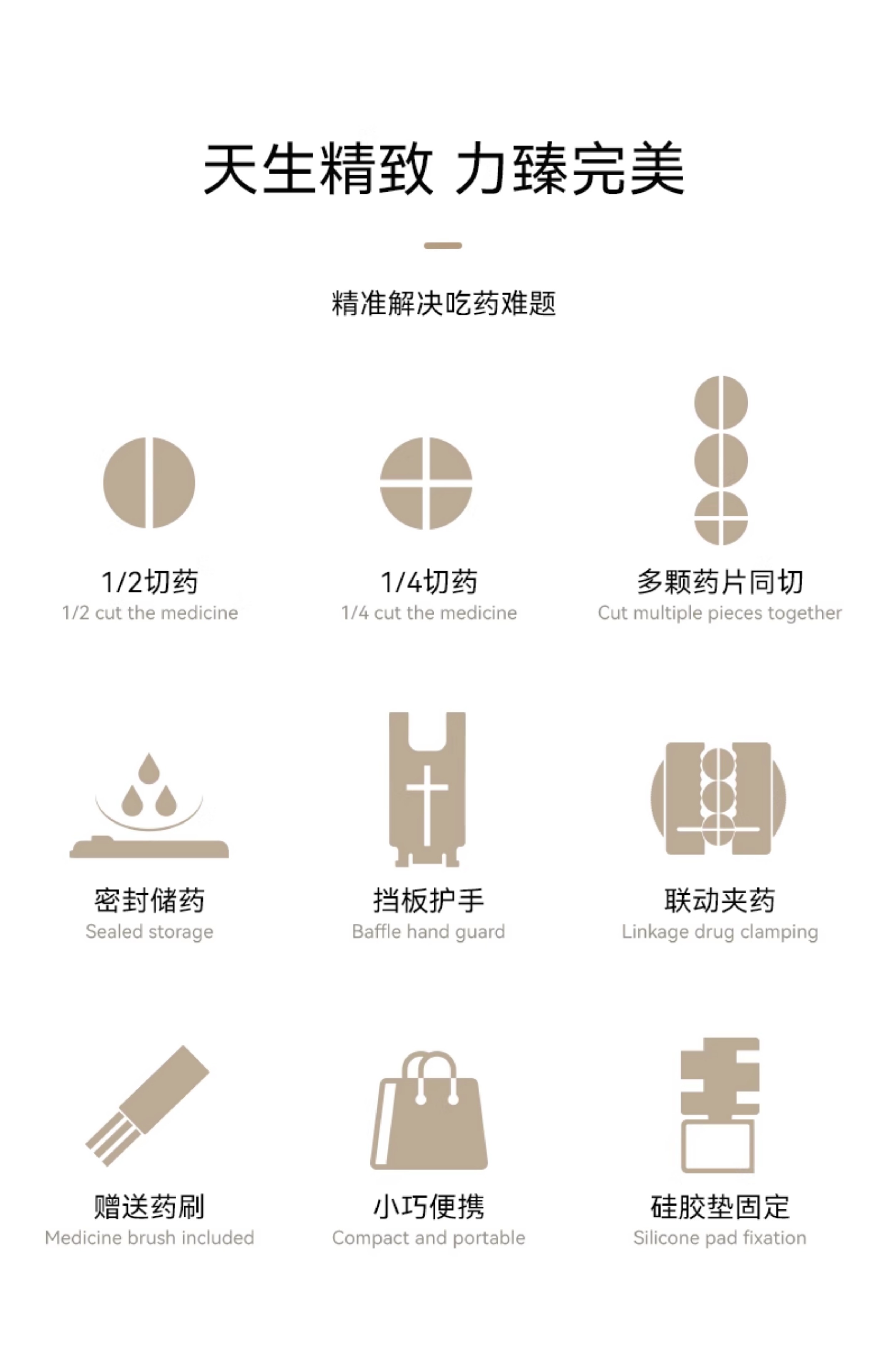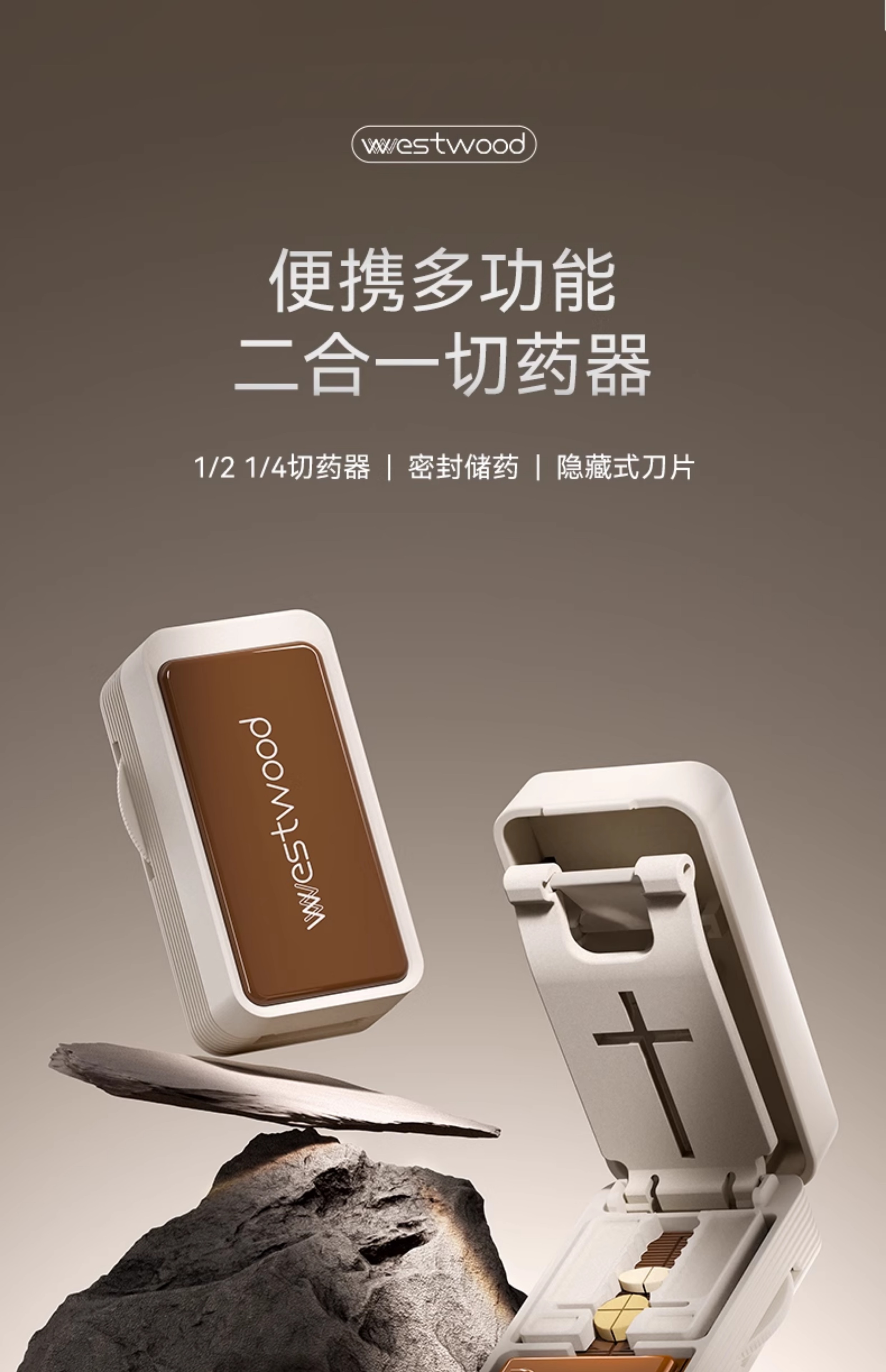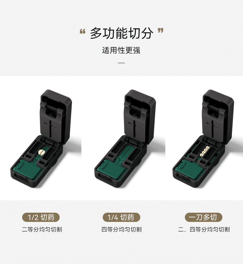 嘉智鹤多功能日本切药器一分二便携切割神器四分之一分药器药片分割药盒 雪白棕 升级款【1/2+1/4切药器】切药+储药