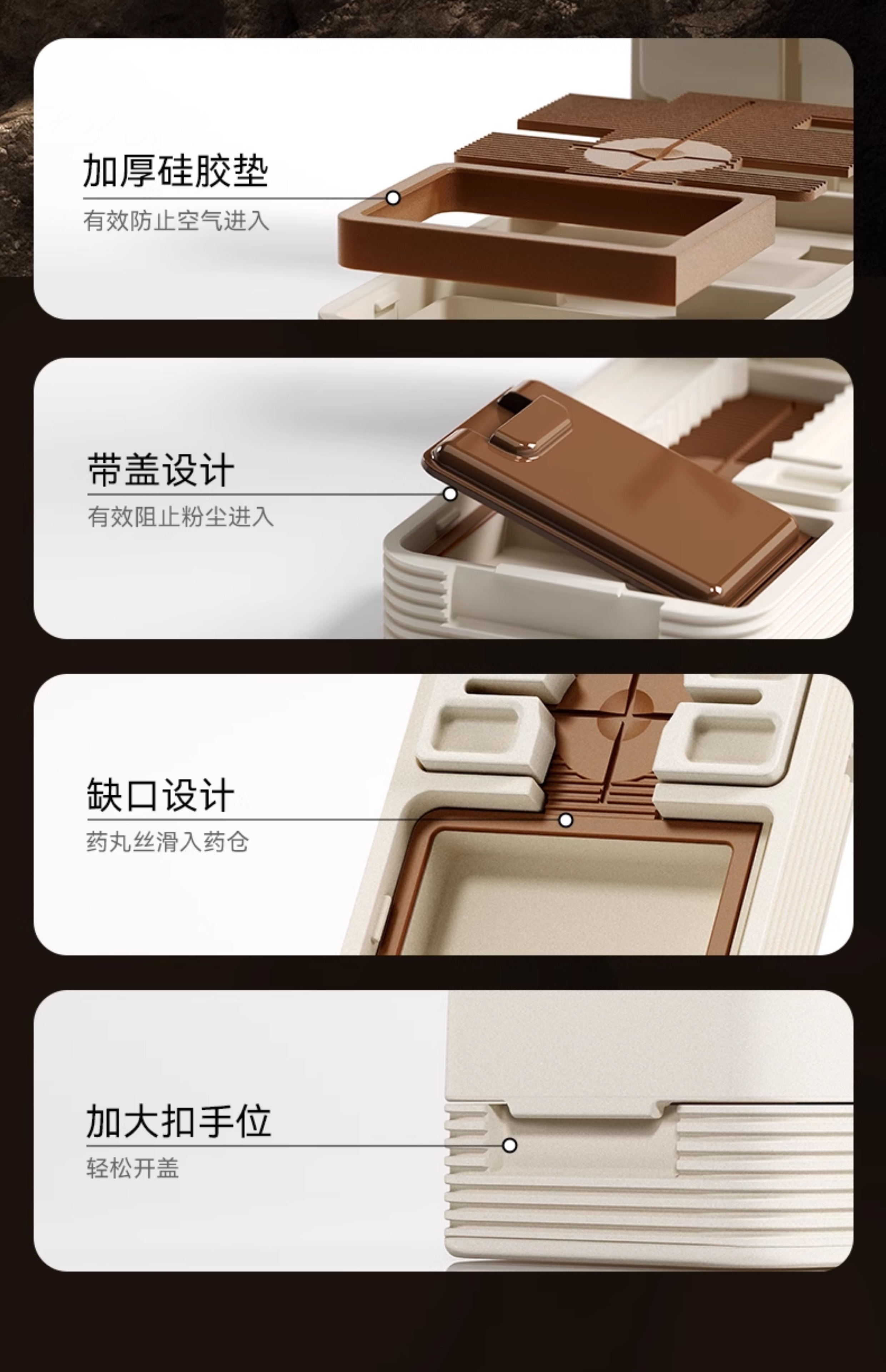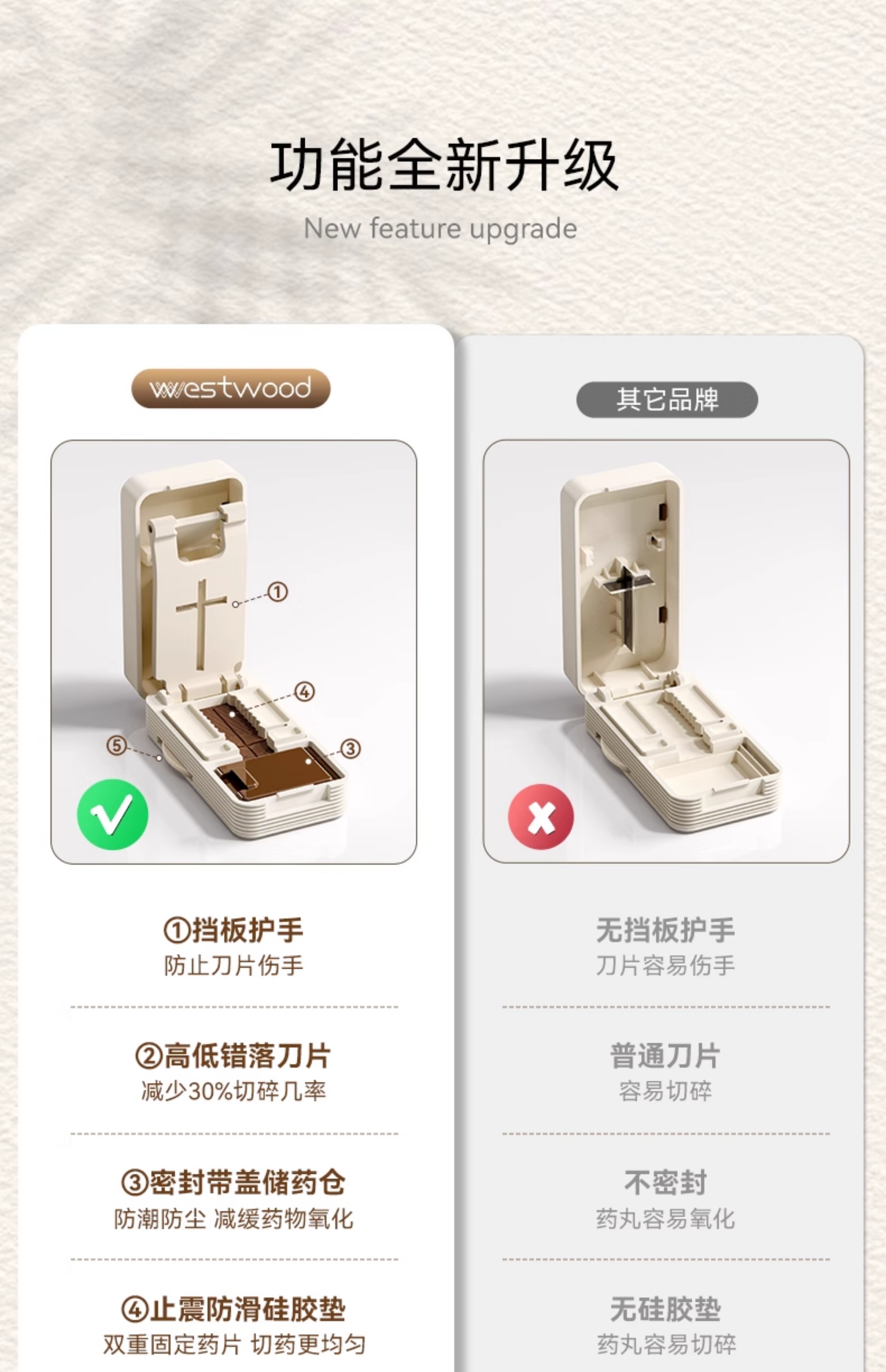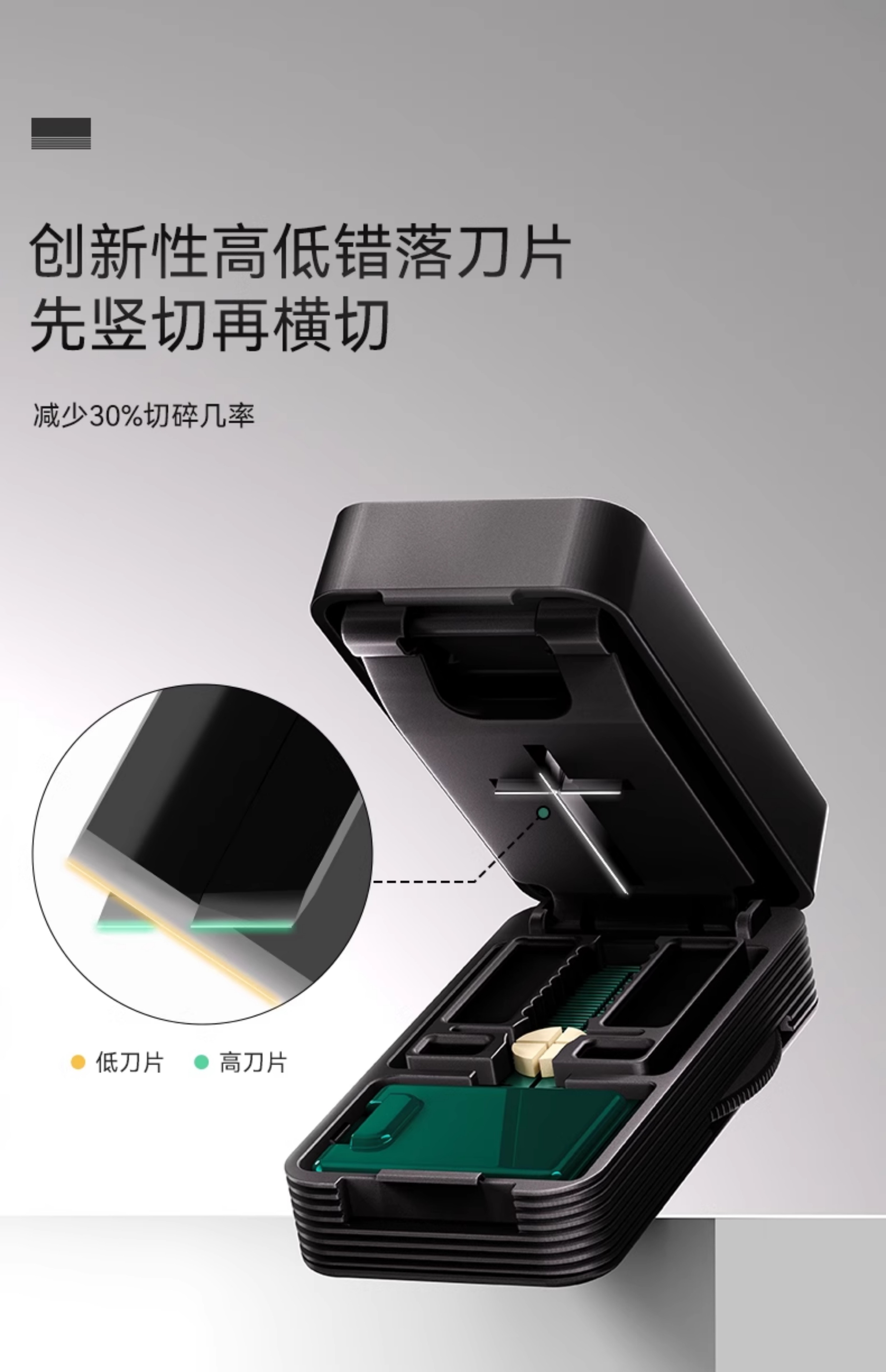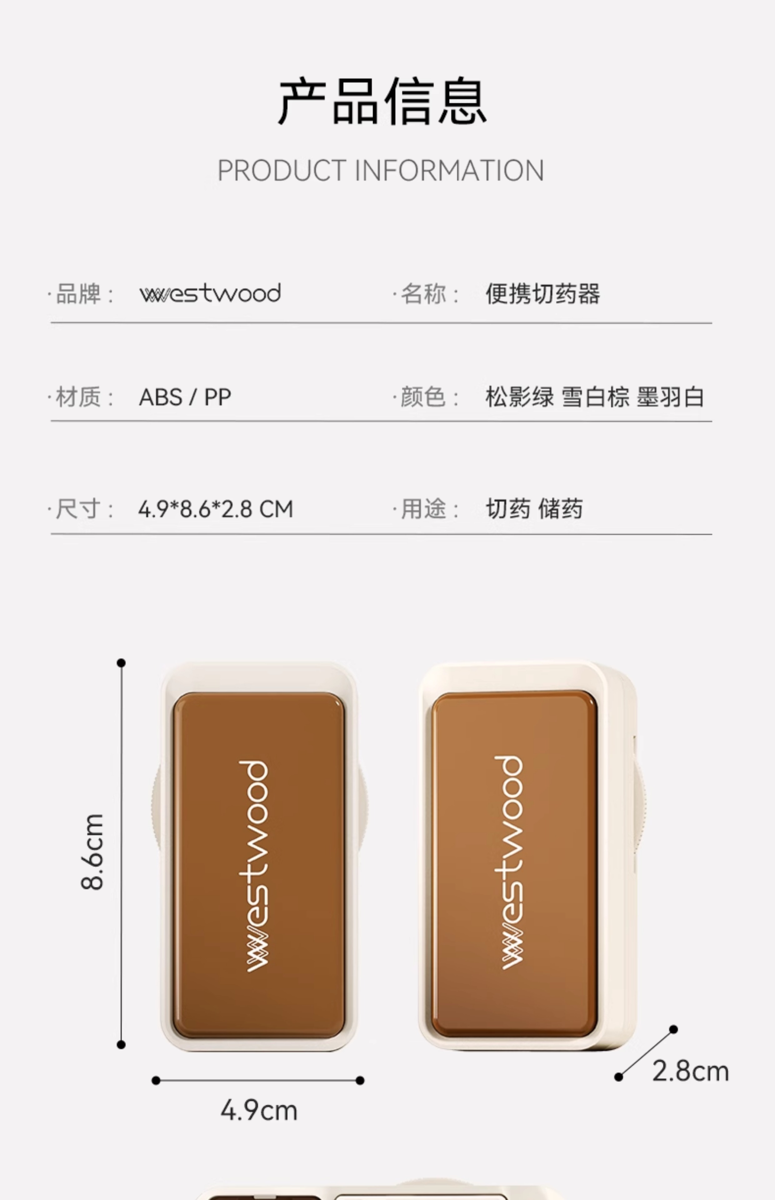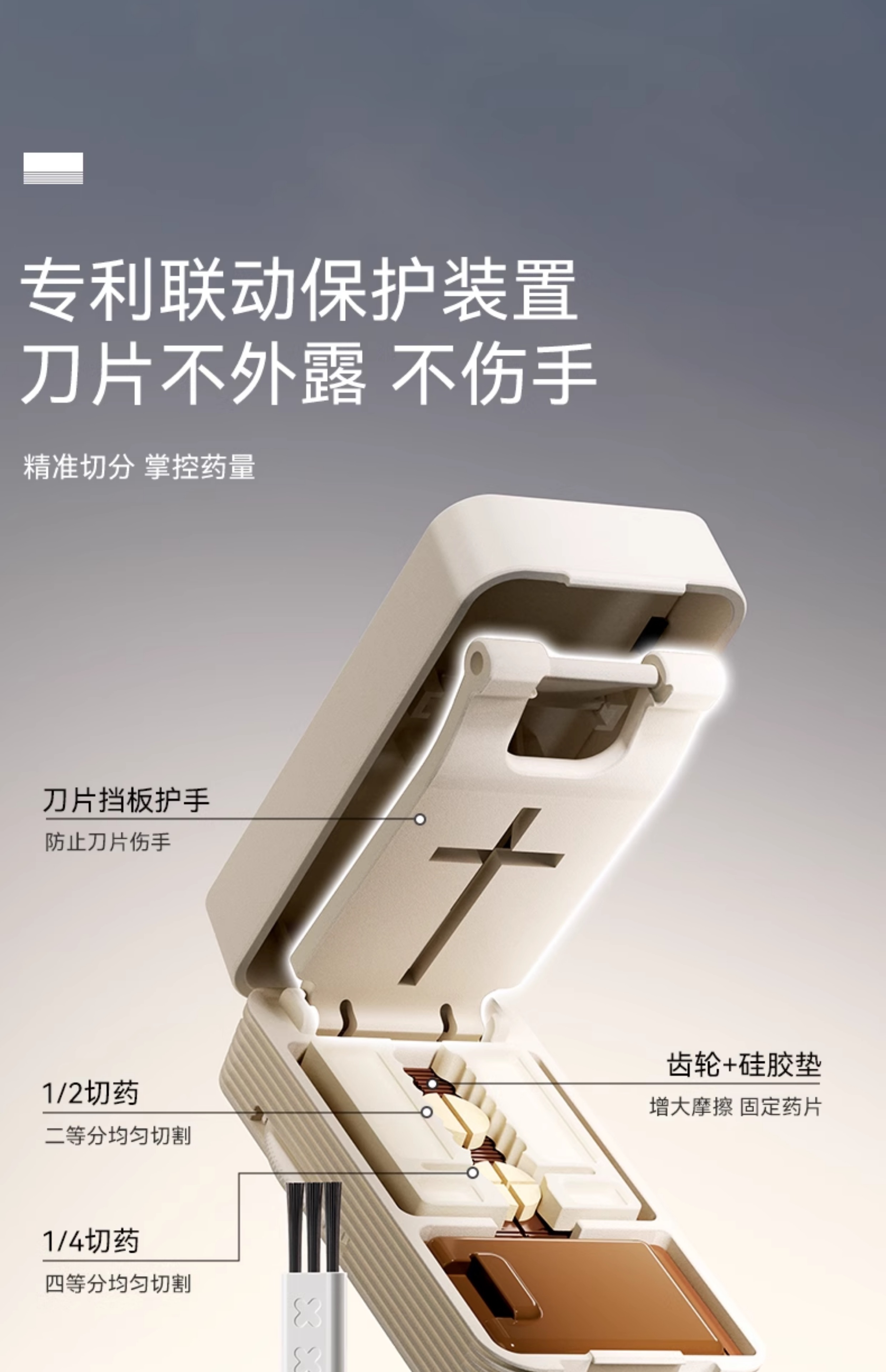 嘉智鹤多功能日本切药器一分二便携切割神器四分之一分药器药片分割药盒 雪白棕 升级款【1/2+1/4切药器】切药+储药
