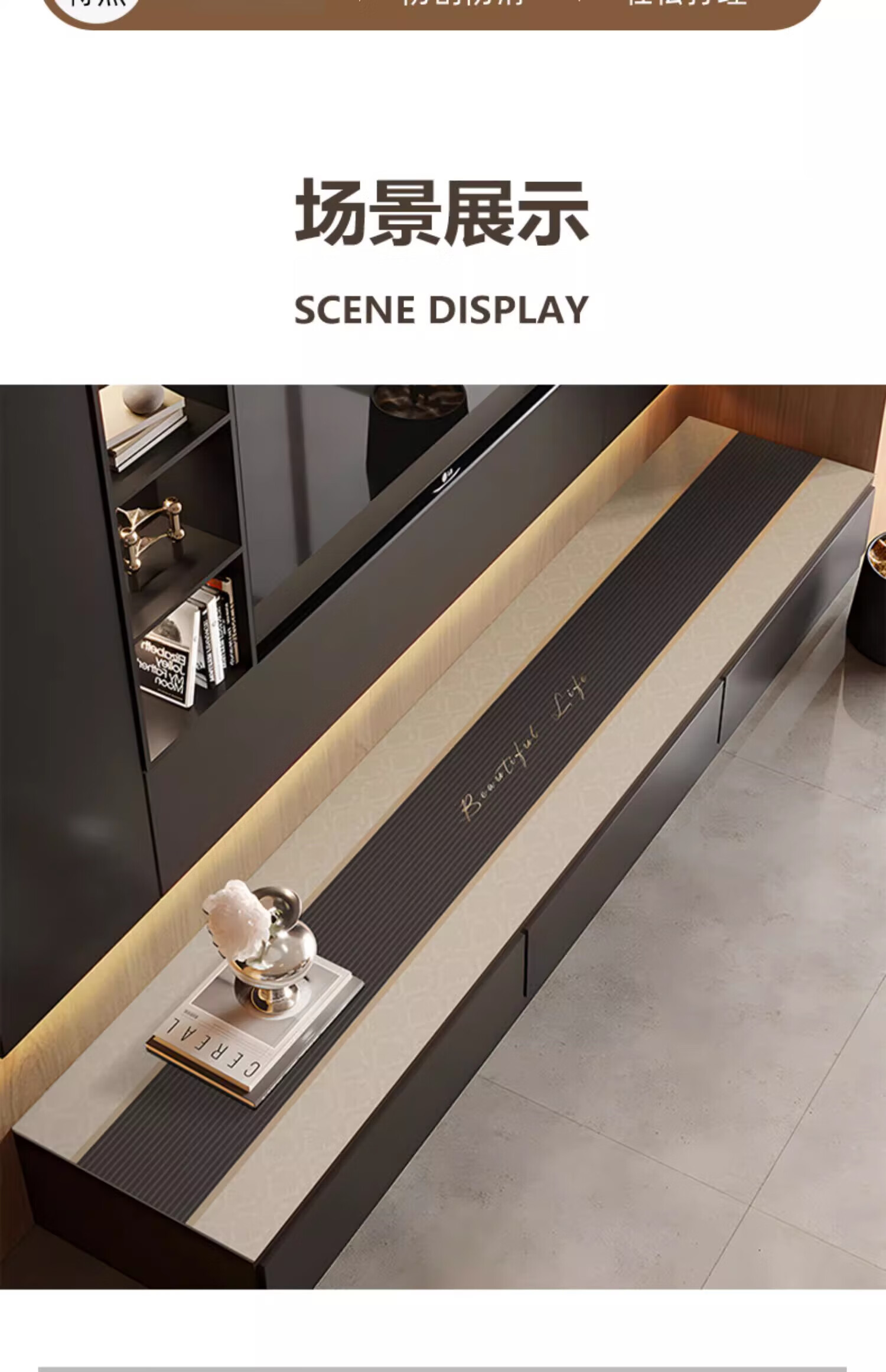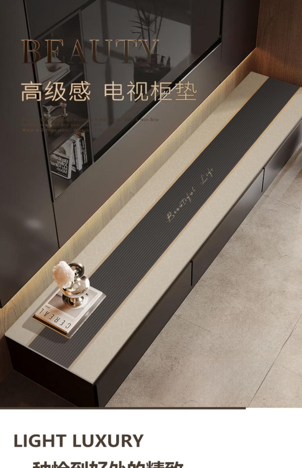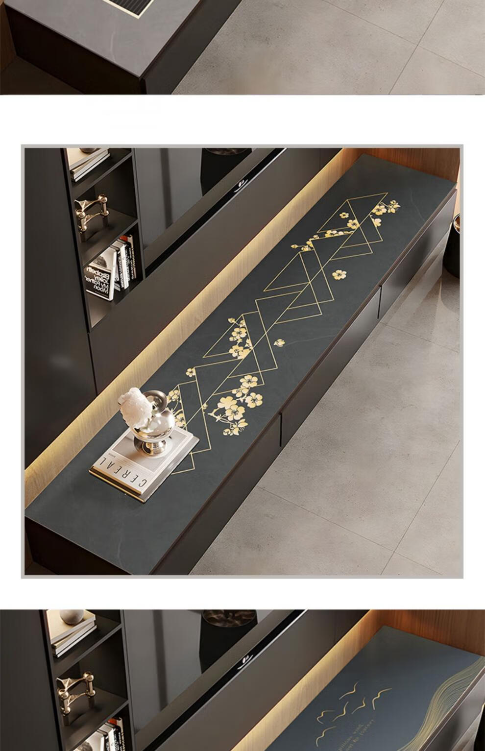 眷耐电视柜台面保护垫桌垫长条轻奢感防水免洗鞋柜餐边柜桌垫 灼灼其华 定制联系我们改价