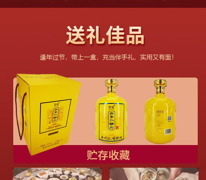 京旺北京二锅头【三斤装】42度清香型高度白酒送礼佳品 42度 1500mL 1坛 臻品鉴藏大坛礼盒