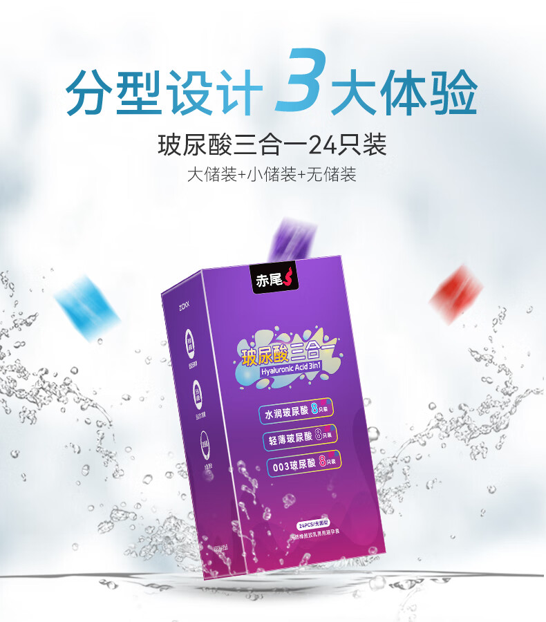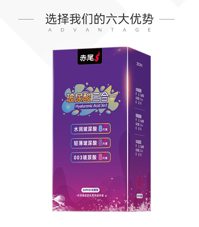 赤尾黑金避孕套至薄组合避孕套无储玻尿酸避孕套 玻尿酸三合一组合26只