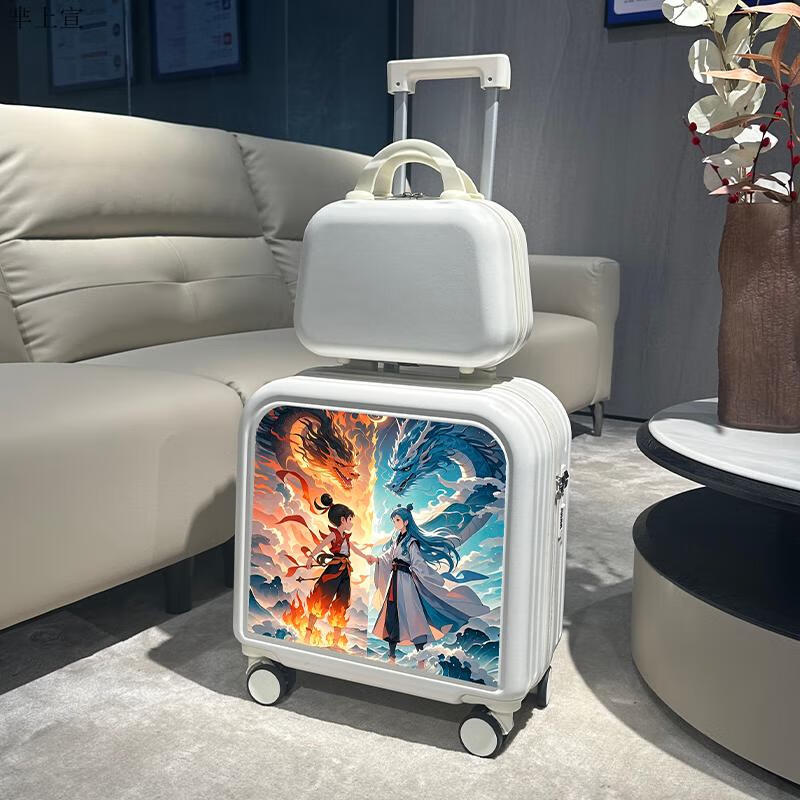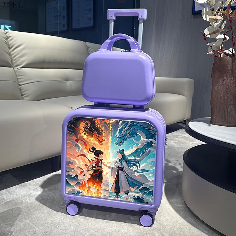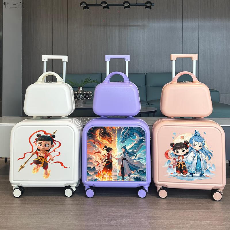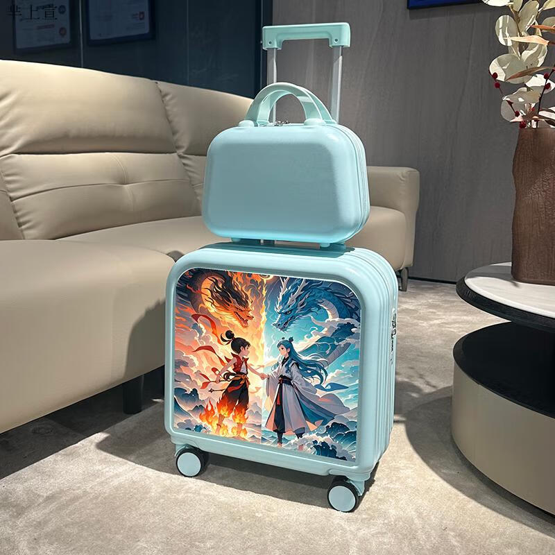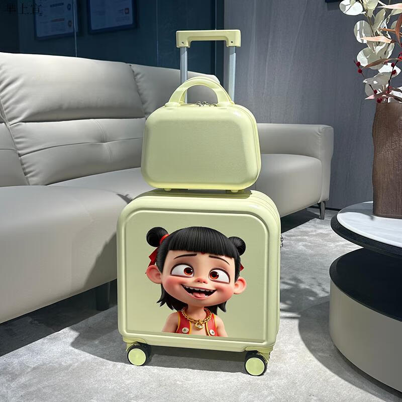 芈上宣儿童行李箱哪吒儿童拉杆箱男童卡通行李箱20英寸小学生登机旅行箱 草绿色双龙哪咤子母箱 20寸【升级第二代杯架款】