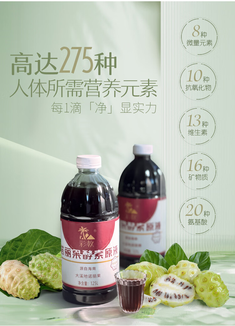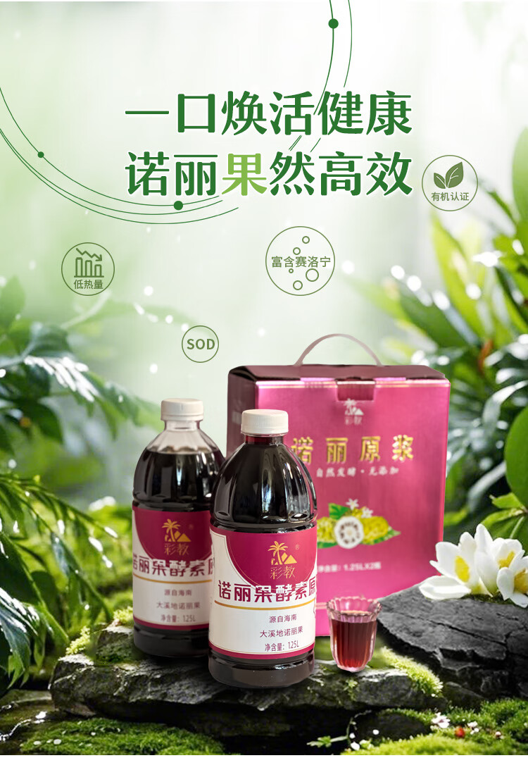 彩教诺丽果酵素原液 助眠排宿便便秘排毒原浆复合饮料益生菌礼盒装 一盒2瓶