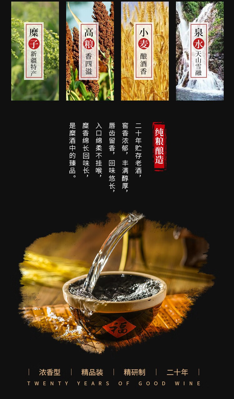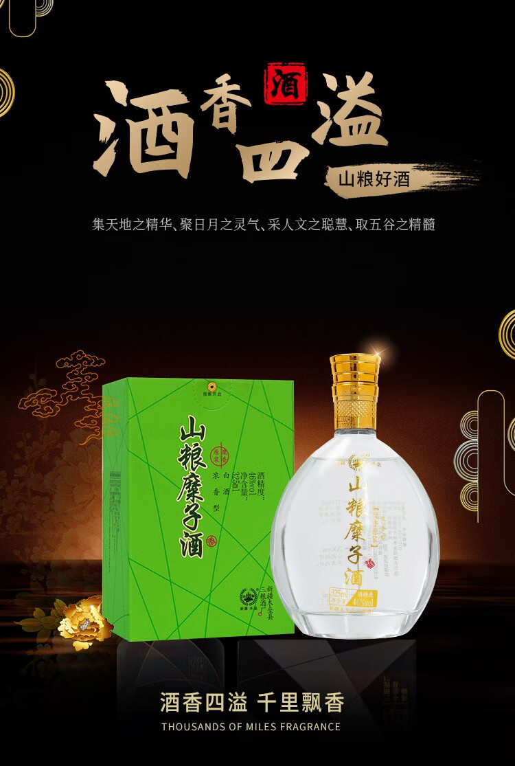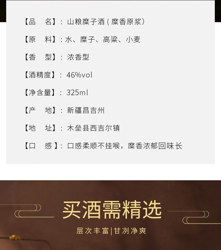 山粮【粮食酒】绿糜香46度原浆325ml*6瓶浓香天山雪水新疆旅游特产 46度 325mL 6瓶 一件6瓶