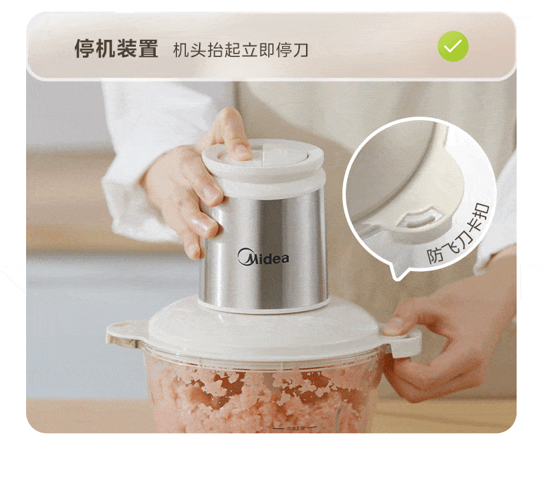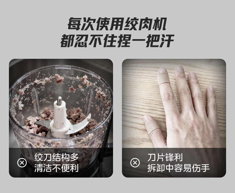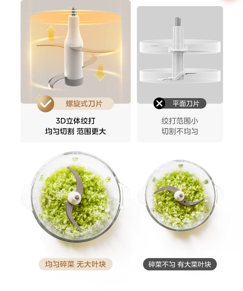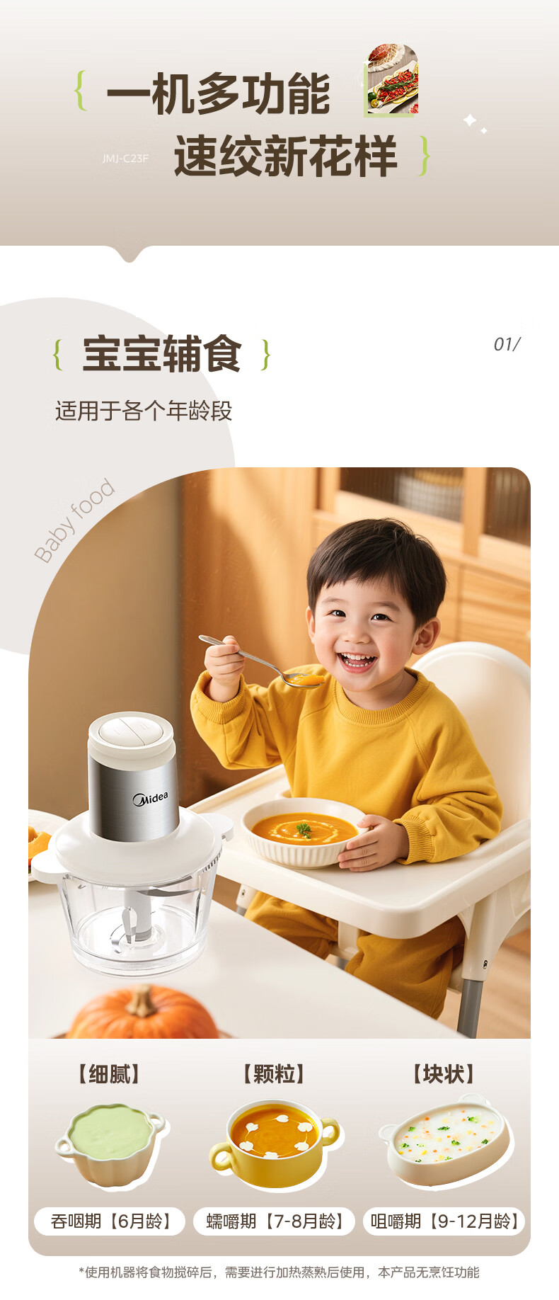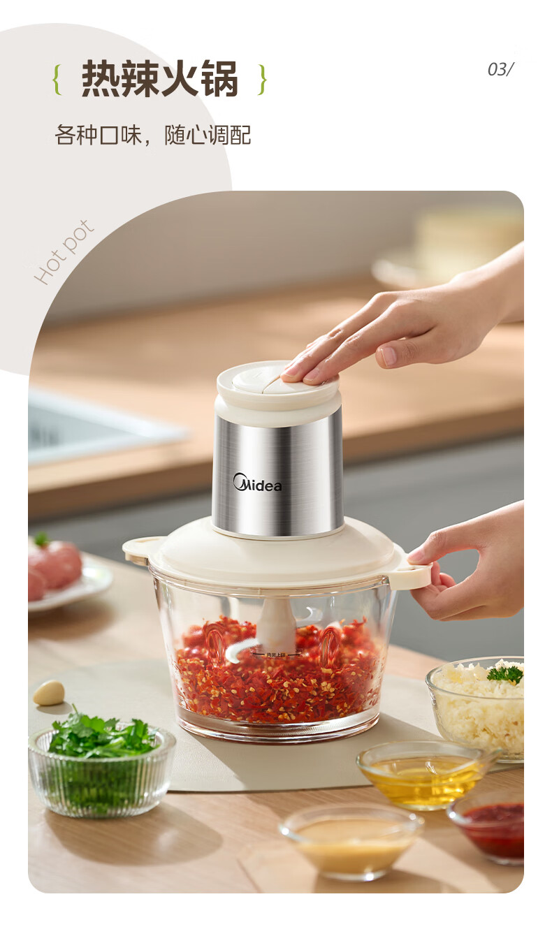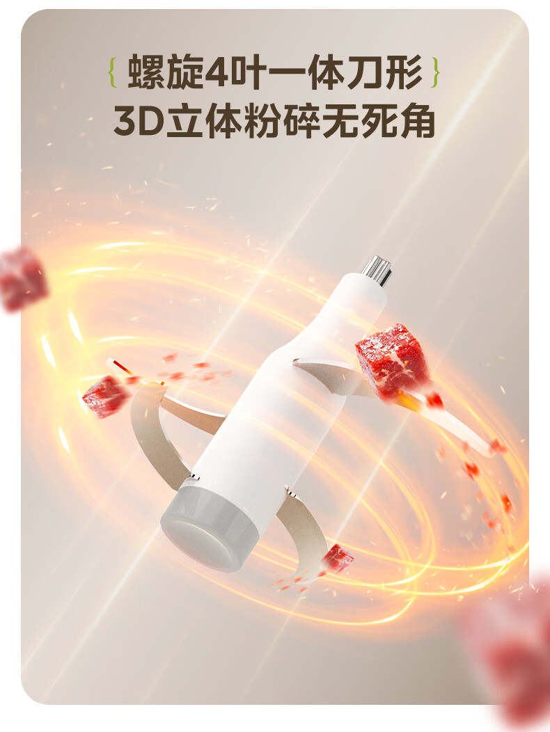 美的(Midea)绞肉机家用 多功能电动碎肉机 小型家庭搅馅机切肉机 料理机搅拌机搅打机 打蒜器婴儿辅食机 【单刀双档+无孔易洁】 2L JC23F