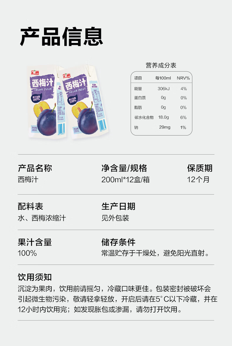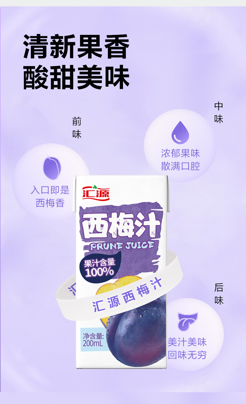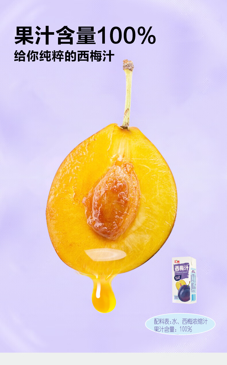 汇源100%浓缩西梅汁礼盒装果汁饮料200ml*12盒节日年货节送礼宴请