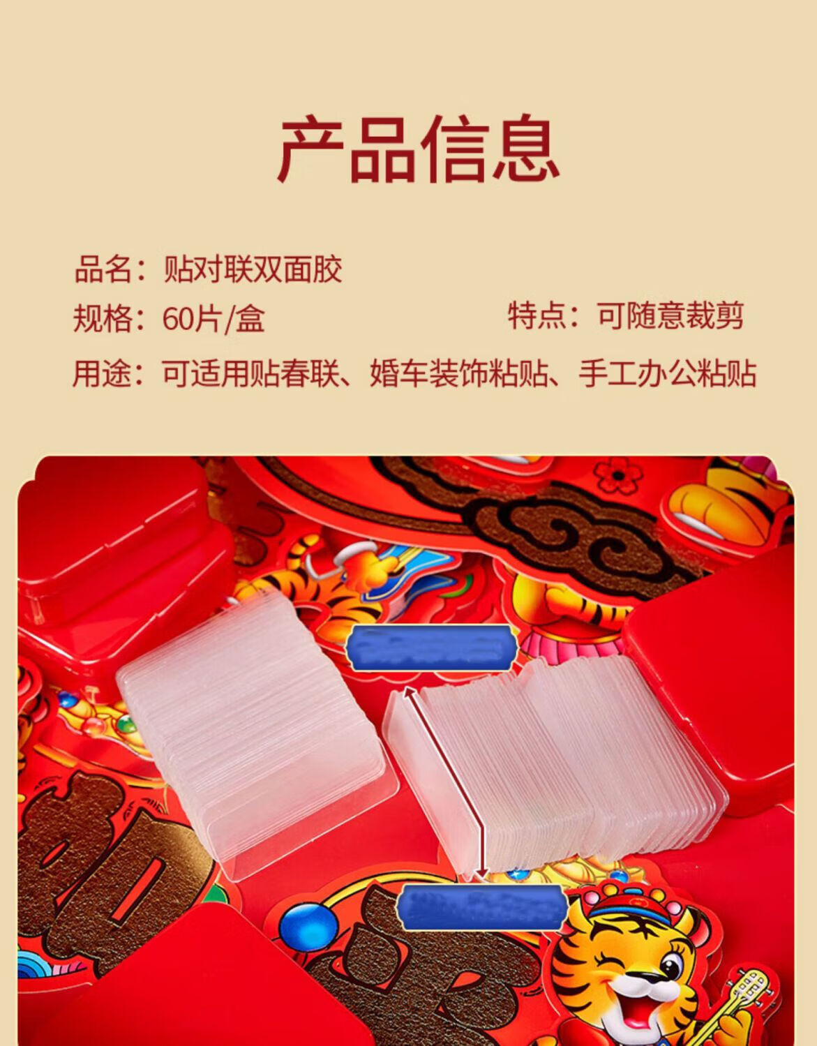 【不留胶】粘春联对联专用无痕无残留透明双面胶年画婚车婚房胶带 5盒装300片