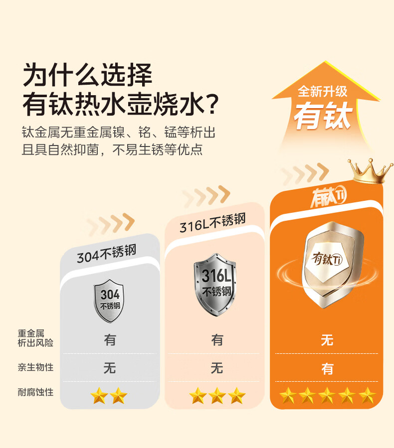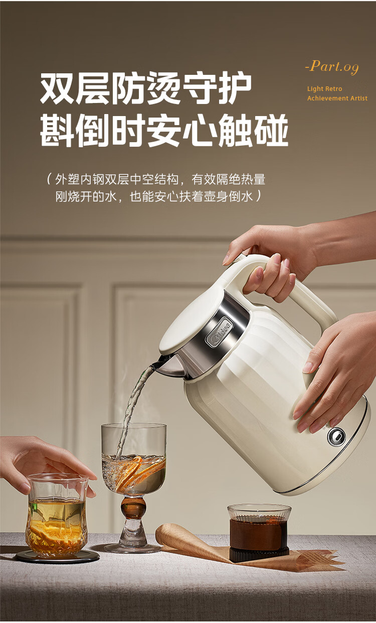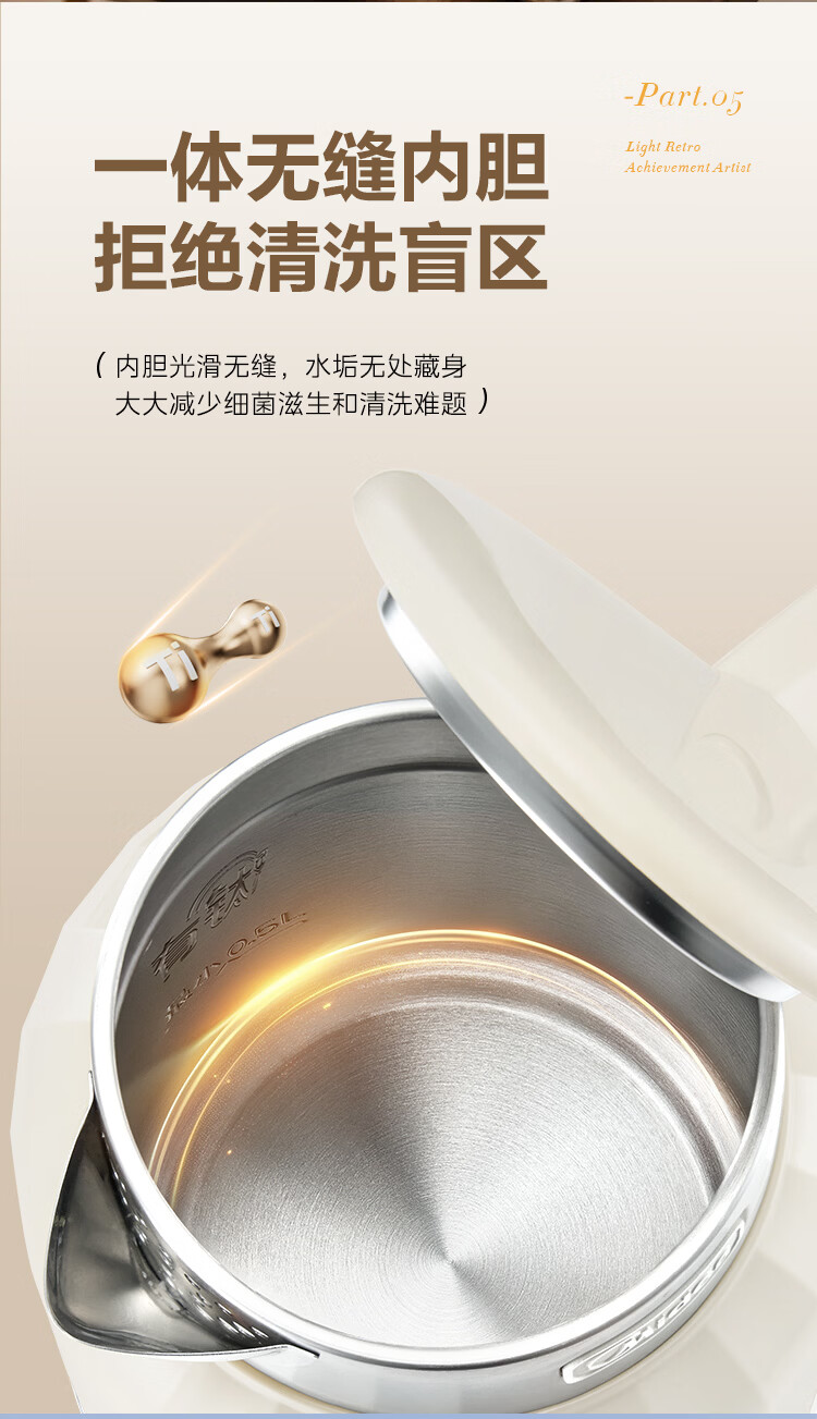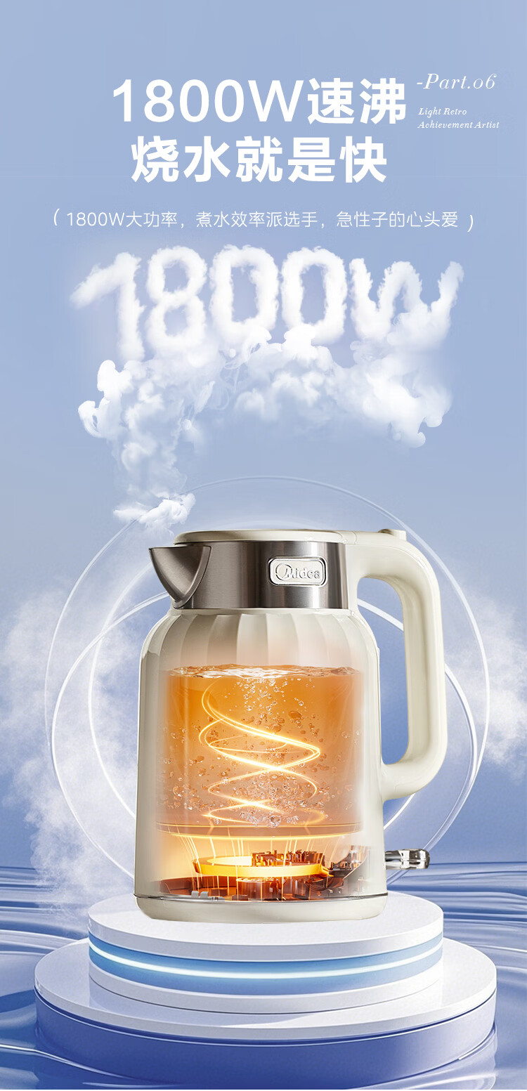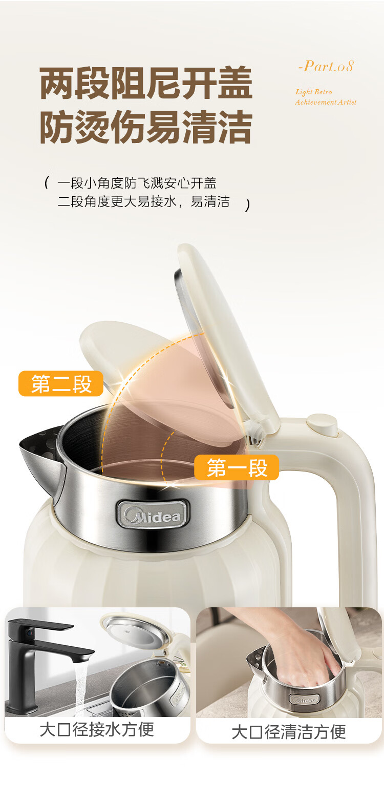 美的(Midea)电热水壶有钛材质艺术家恒温烧水壶自动断电保温一体2L大容量不锈钢无缝一体内胆MK-SH58-QT