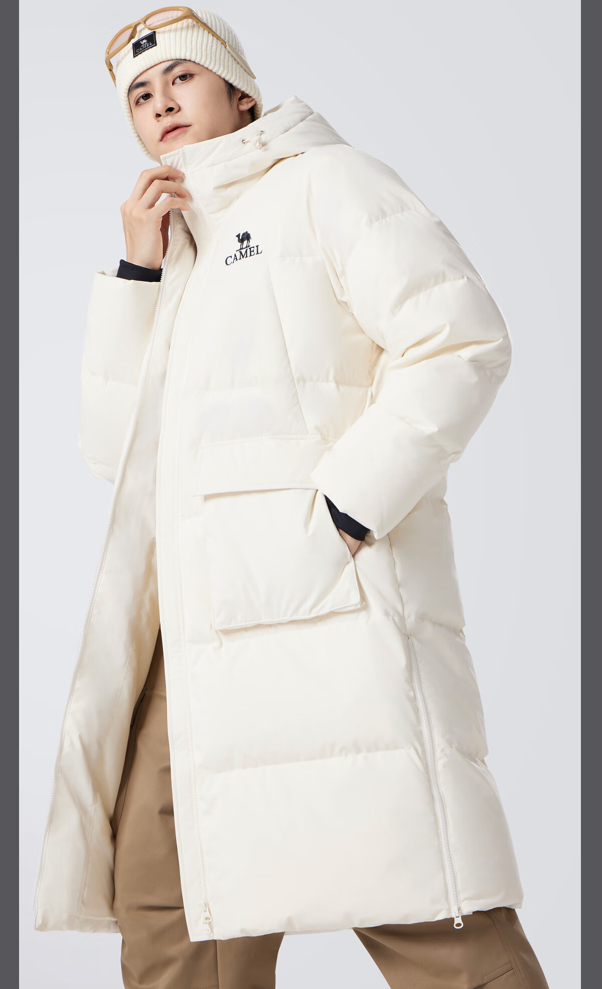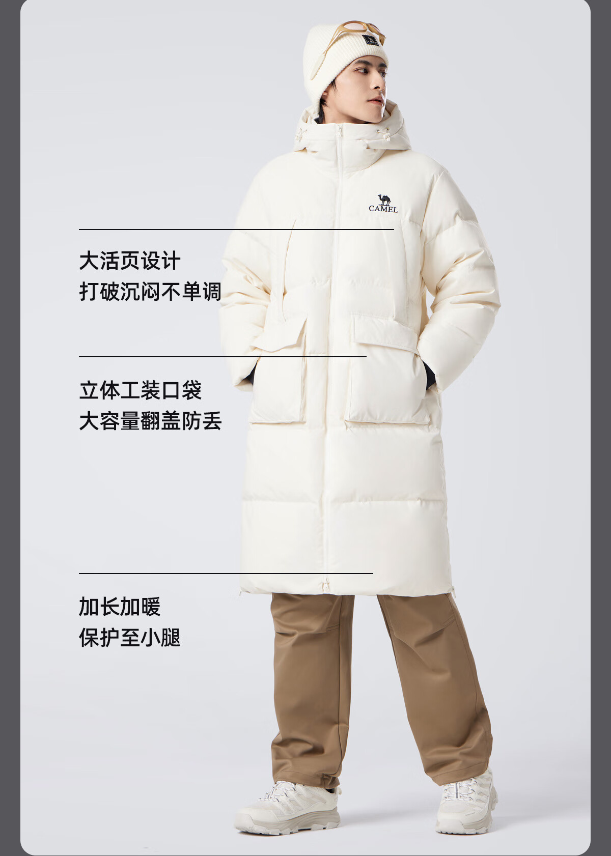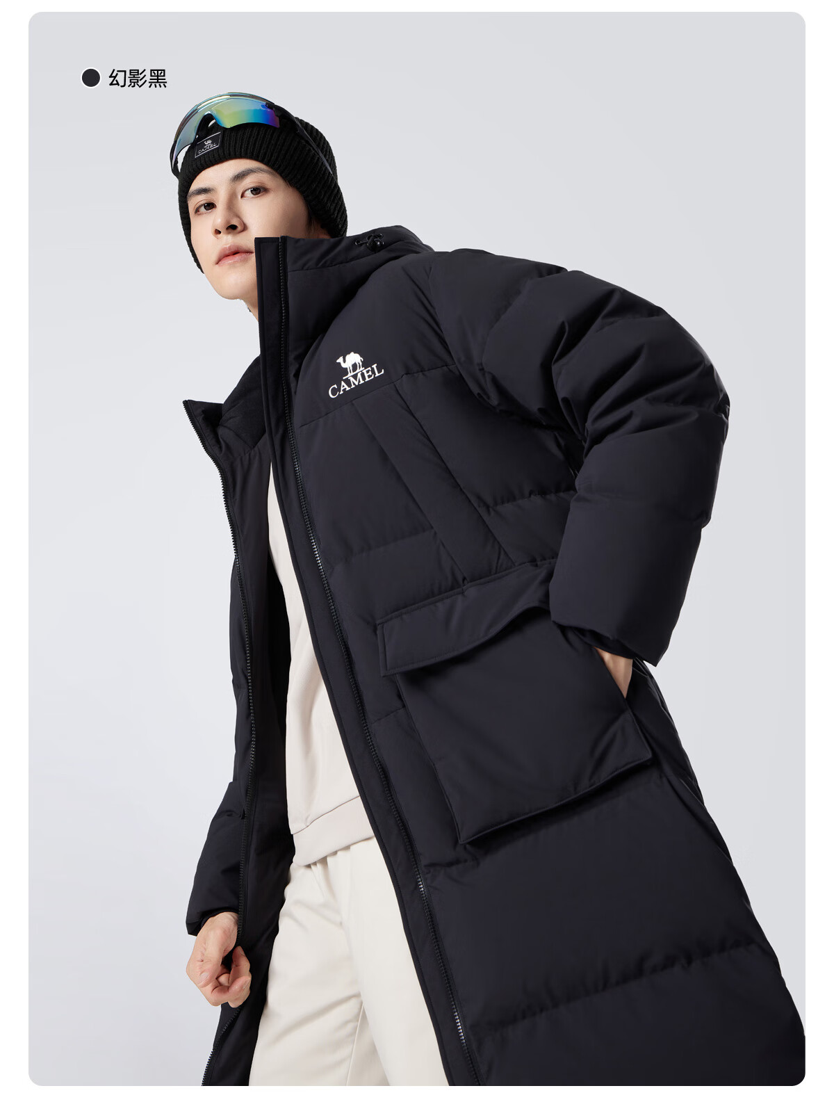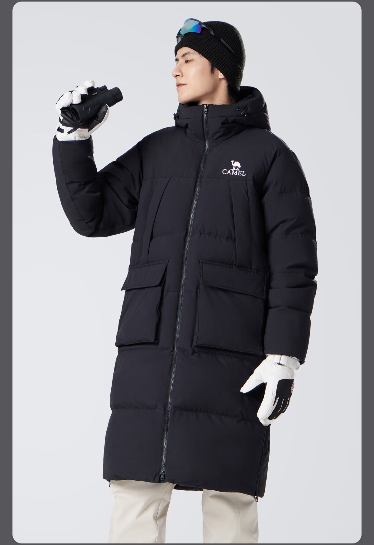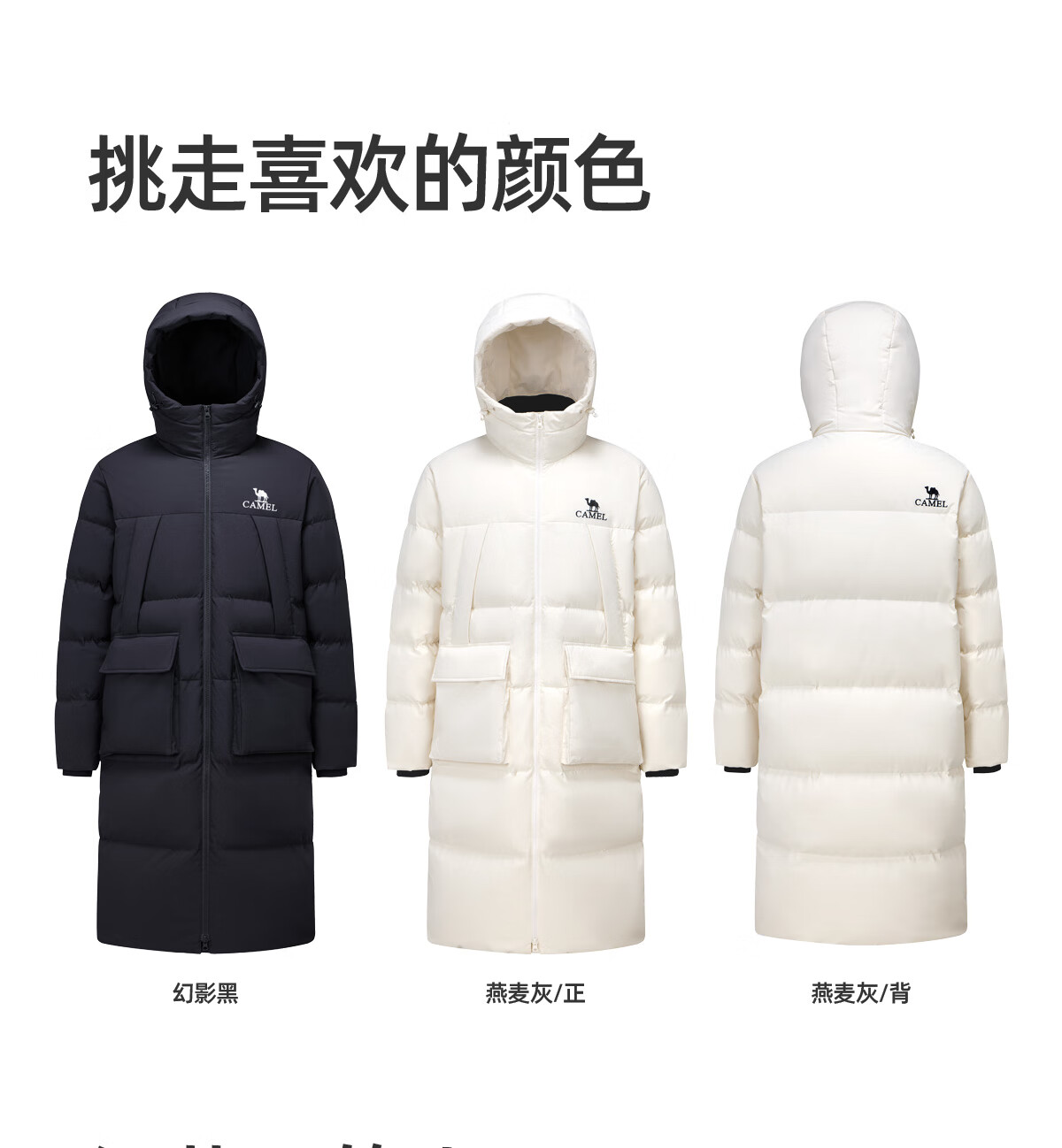 骆驼(CAMEL)中长款羽绒服三防连帽加厚保暖防寒外套M34CR07669