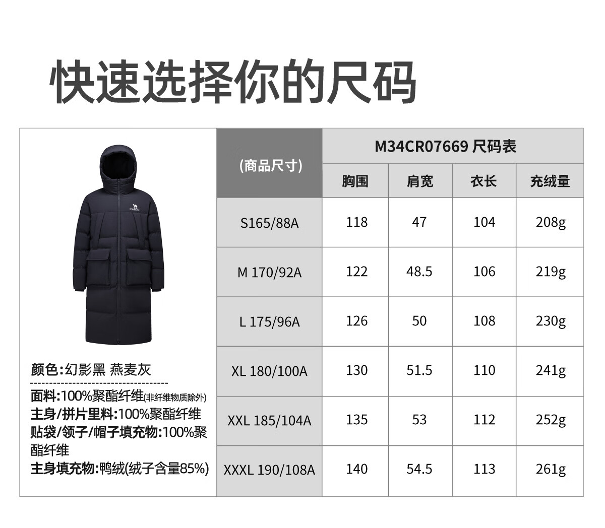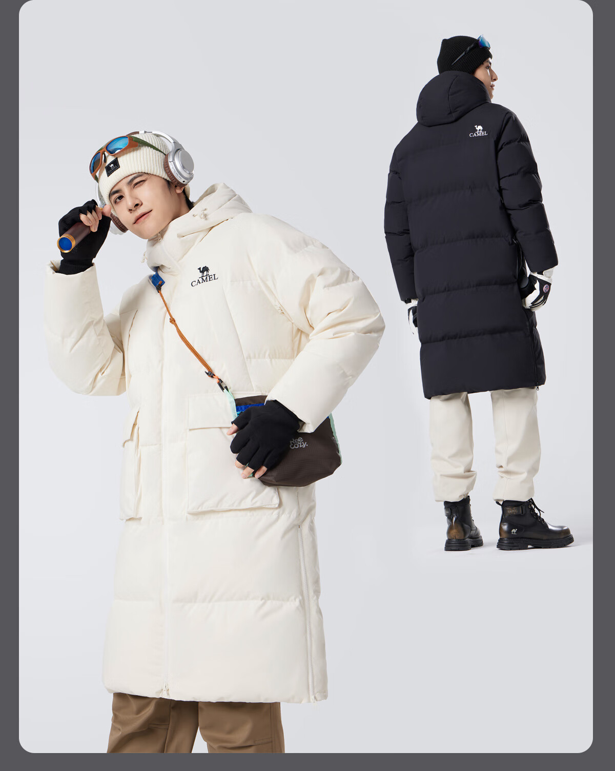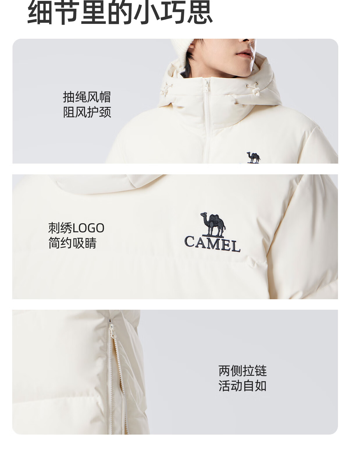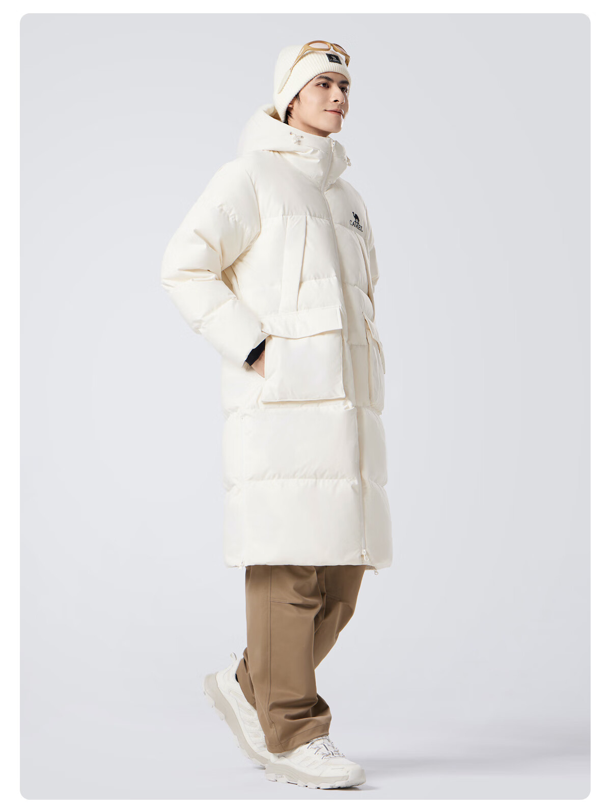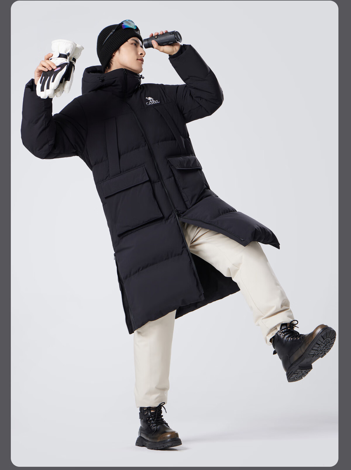 骆驼(CAMEL)中长款羽绒服三防连帽加厚保暖防寒外套M34CR07669