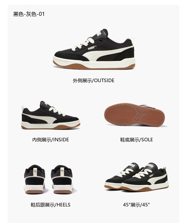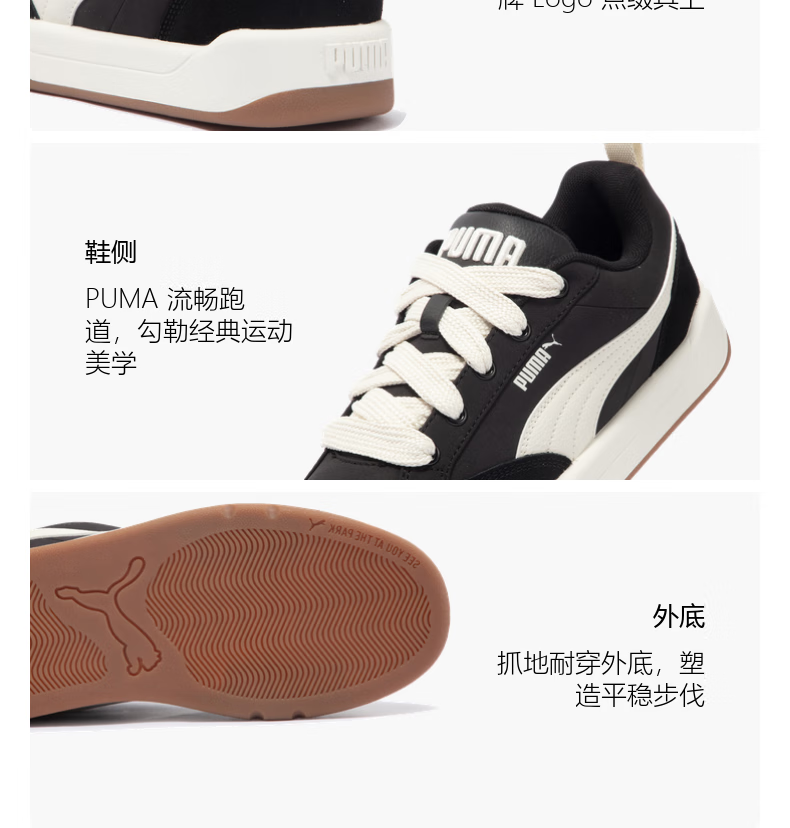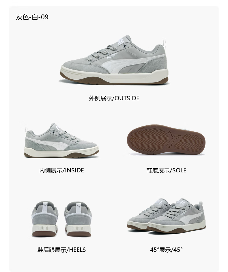 彪马(PUMA)面包鞋|复古休闲滑板鞋男女新款冬运动鞋 PARK397495 灰色-白-09 42
