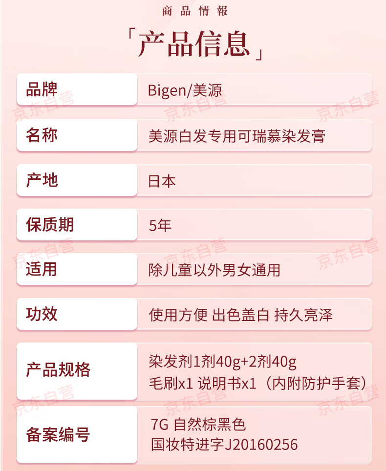 Bigen美源进口可瑞慕染发膏自然棕黑色7G植萃盖白发染发剂固色轻松染