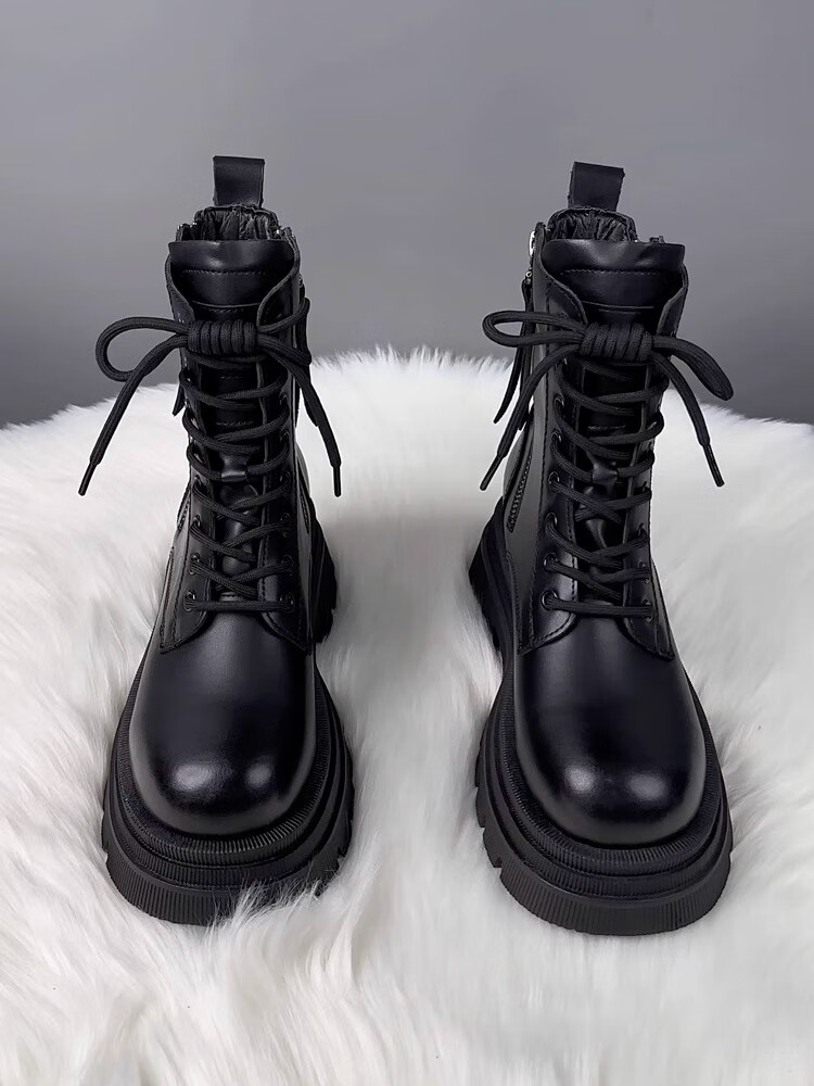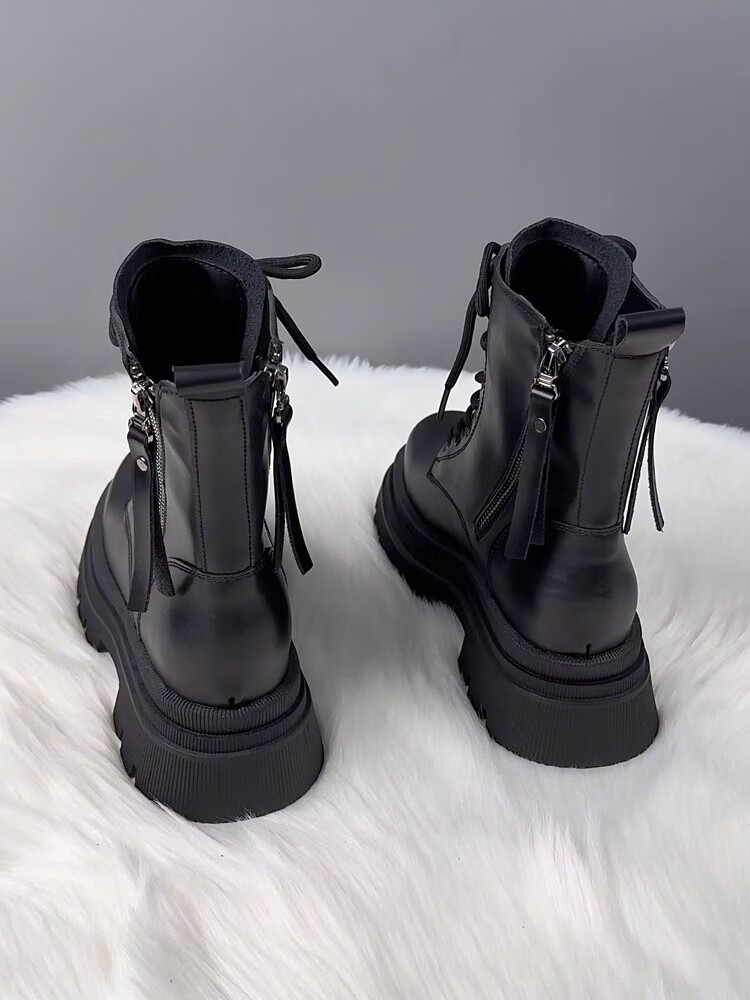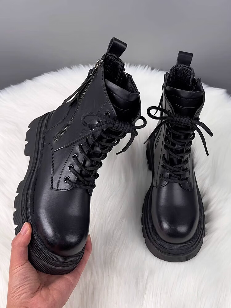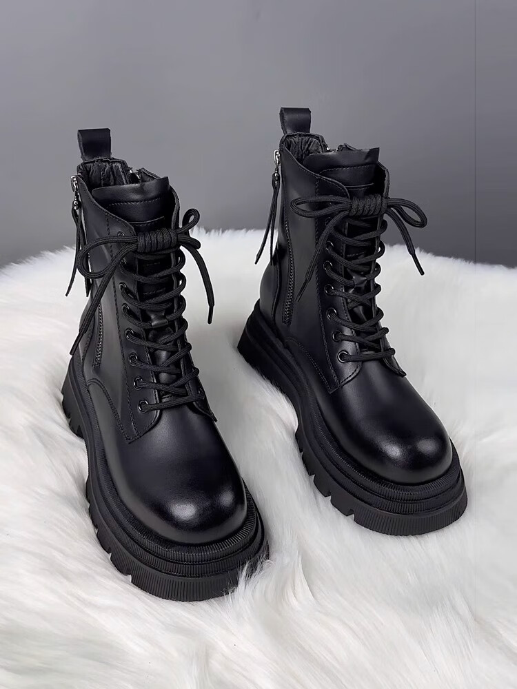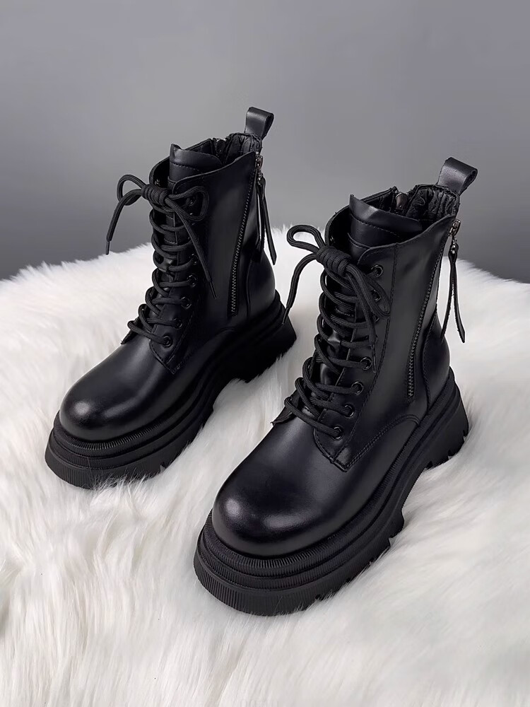 稻草人(MEXICAN)真皮厚底马丁靴女2026新款秋冬英伦风网红爆款短靴女小个子单靴子 黑色*单里【升级款】 35