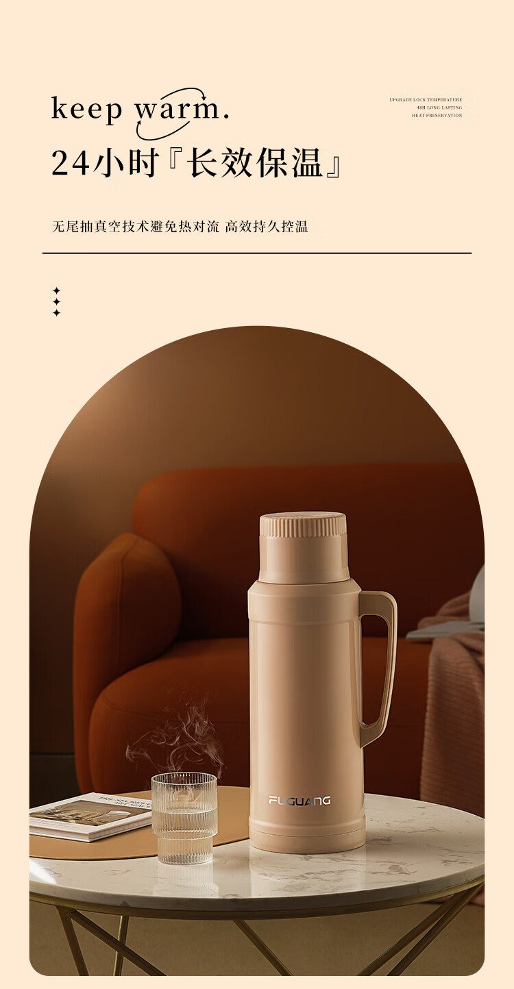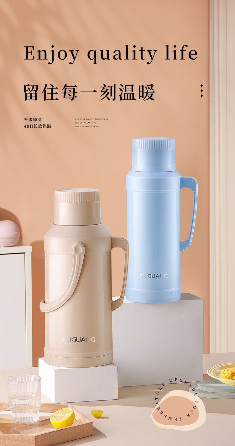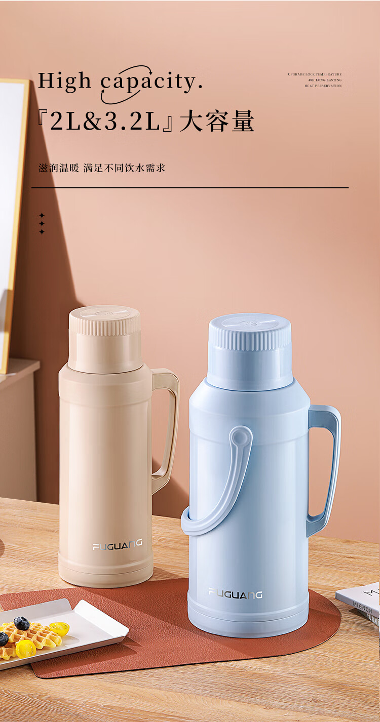 FGA富光保温壶玻璃内胆暖水壶大容量热开水瓶家用宿舍办公室茶瓶2L