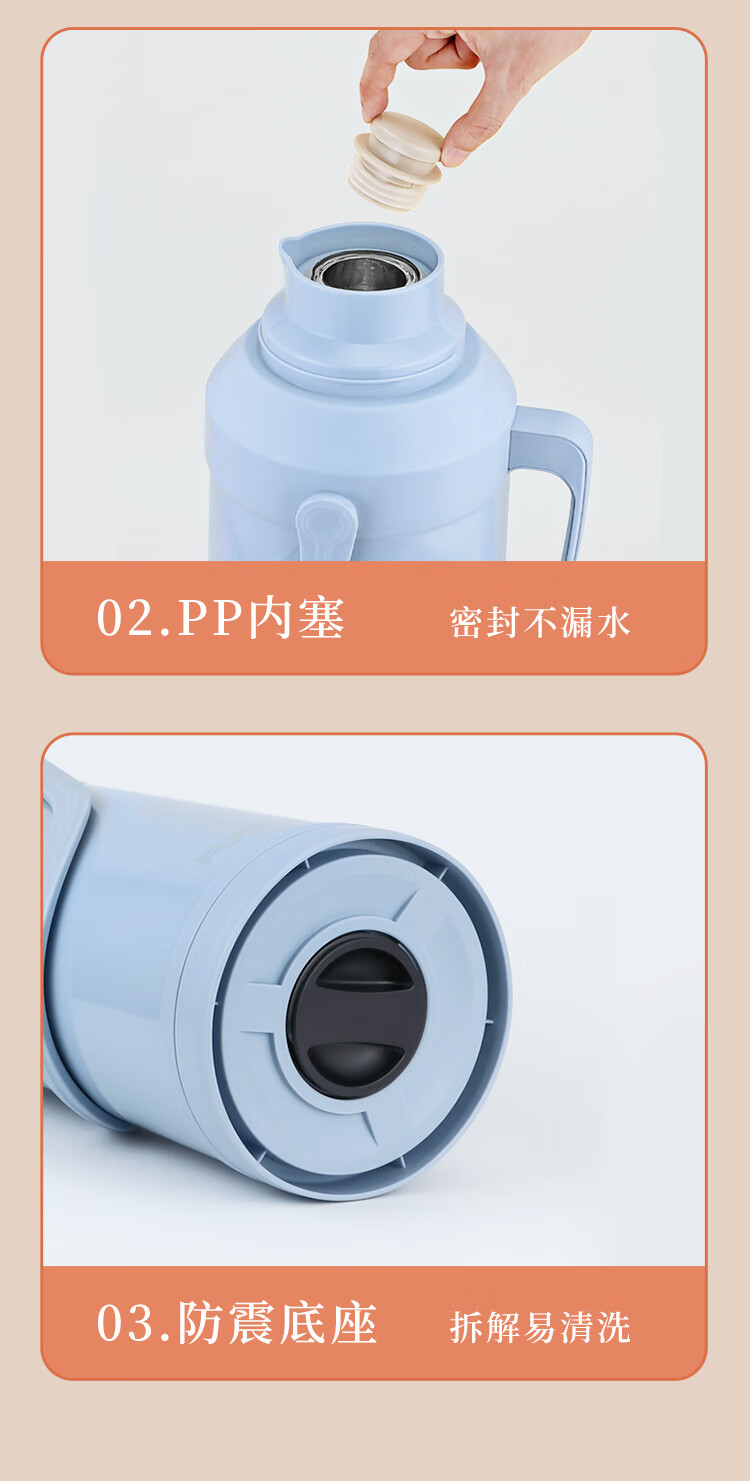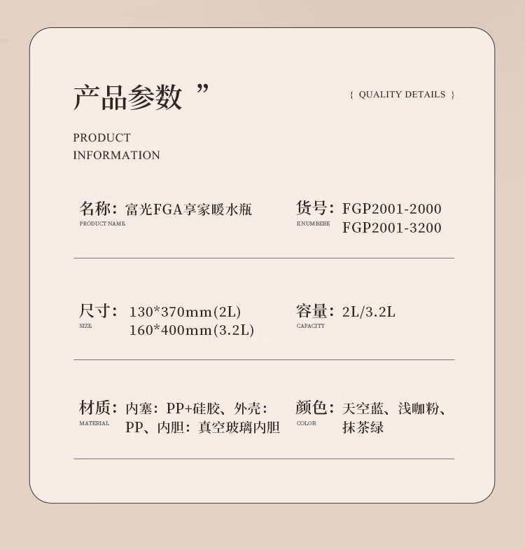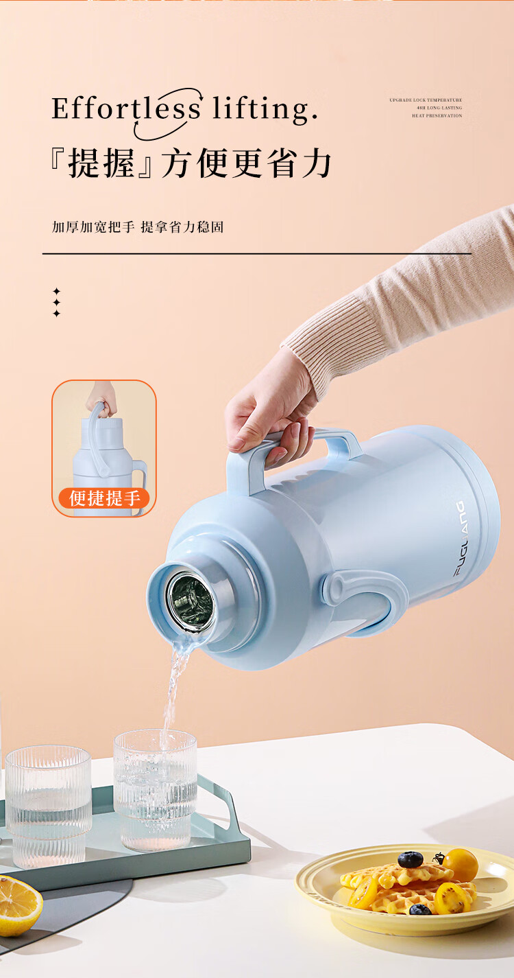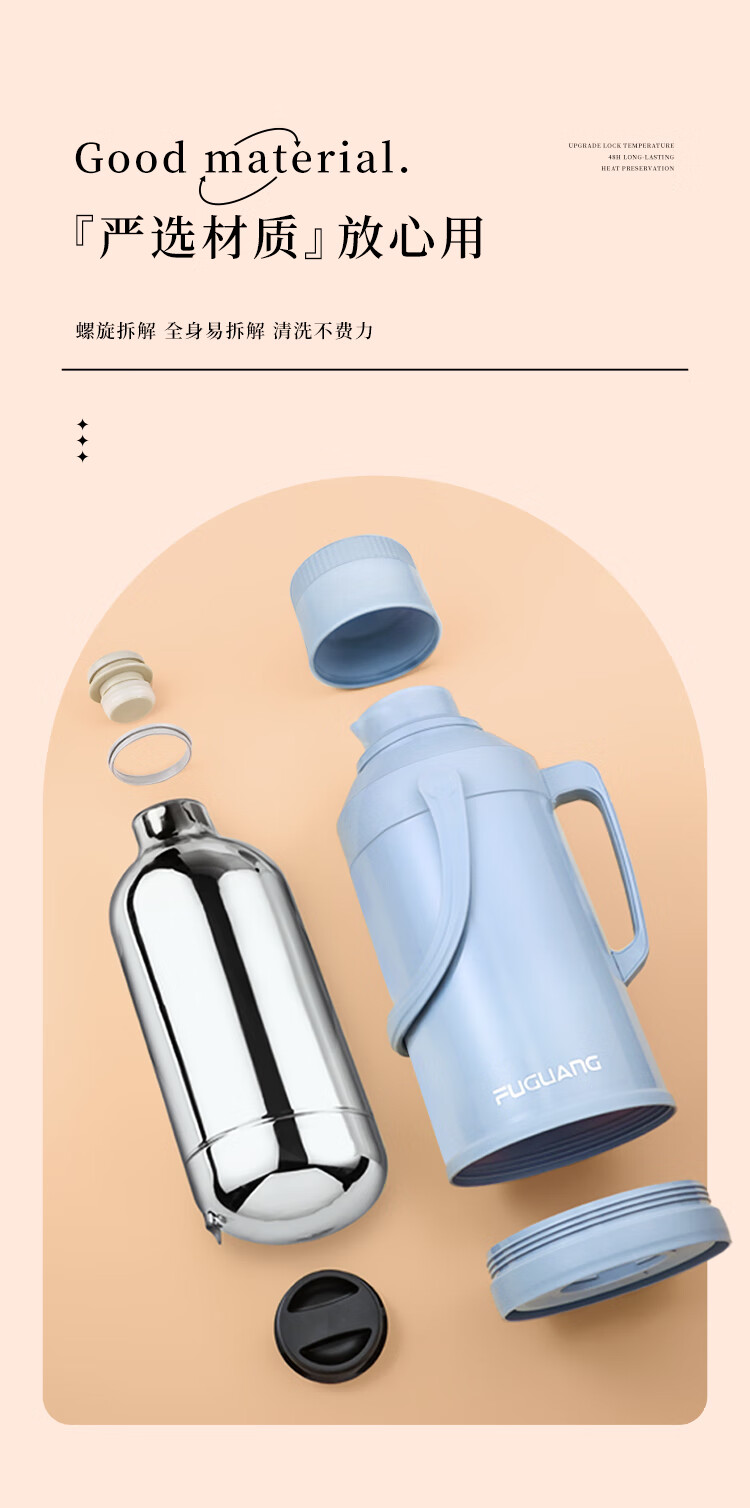 FGA富光保温壶玻璃内胆暖水壶大容量热开水瓶家用宿舍办公室茶瓶2L