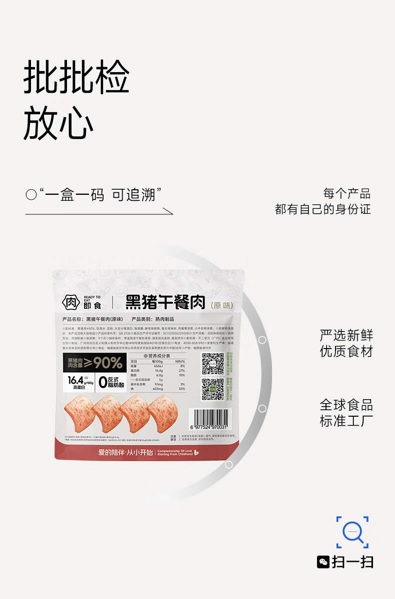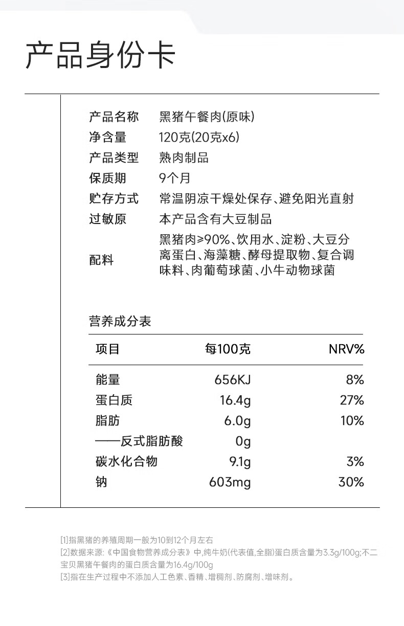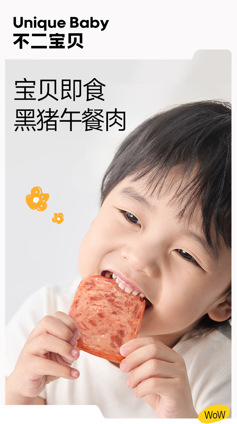 不二宝贝儿童黑猪午餐肉120g单独包片装无添加蔗糖搭婴儿幼儿宝宝零食 【1袋 | 100%黑猪肉】黑猪午餐肉原味120g